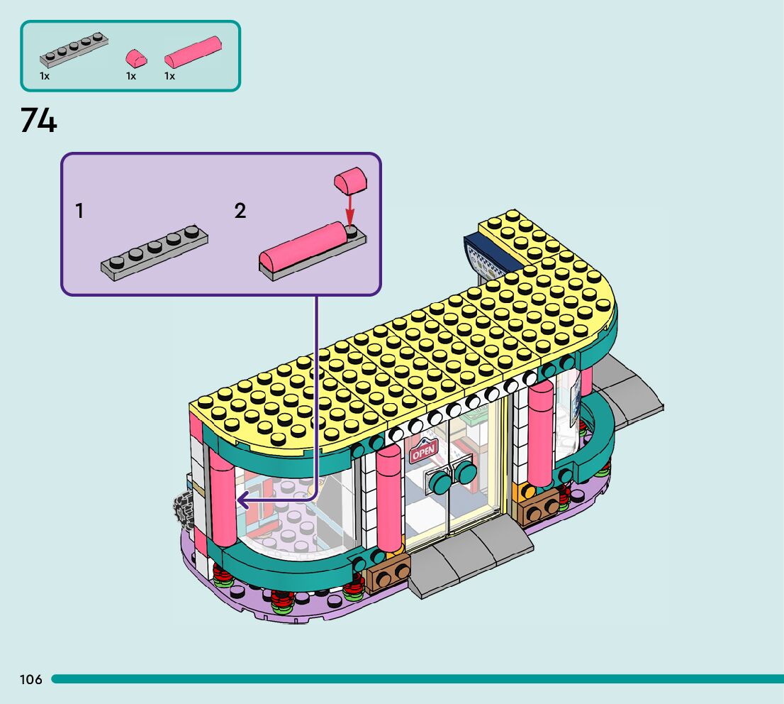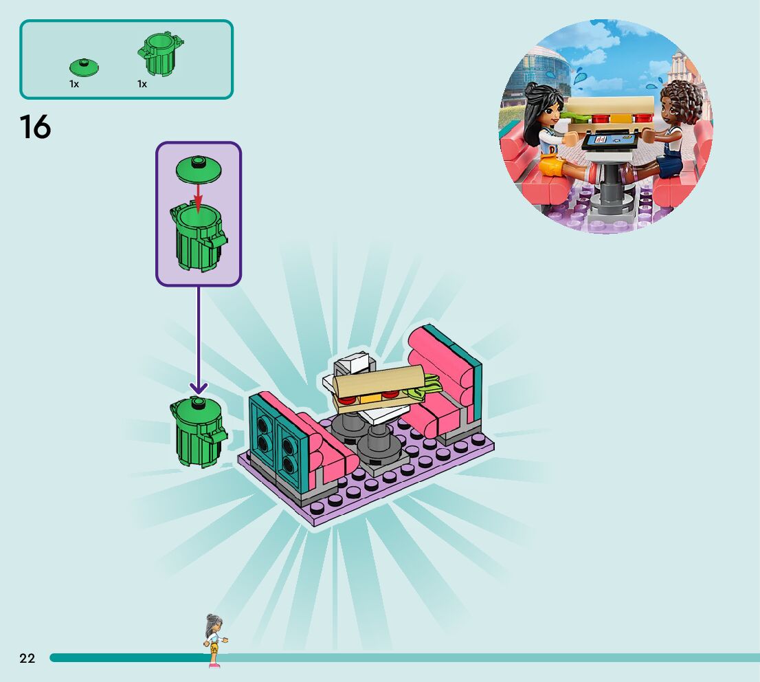 On this page you can find the original construction manual for the LEGO 41728 set. With the assembly manual you can easily learn how to build the 41728 Heartlake Downtown Diner step by step. The set was released in 2023.