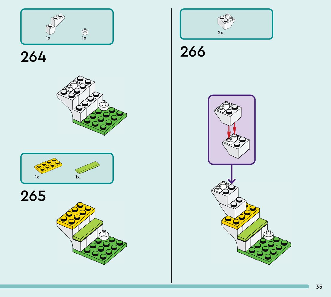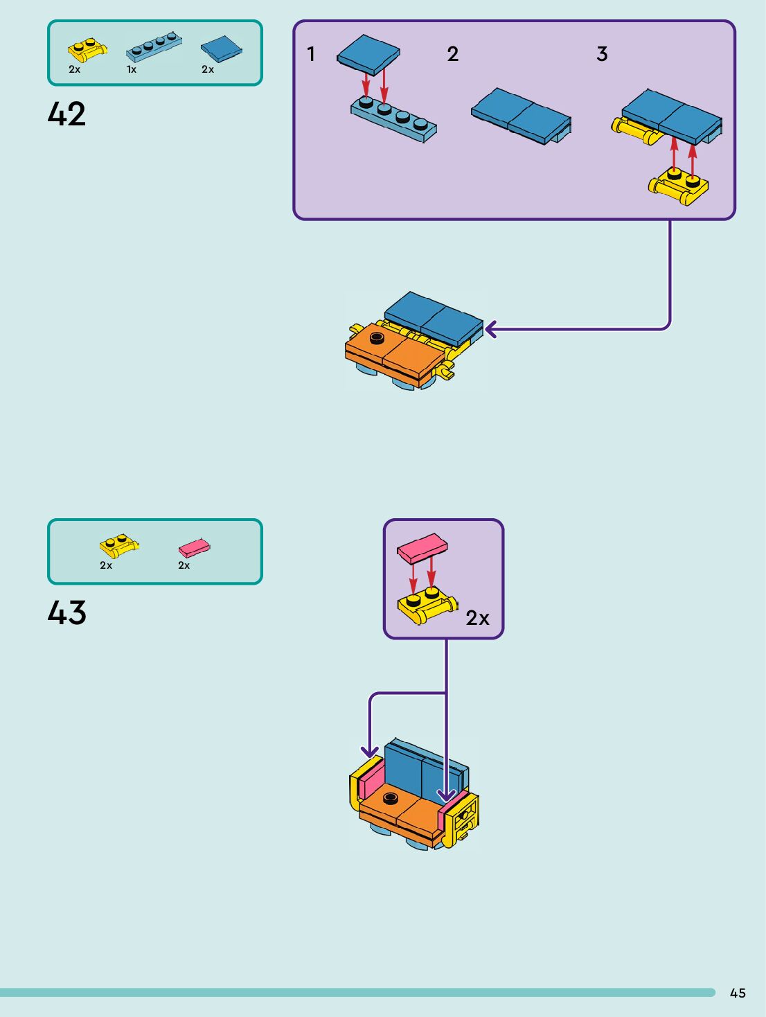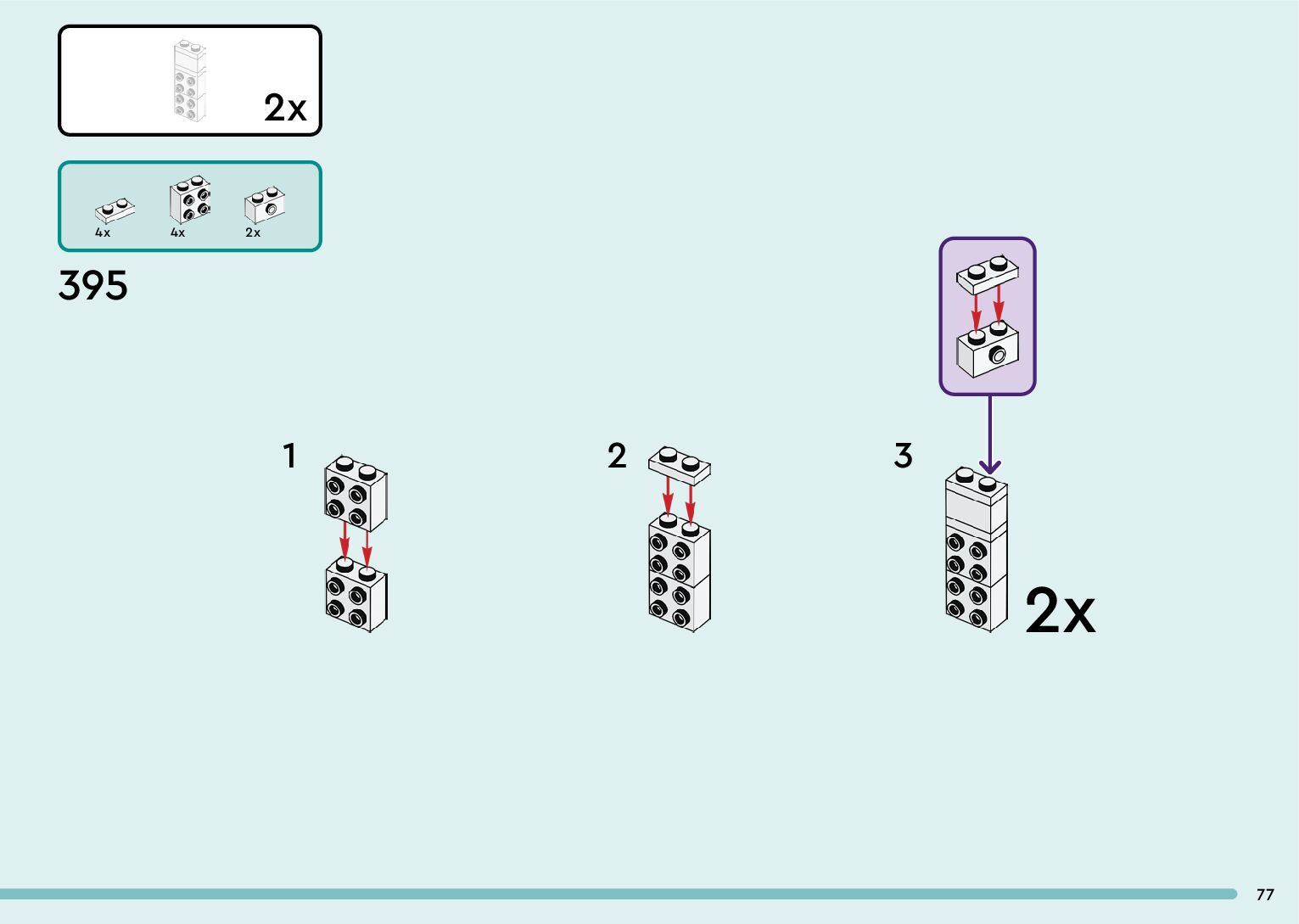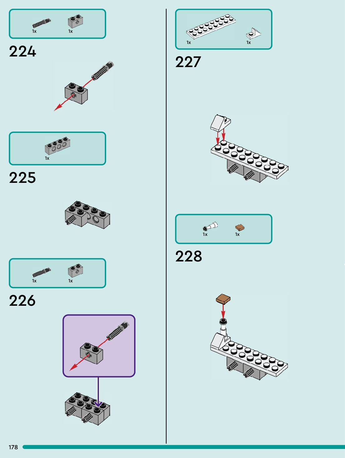 The assembly guide is prepared in a very understandable way for children and adult LEGO enthusiasts. A total of 420 picture galleries are shown, explaining the step-by-step construction stages for 3 different structures.