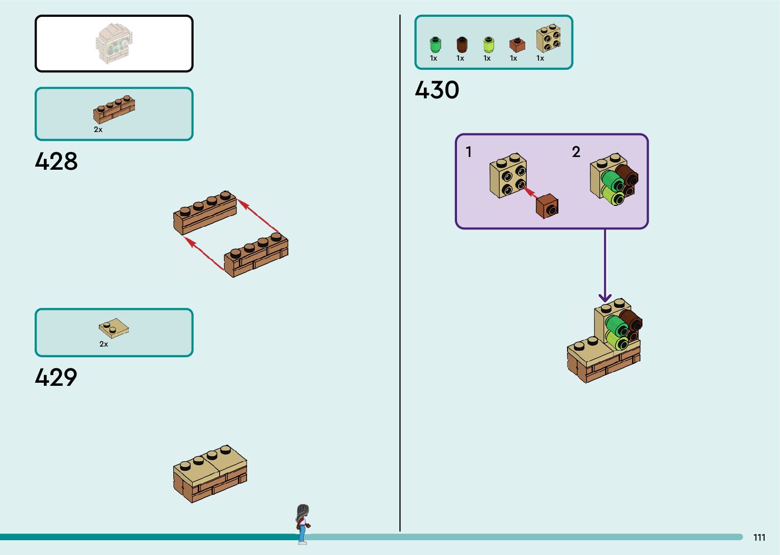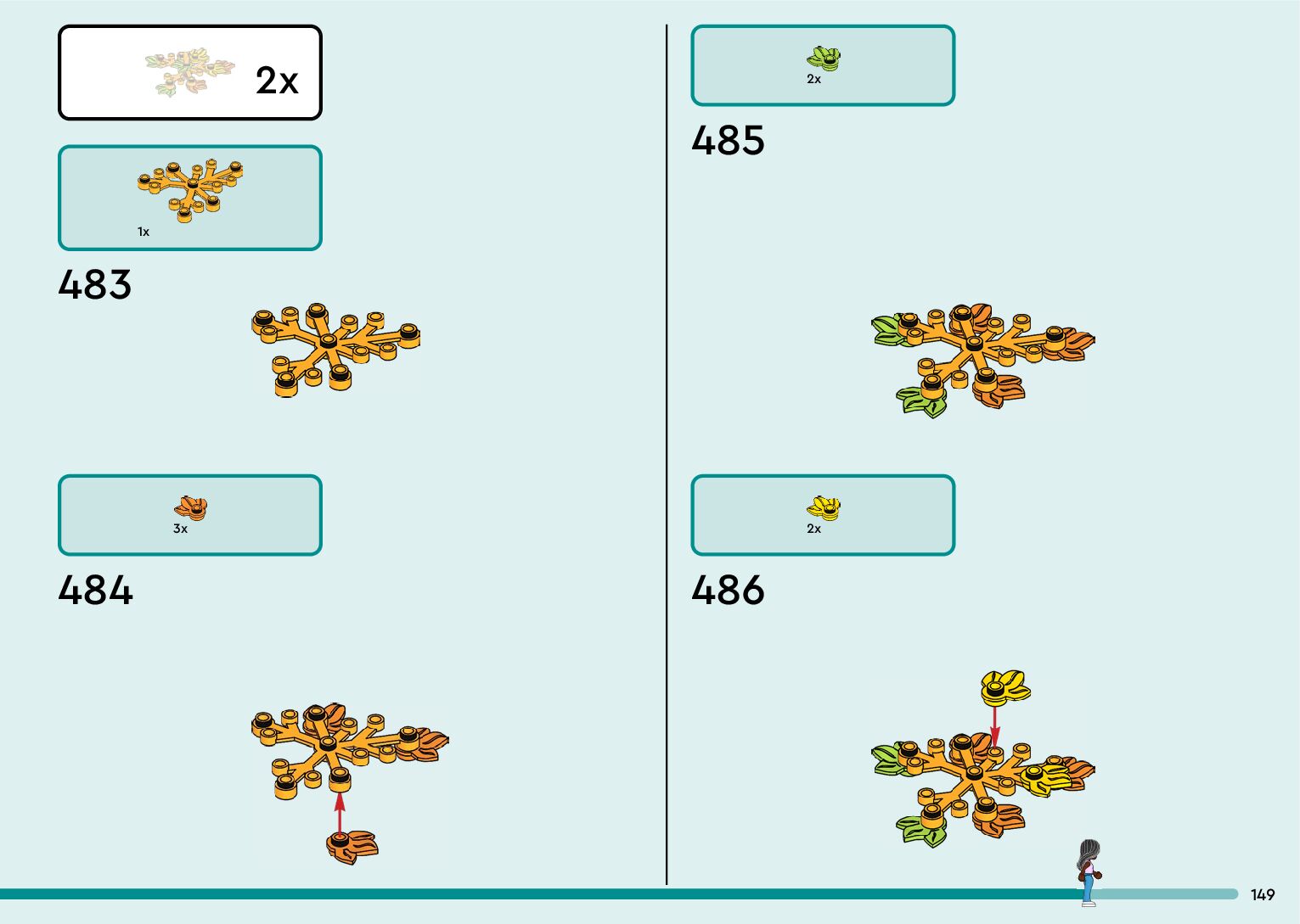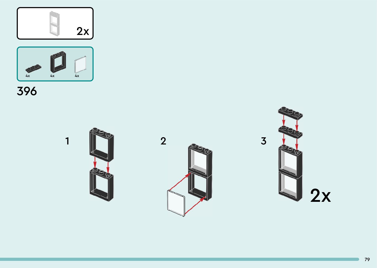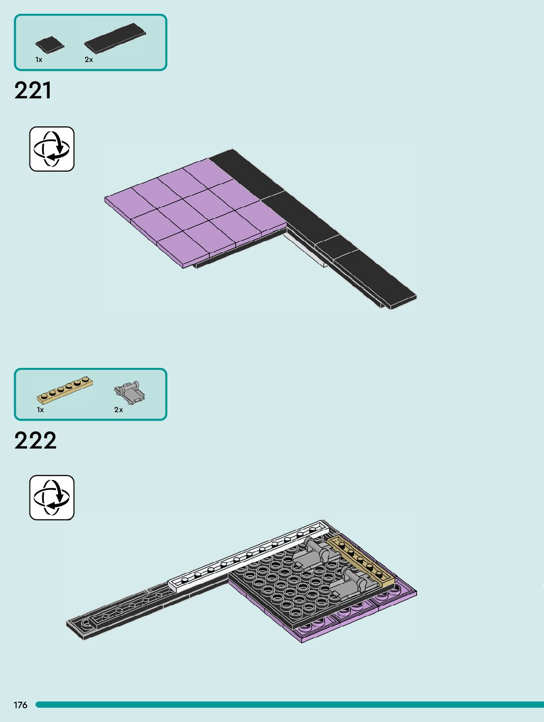 The assembly guide is prepared in a very understandable way for children and adult LEGO enthusiasts. A total of 420 picture galleries are shown, explaining the step-by-step construction stages for 3 different structures.