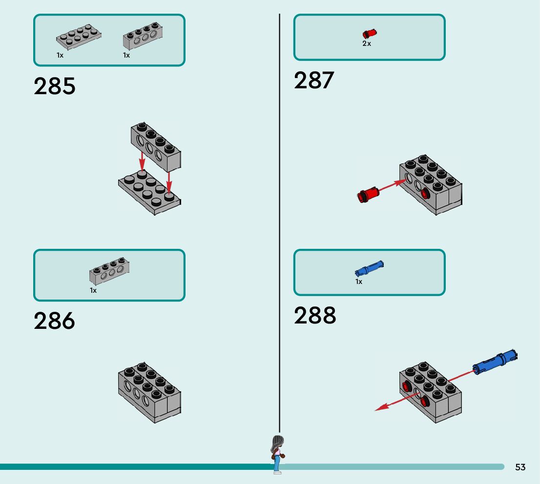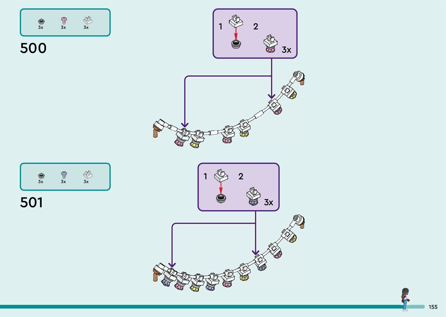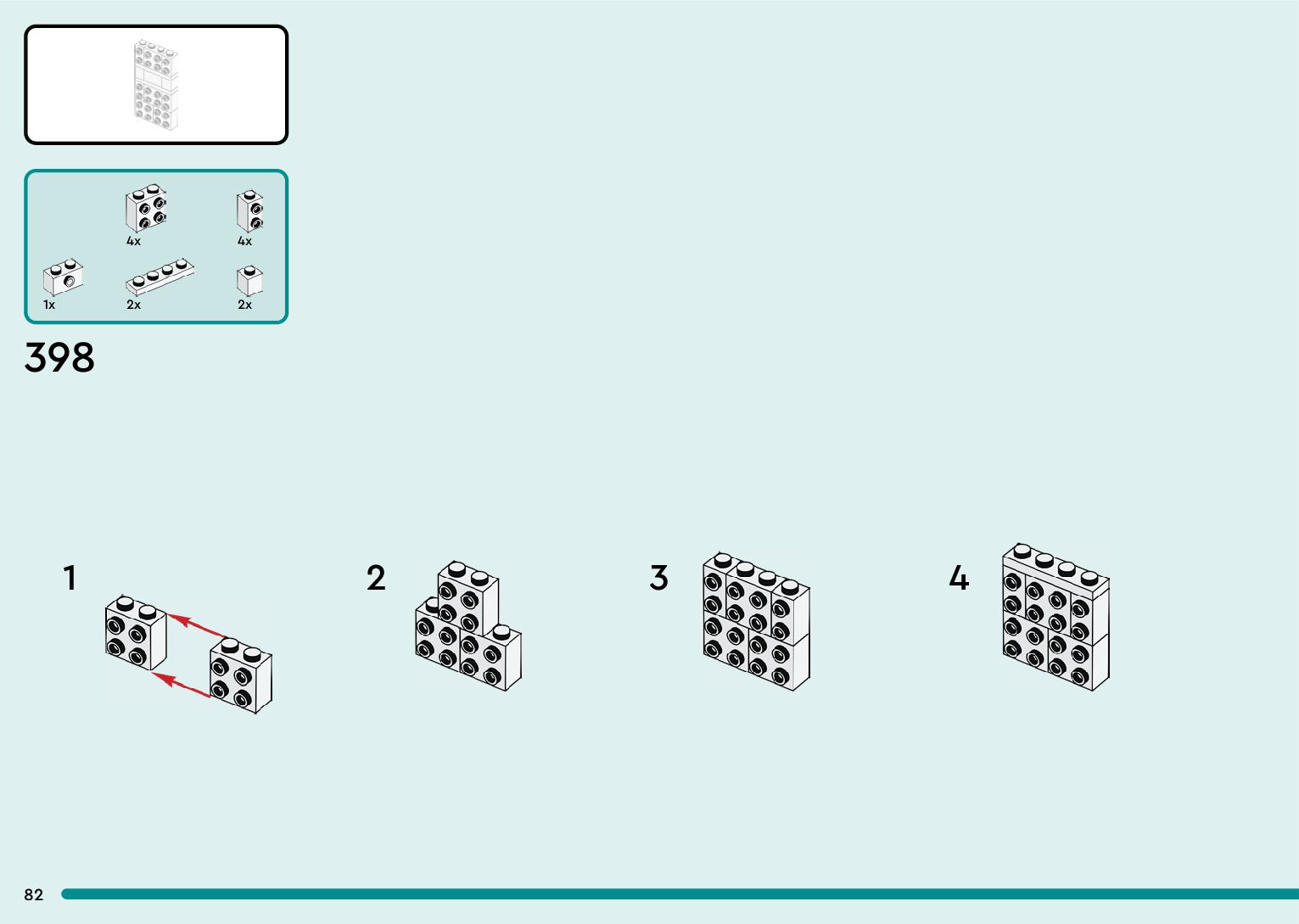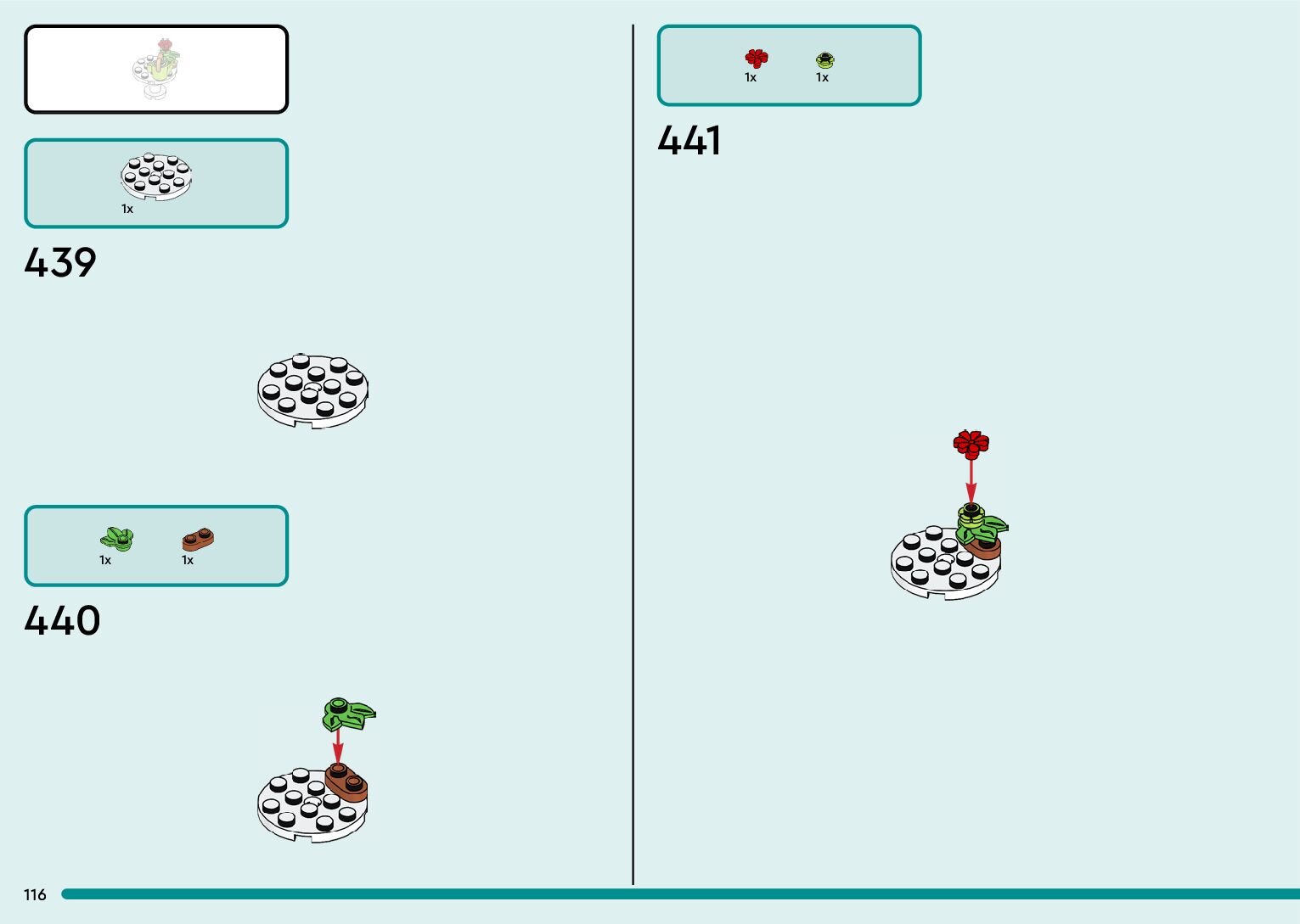 The assembly guide is prepared in a very understandable way for children and adult LEGO enthusiasts. A total of 420 picture galleries are shown, explaining the step-by-step construction stages for 3 different structures.