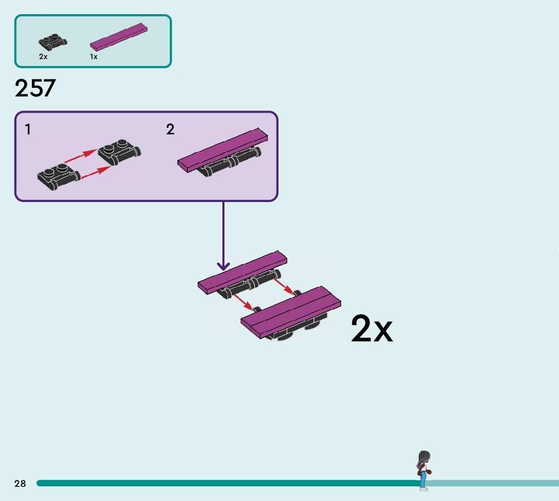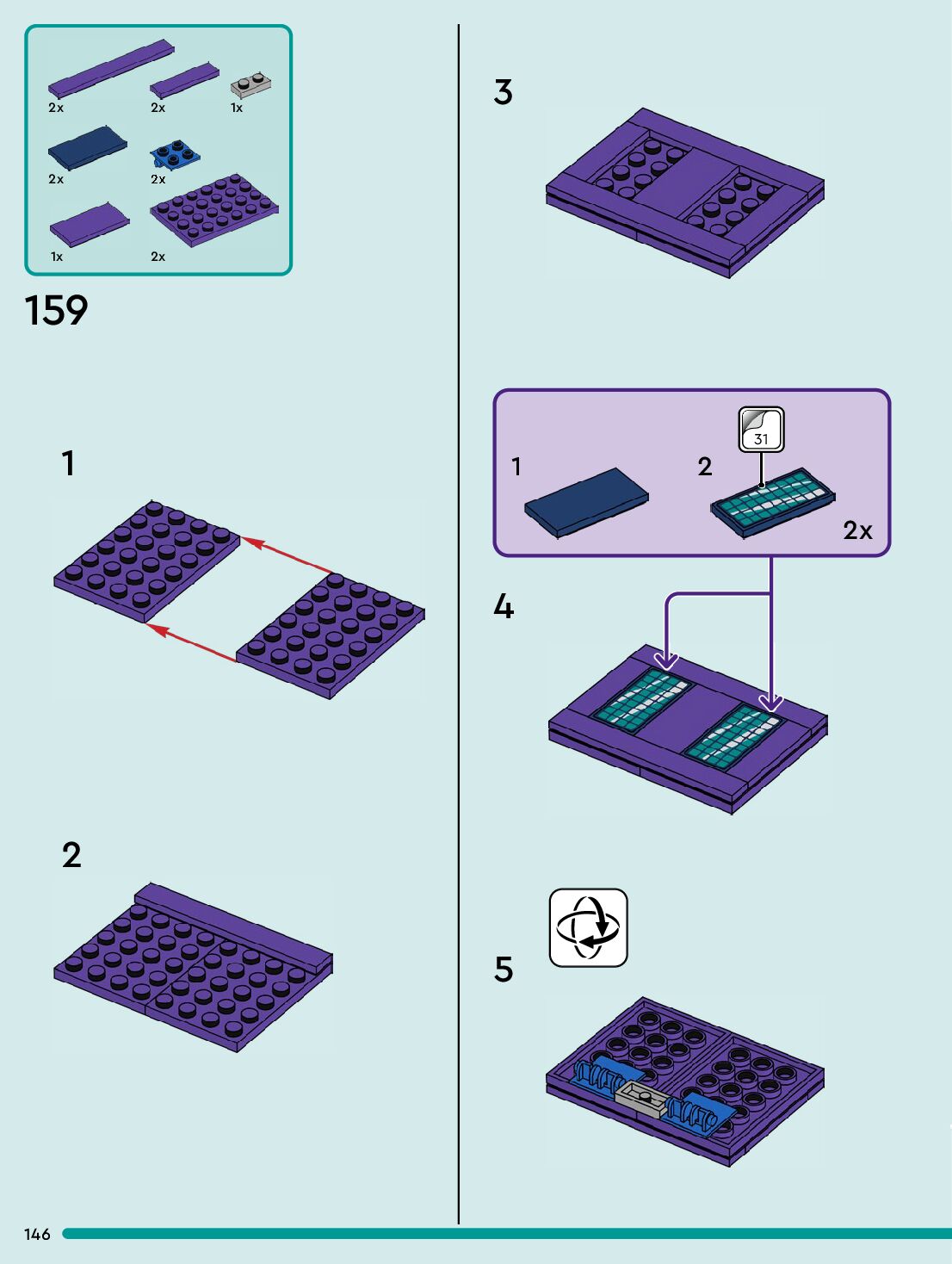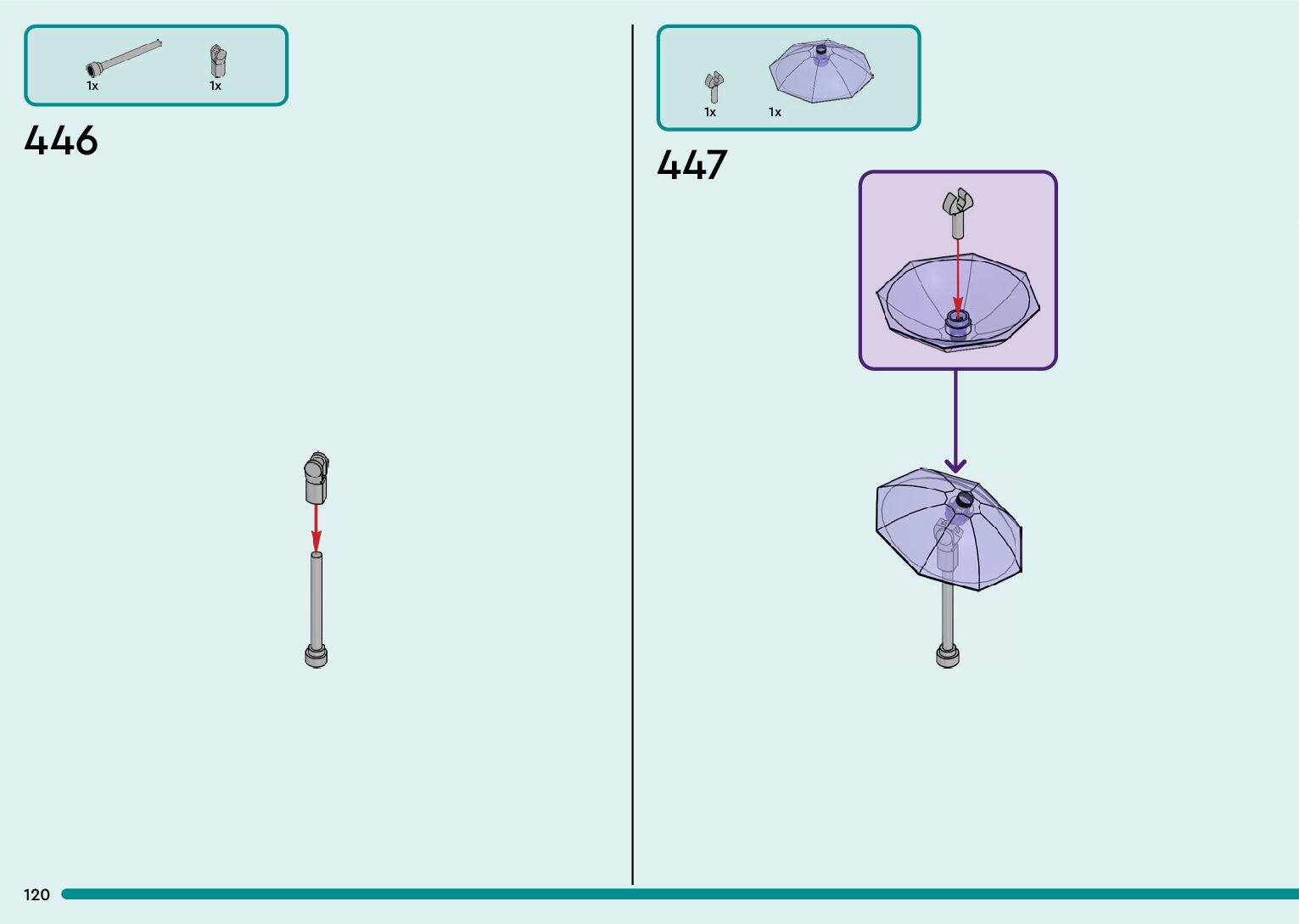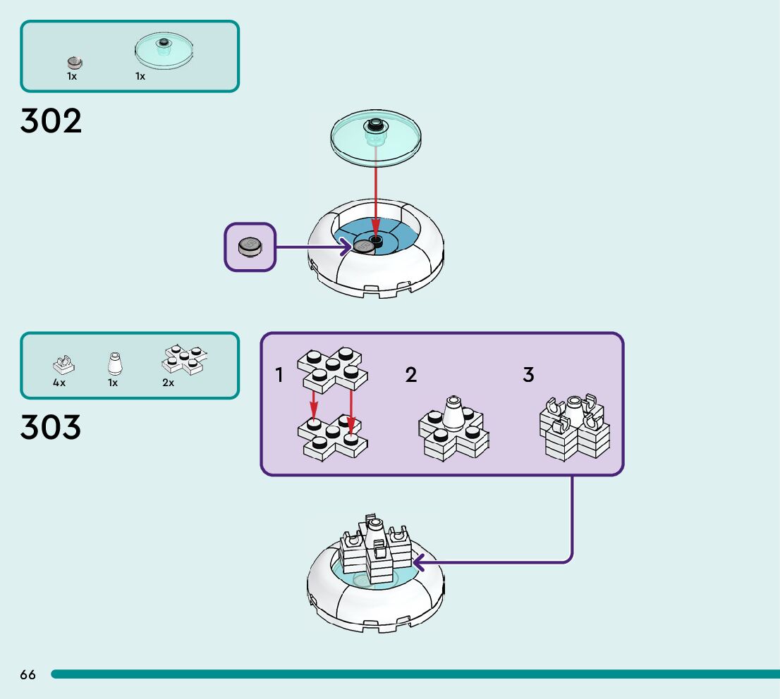 The assembly guide is prepared in a very understandable way for children and adult LEGO enthusiasts. A total of 420 picture galleries are shown, explaining the step-by-step construction stages for 3 different structures.
