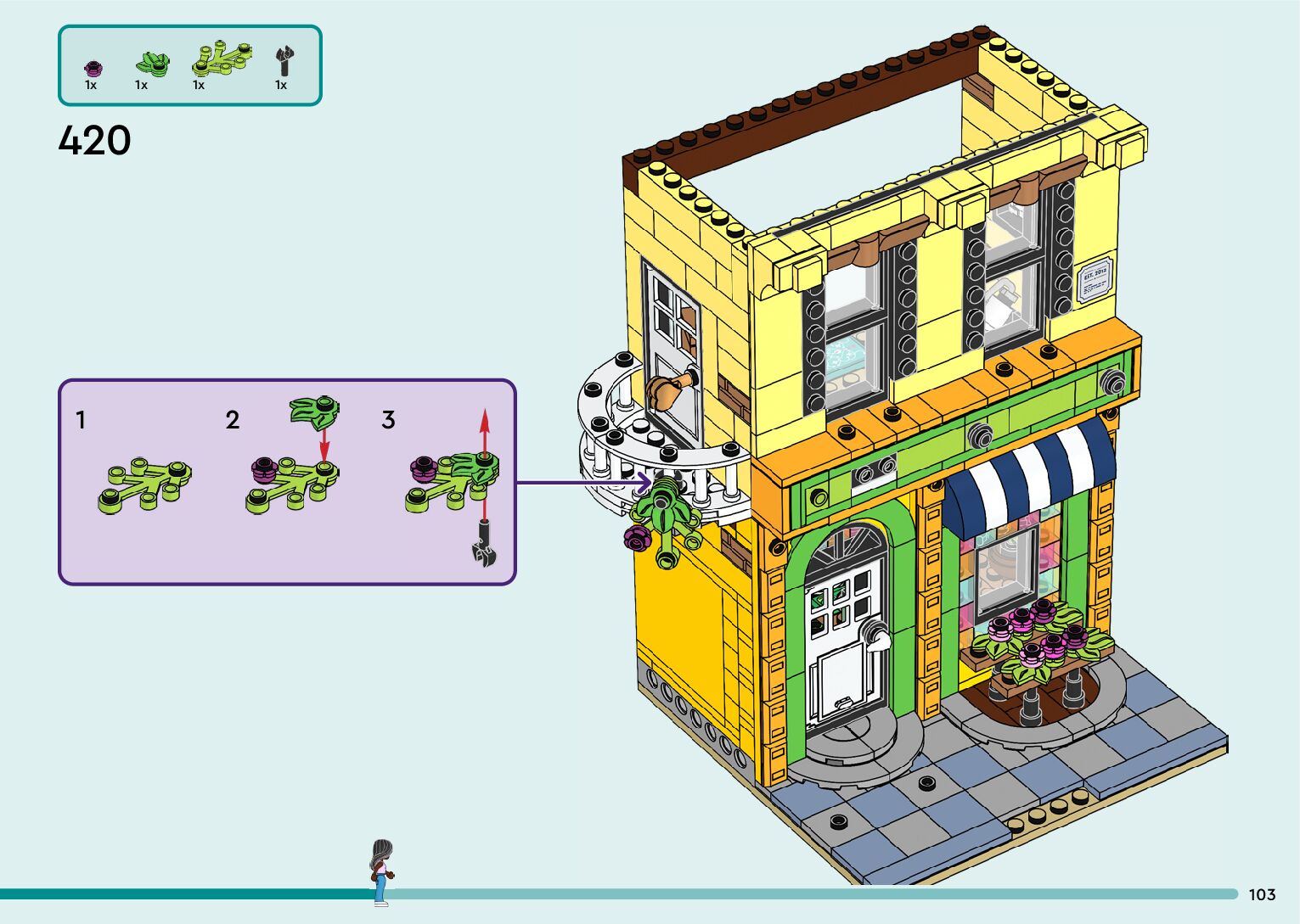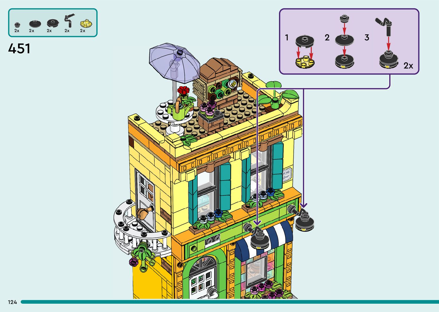On this page you can find the original construction manual for the LEGO 41732 set. With the assembly manual you can easily learn how to build the 41732 Downtown Flower and Design Stores step by step. The set was released in 2023.