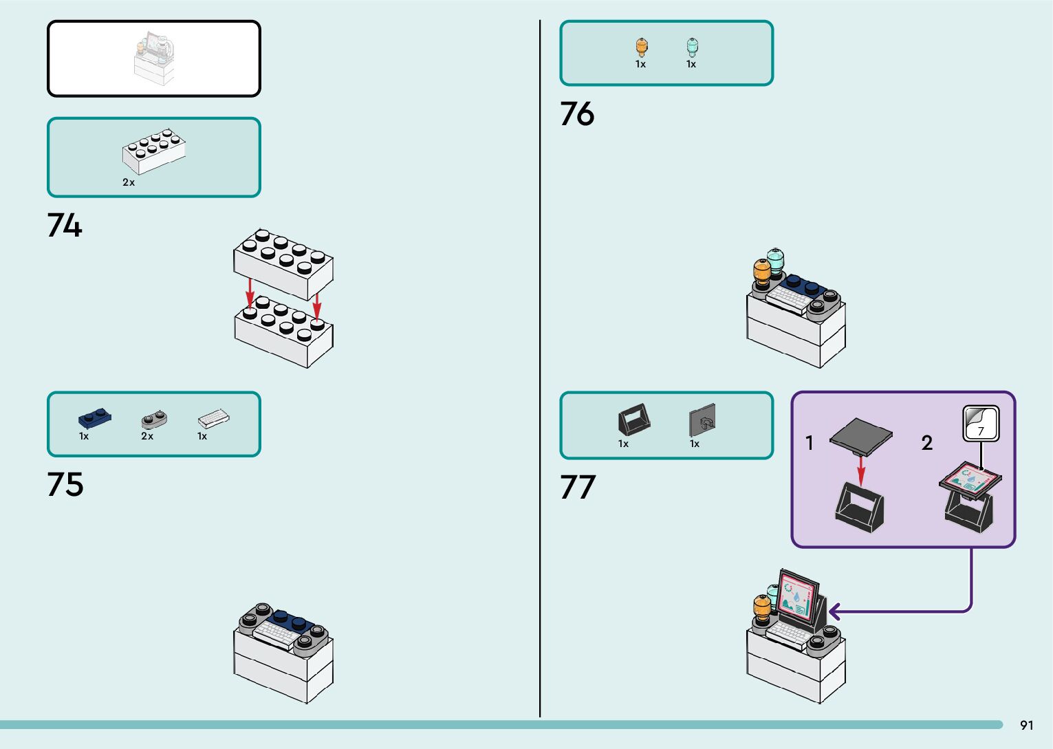 The assembly guide is prepared in a very understandable way for children and adult LEGO enthusiasts. A total of 200 picture galleries are shown, explaining the step-by-step construction stages for 1 different structures.