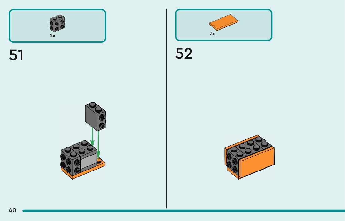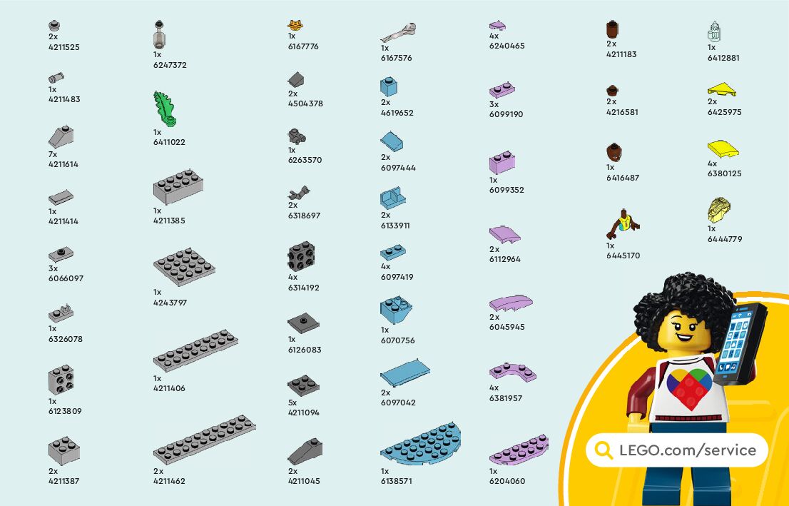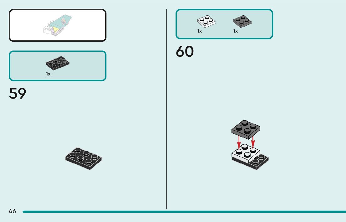 The assembly guide is prepared in a very understandable way for children and adult LEGO enthusiasts. A total of 60 picture galleries are shown, explaining the step-by-step construction stages for 1 different structures.