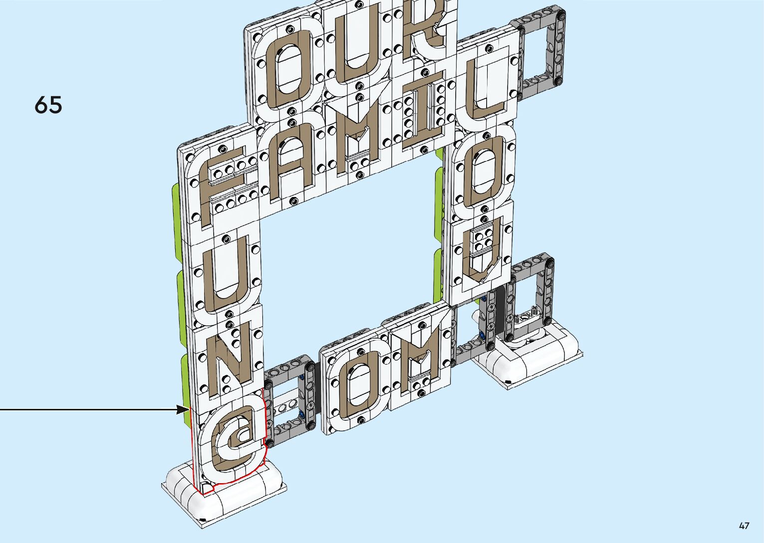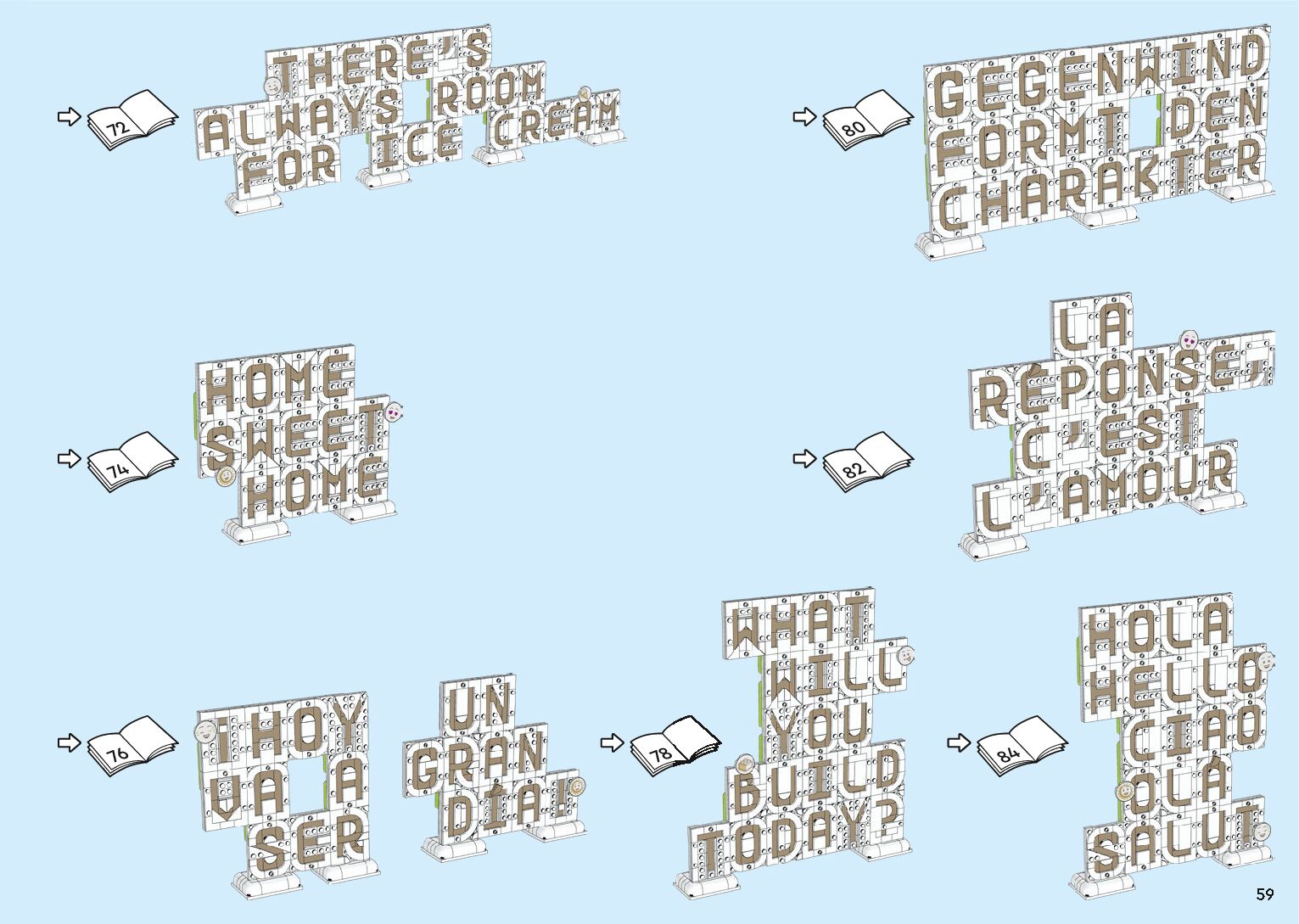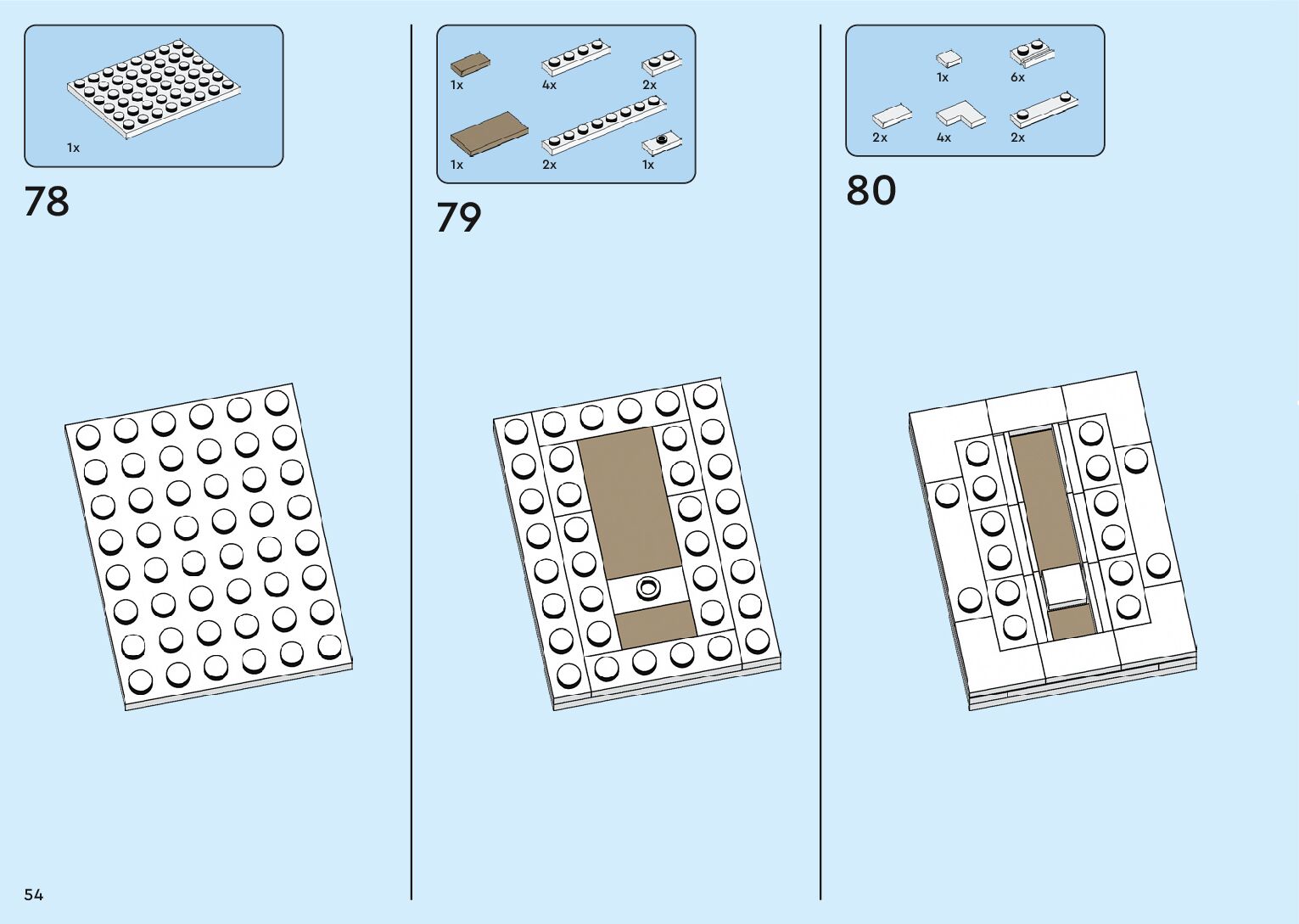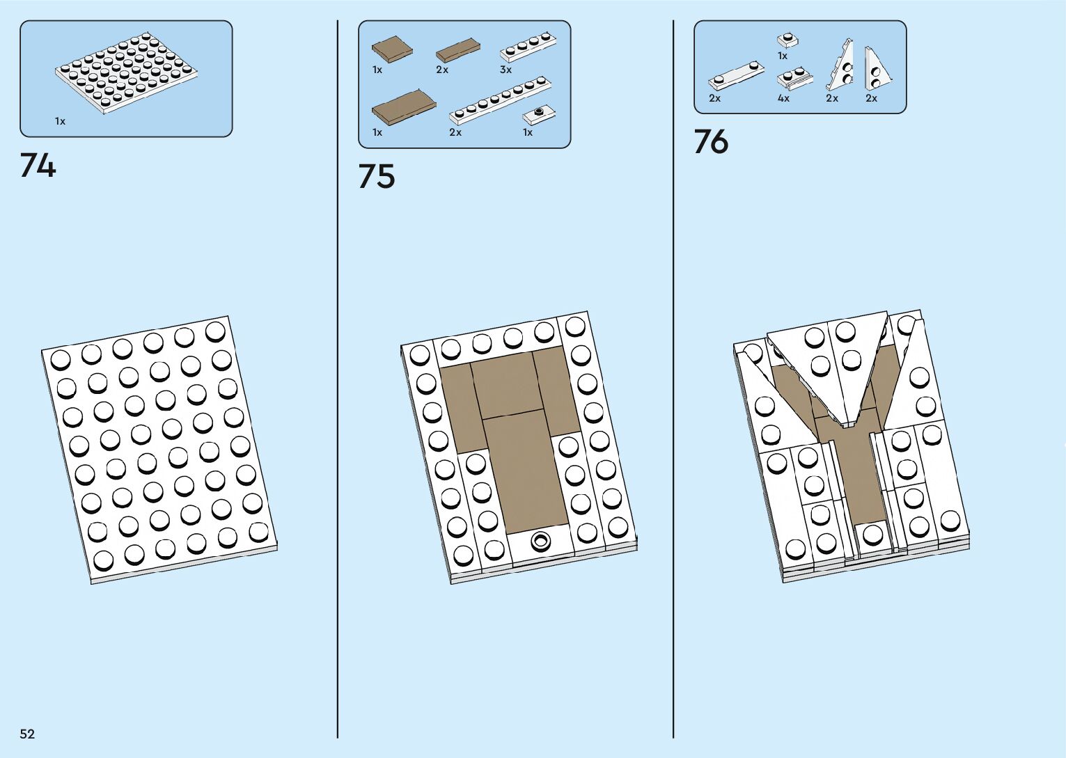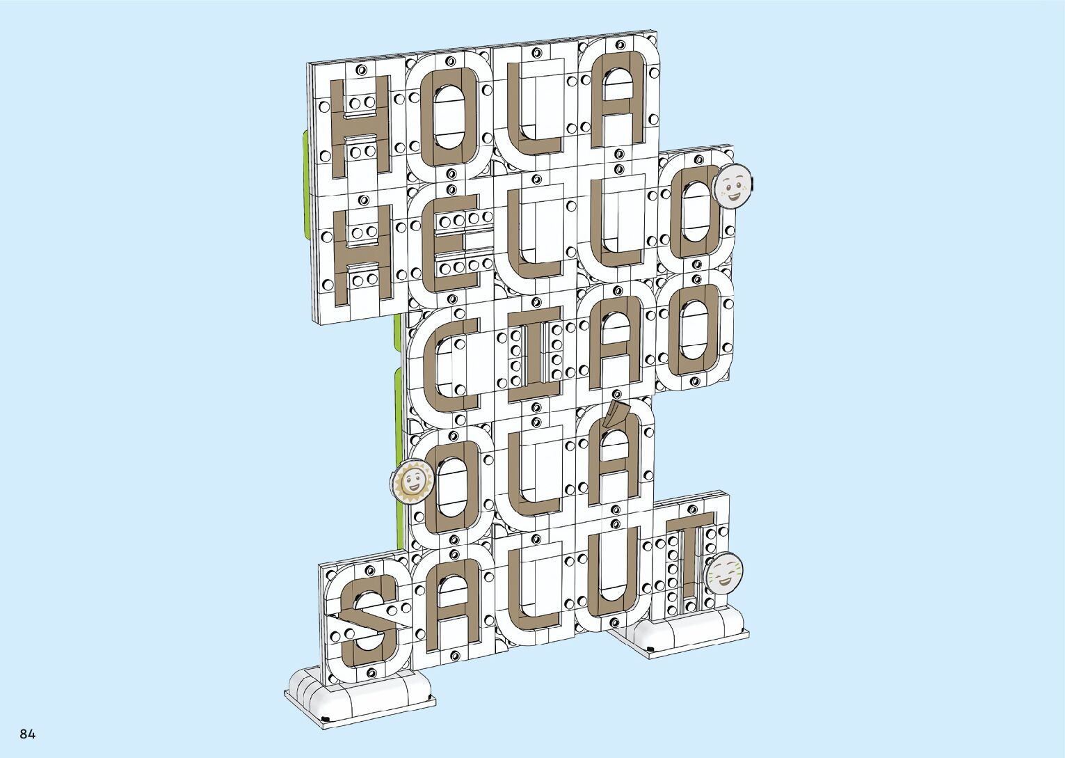 The assembly guide is prepared in a very understandable way for children and adult LEGO enthusiasts. A total of 96 picture galleries are shown, explaining the step-by-step construction stages for 5 different structures.