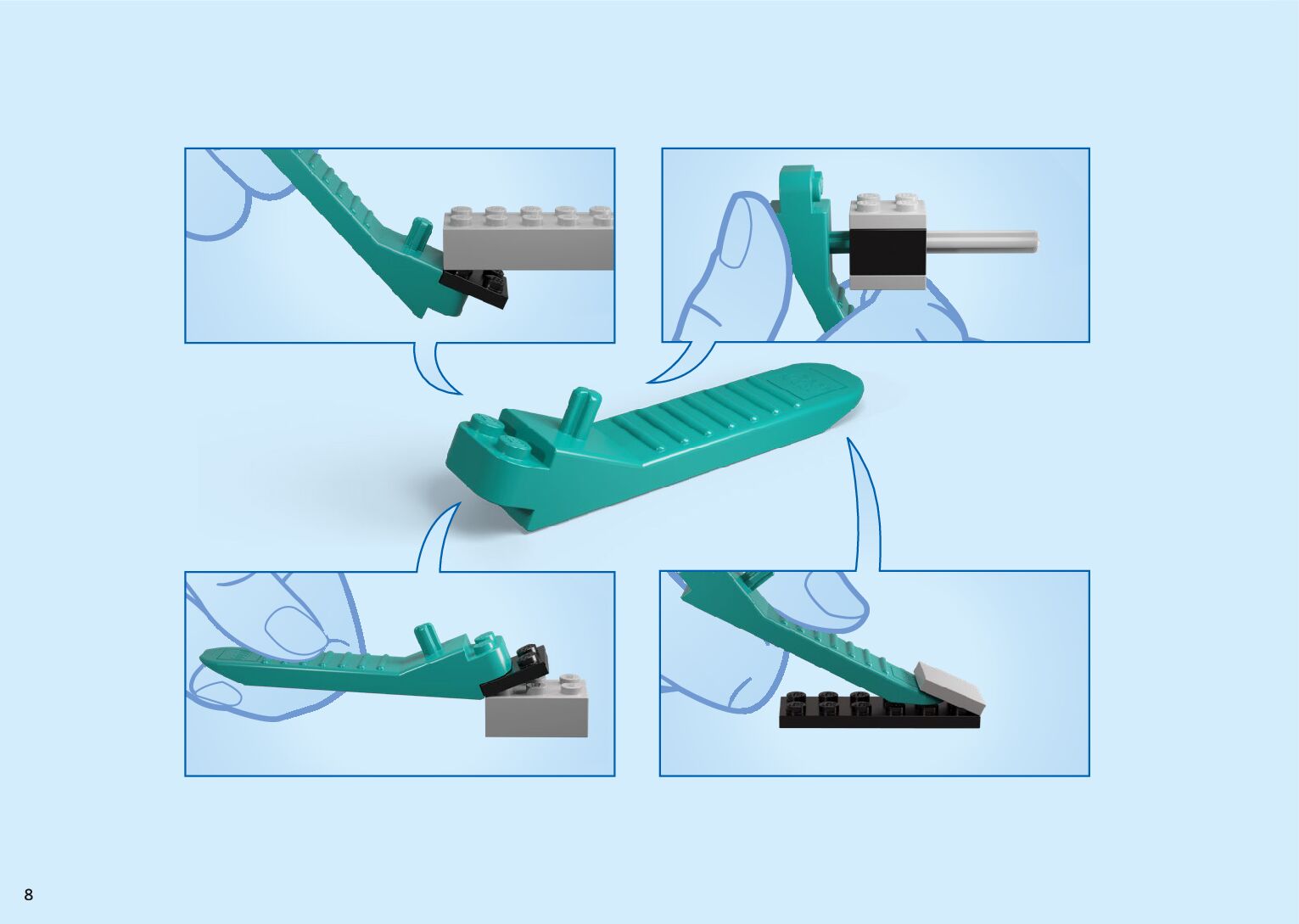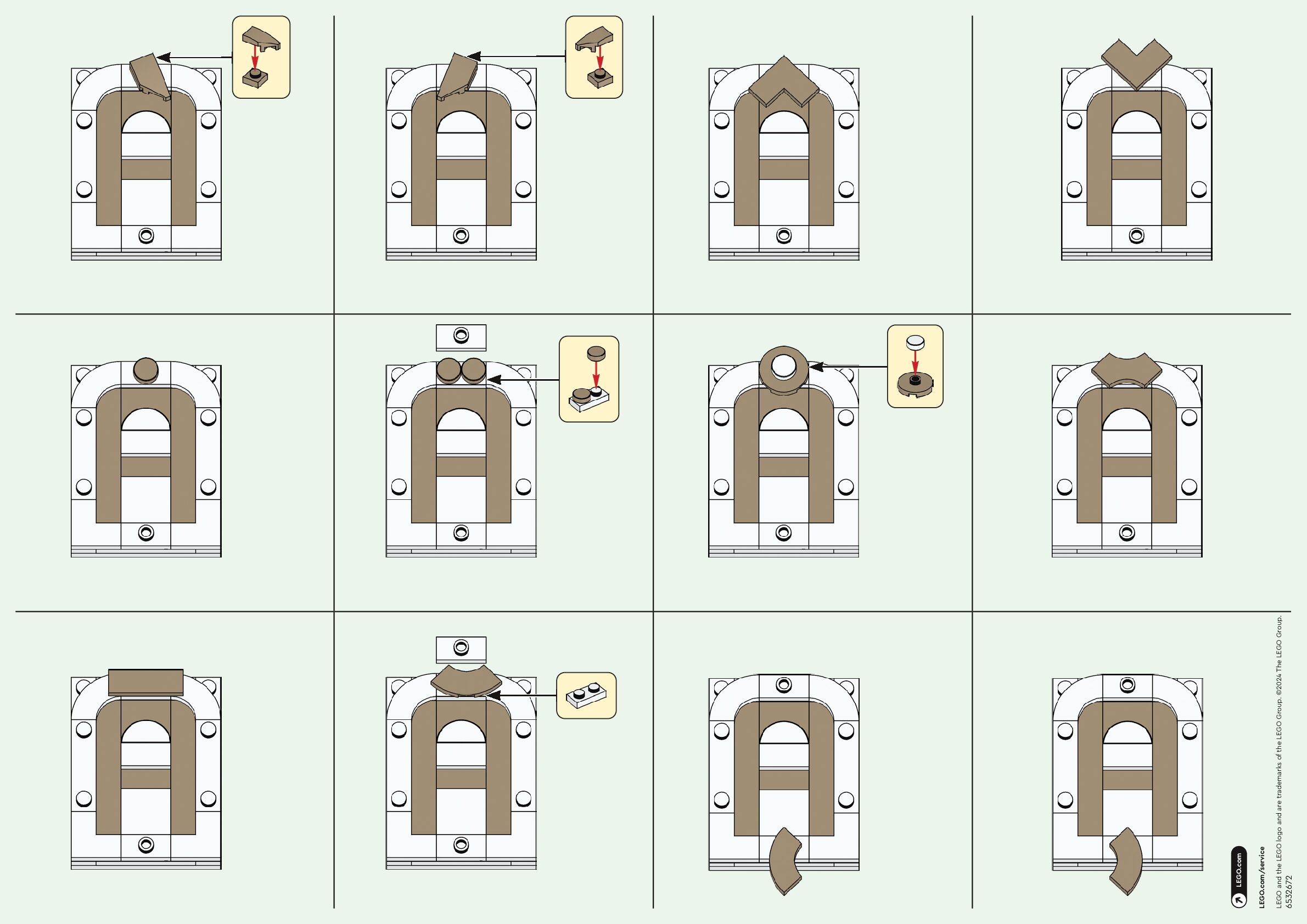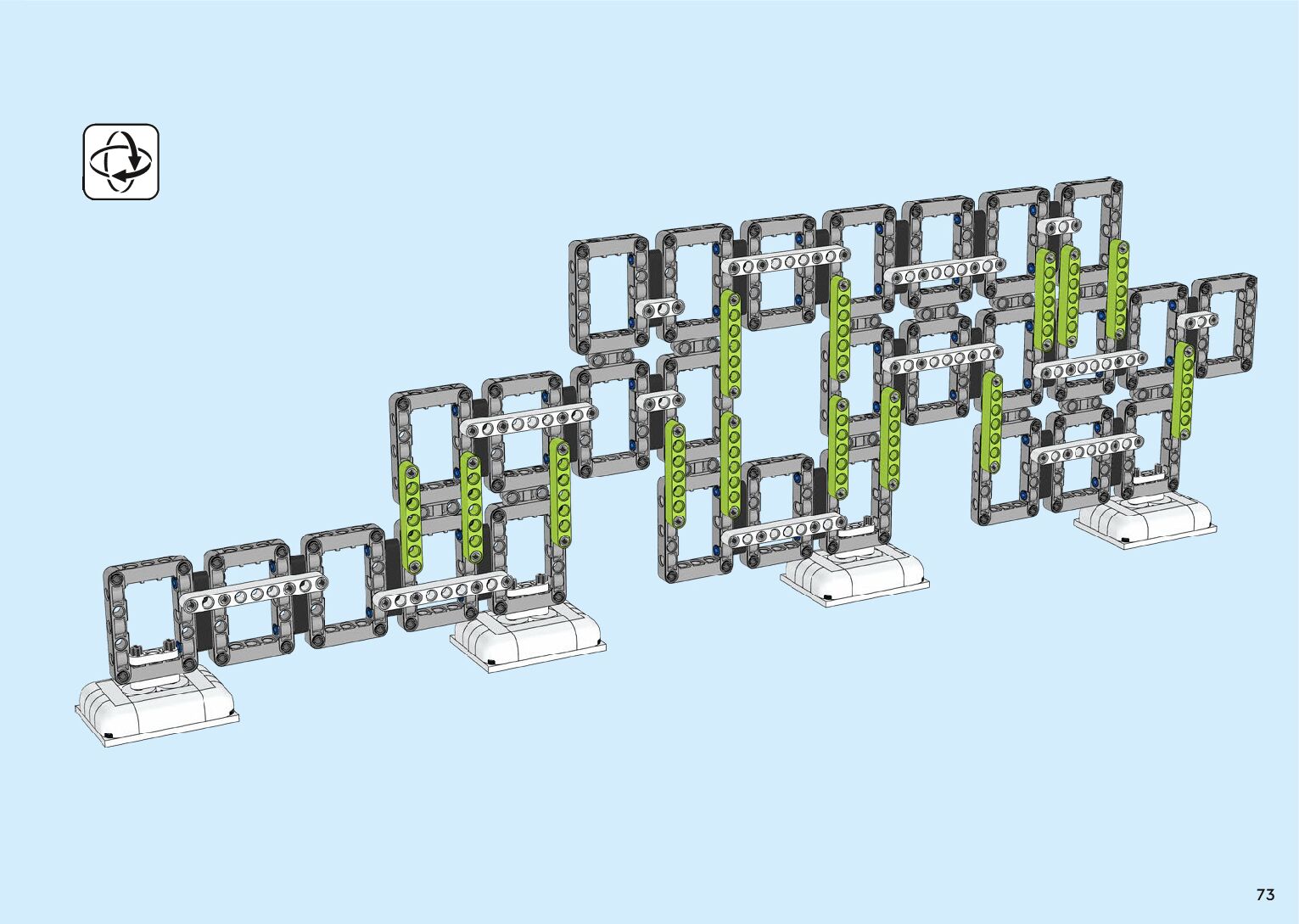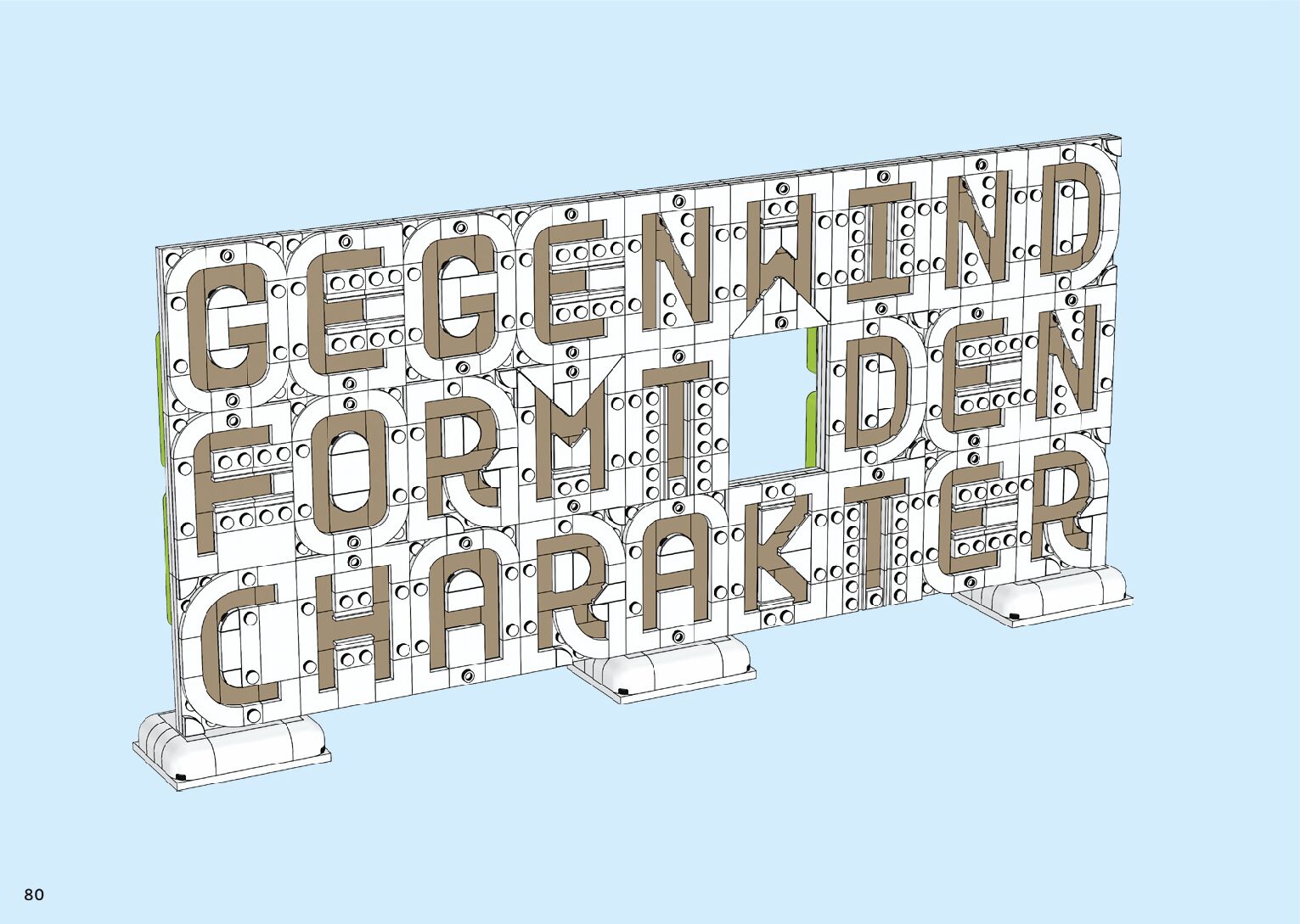 The assembly guide is prepared in a very understandable way for children and adult LEGO enthusiasts. A total of 96 picture galleries are shown, explaining the step-by-step construction stages for 5 different structures.