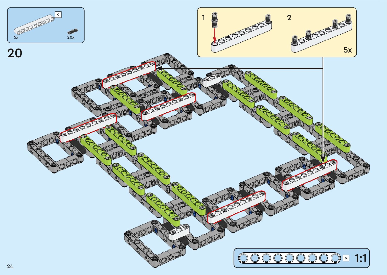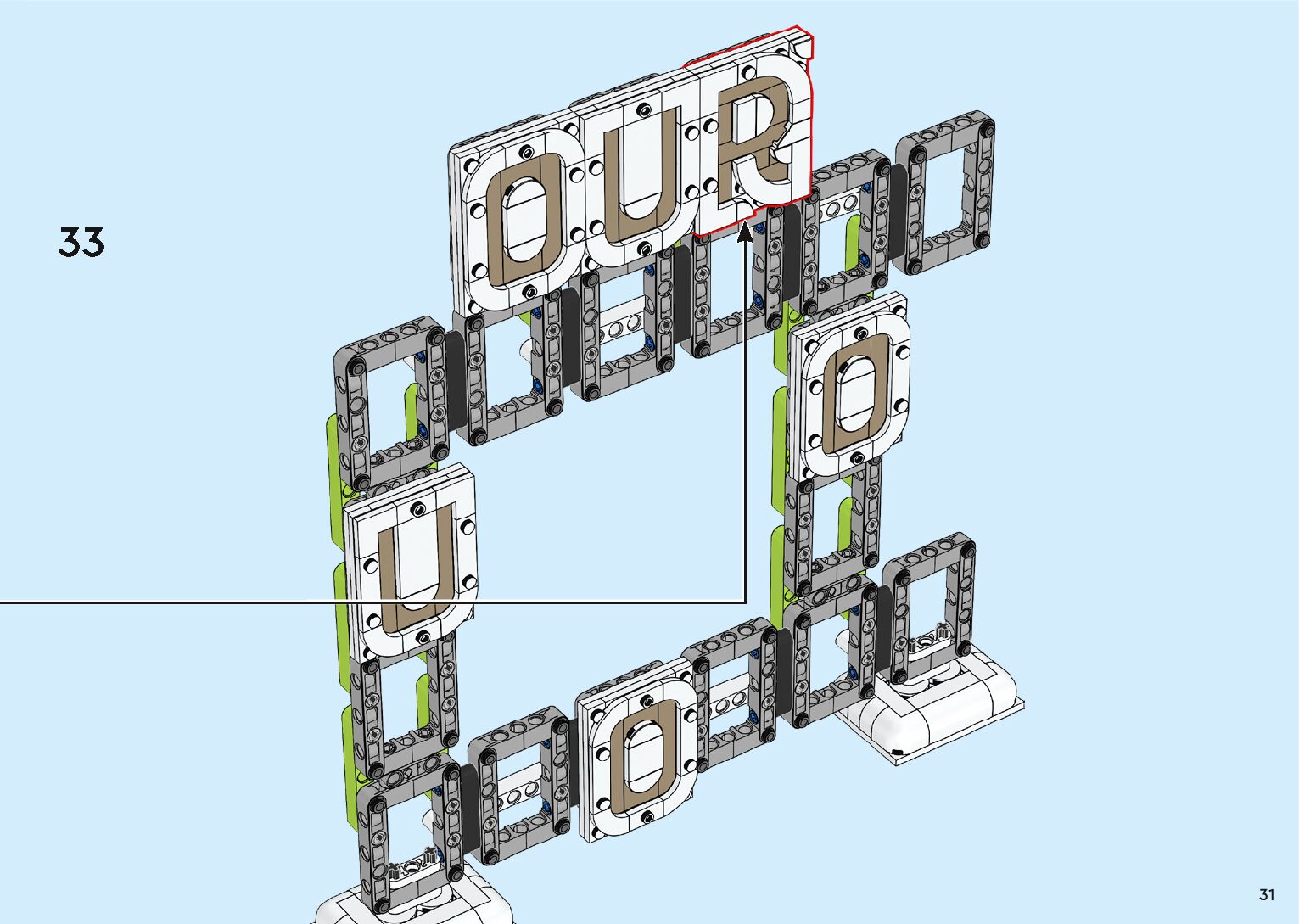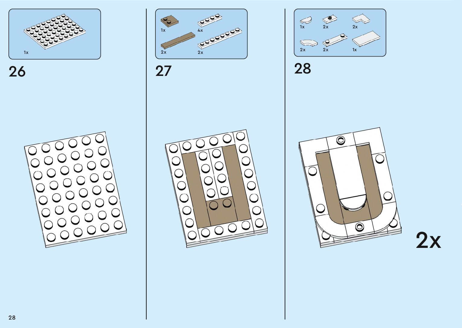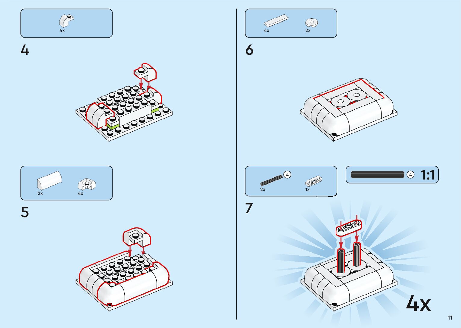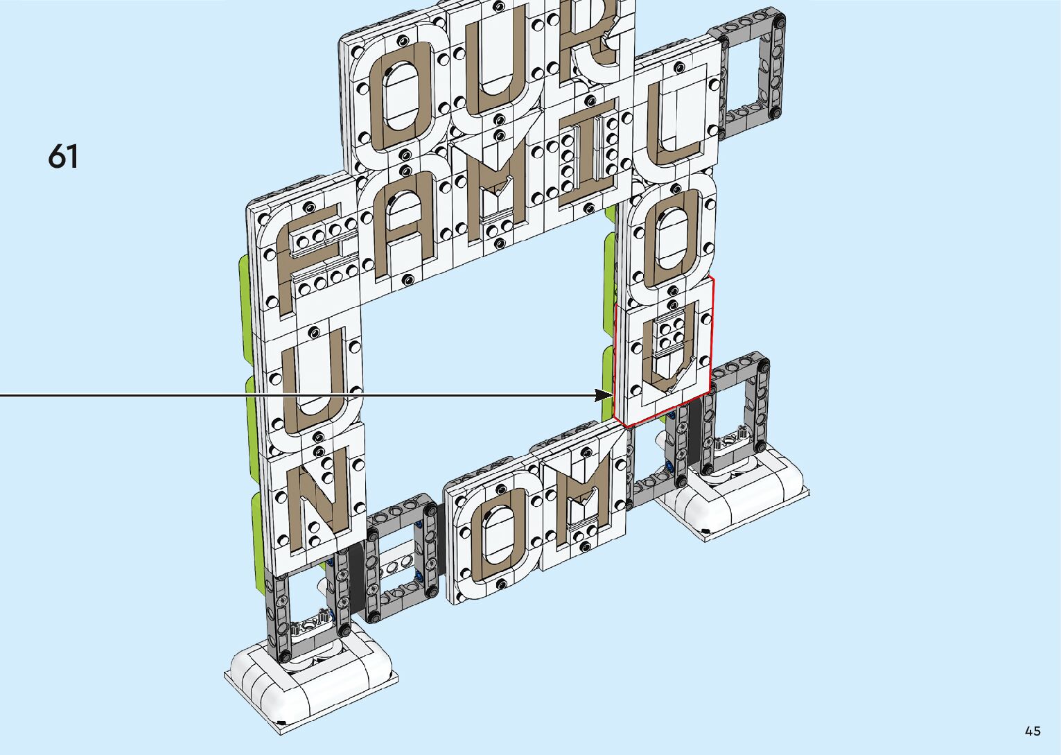 The assembly guide is prepared in a very understandable way for children and adult LEGO enthusiasts. A total of 96 picture galleries are shown, explaining the step-by-step construction stages for 5 different structures.