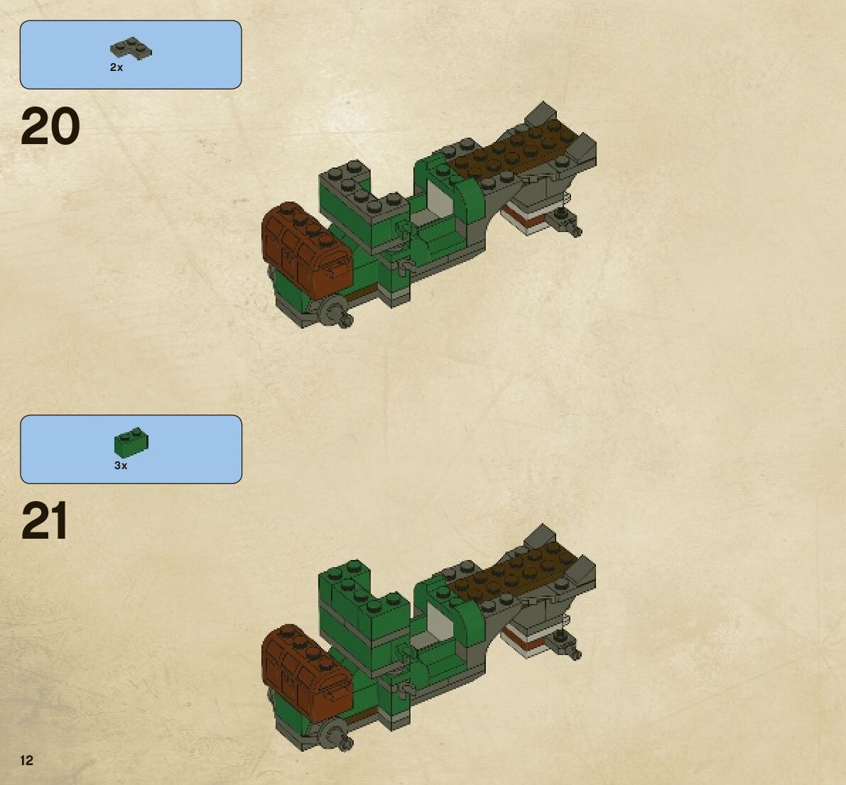 The assembly guide is prepared in a very understandable way for children and adult LEGO enthusiasts. A total of 100 picture galleries are shown, explaining the step-by-step construction stages for 2 different structures.