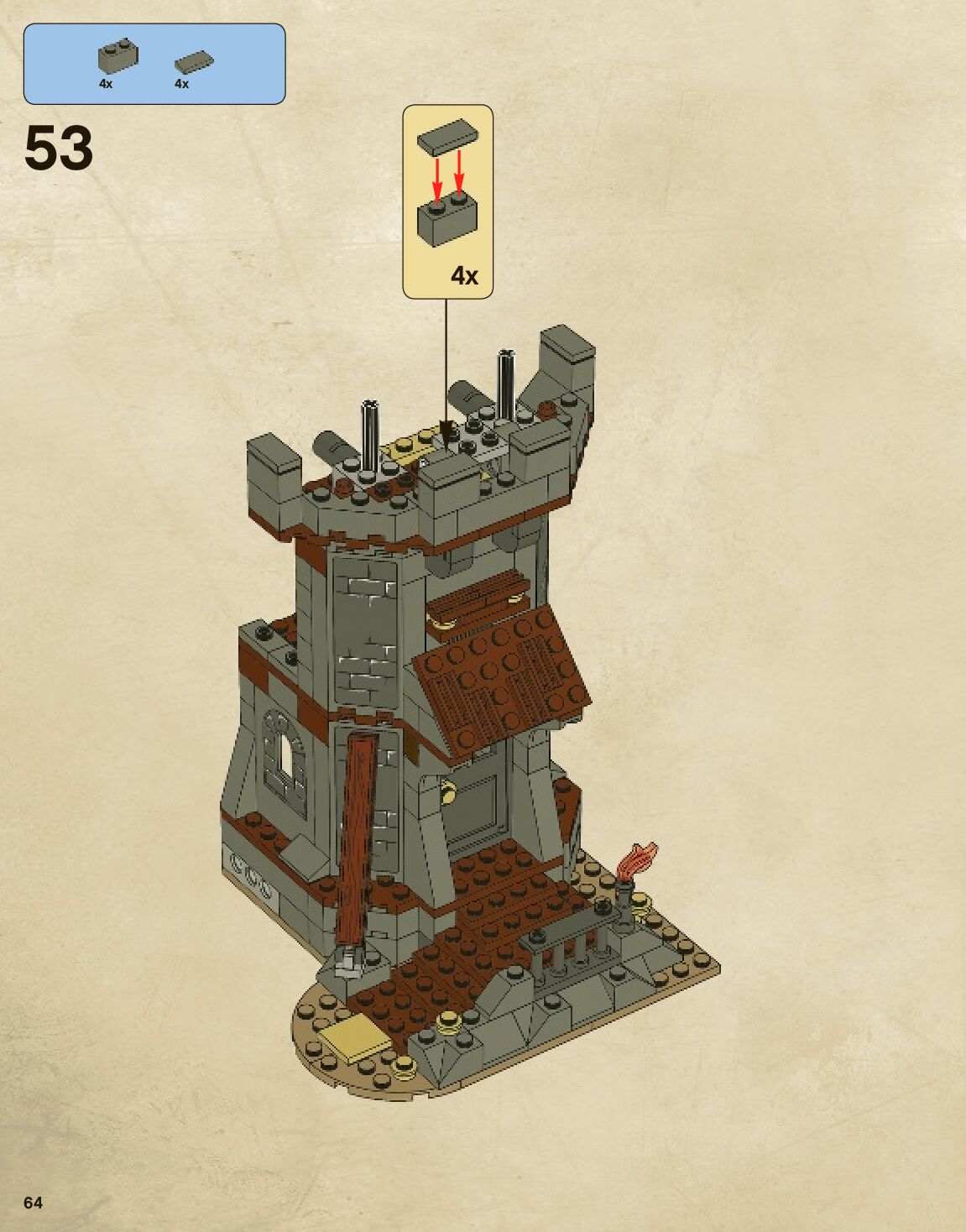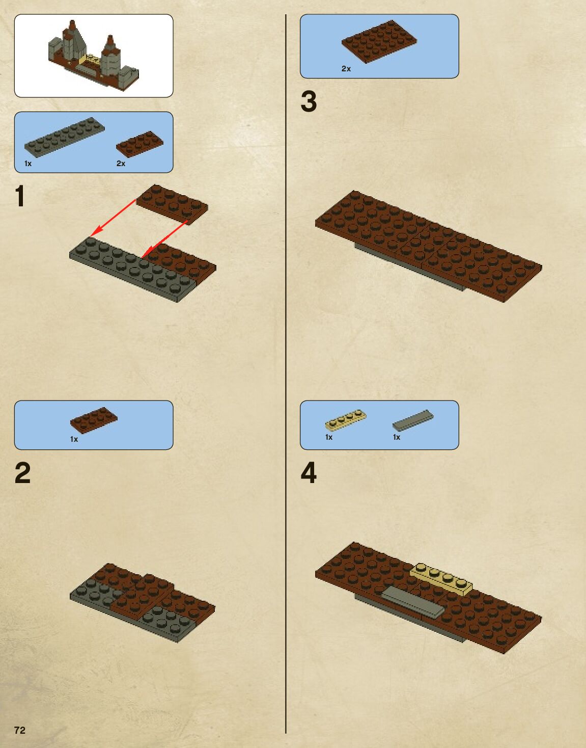 The assembly guide is prepared in a very understandable way for children and adult LEGO enthusiasts. A total of 744 picture galleries are shown, explaining the step-by-step construction stages for 2 different structures.