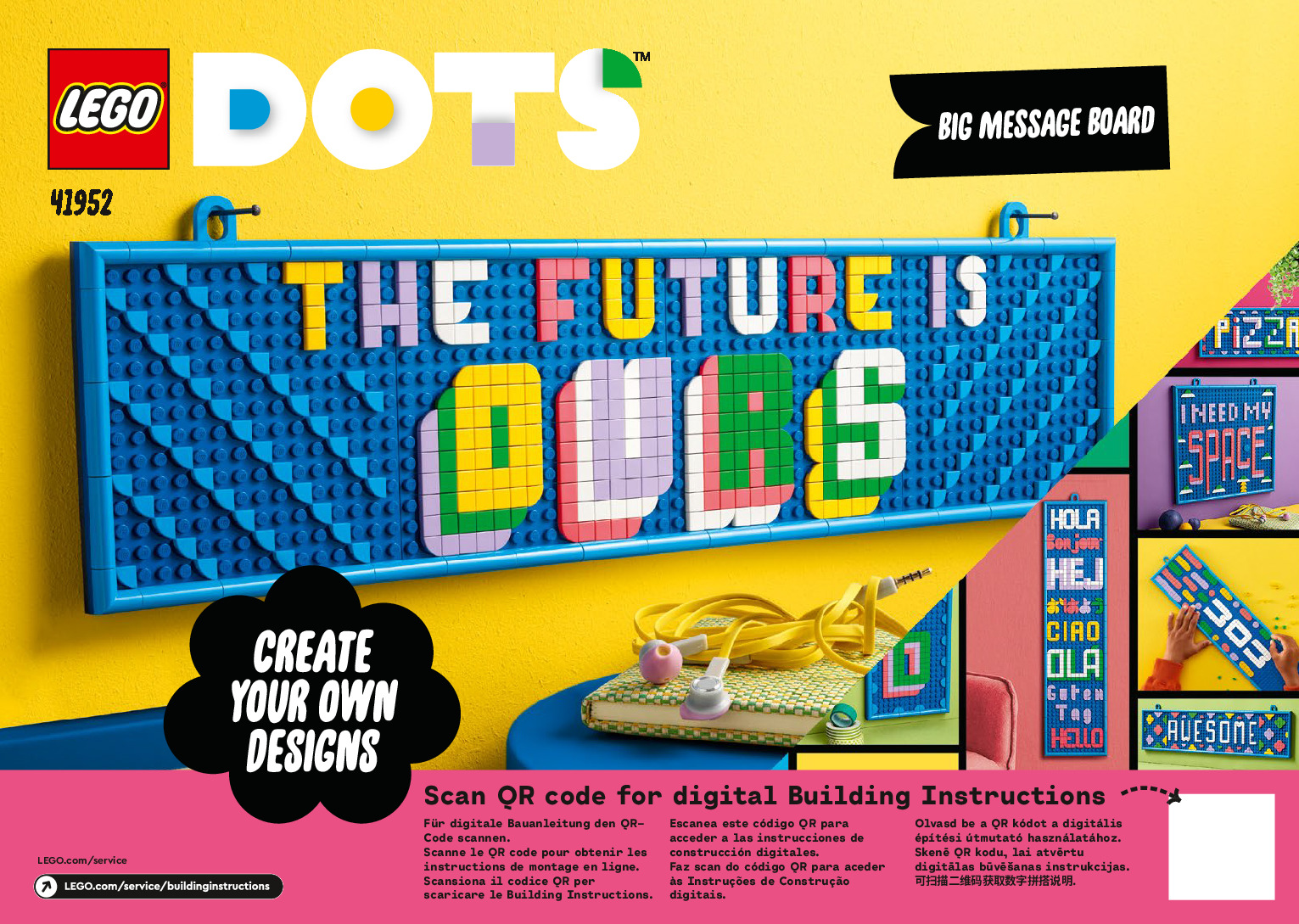 On this page you can find the original construction manual for the LEGO 41952 set. With the assembly manual you can easily learn how to build the 41952 Big Message Board step by step. The set was released in 2022.