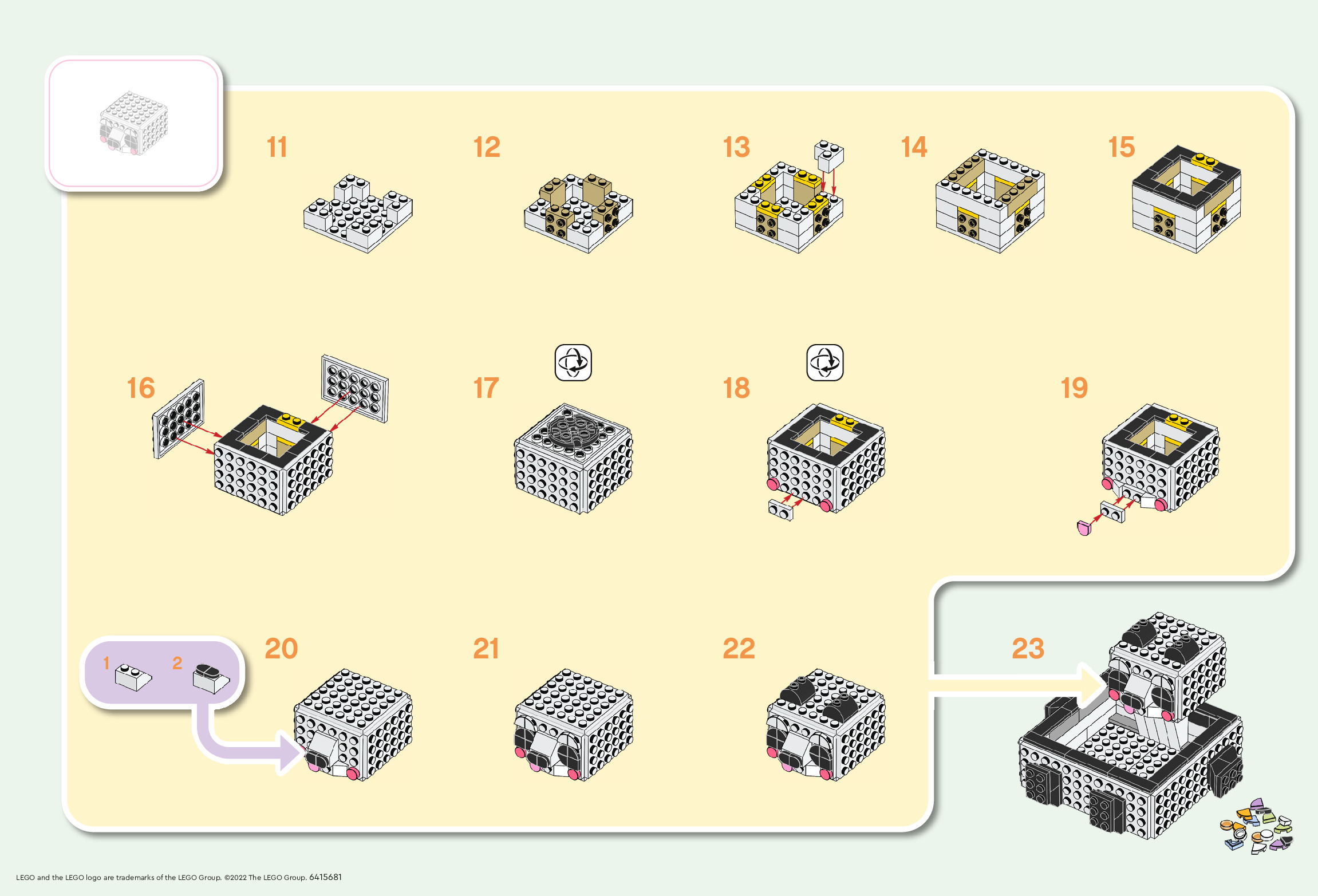 The assembly guide is prepared in a very understandable way for children and adult LEGO enthusiasts. A total of 4 picture galleries are shown, explaining the step-by-step construction stages for 2 different structures.