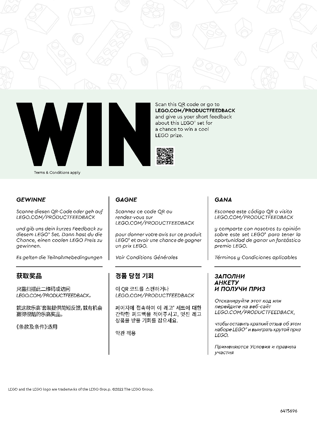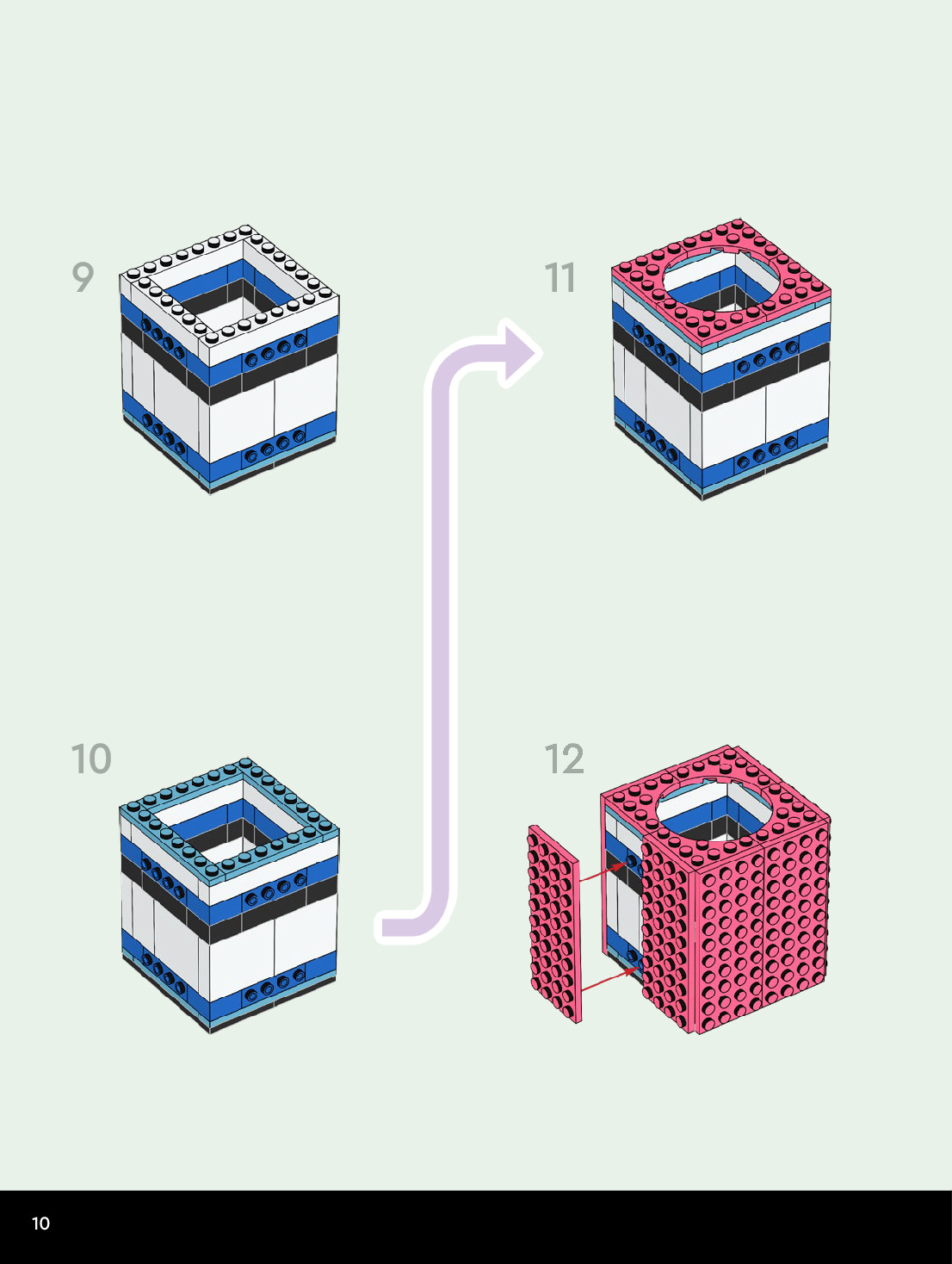 The assembly guide is prepared in a very understandable way for children and adult LEGO enthusiasts. A total of 40 picture galleries are shown, explaining the step-by-step construction stages for 1 different structures.
