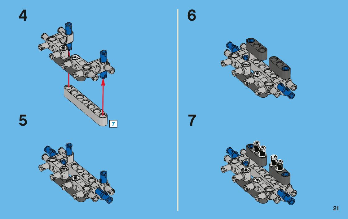 The assembly guide is prepared in a very understandable way for children and adult LEGO enthusiasts. A total of 136 picture galleries are shown, explaining the step-by-step construction stages for 3 different structures.