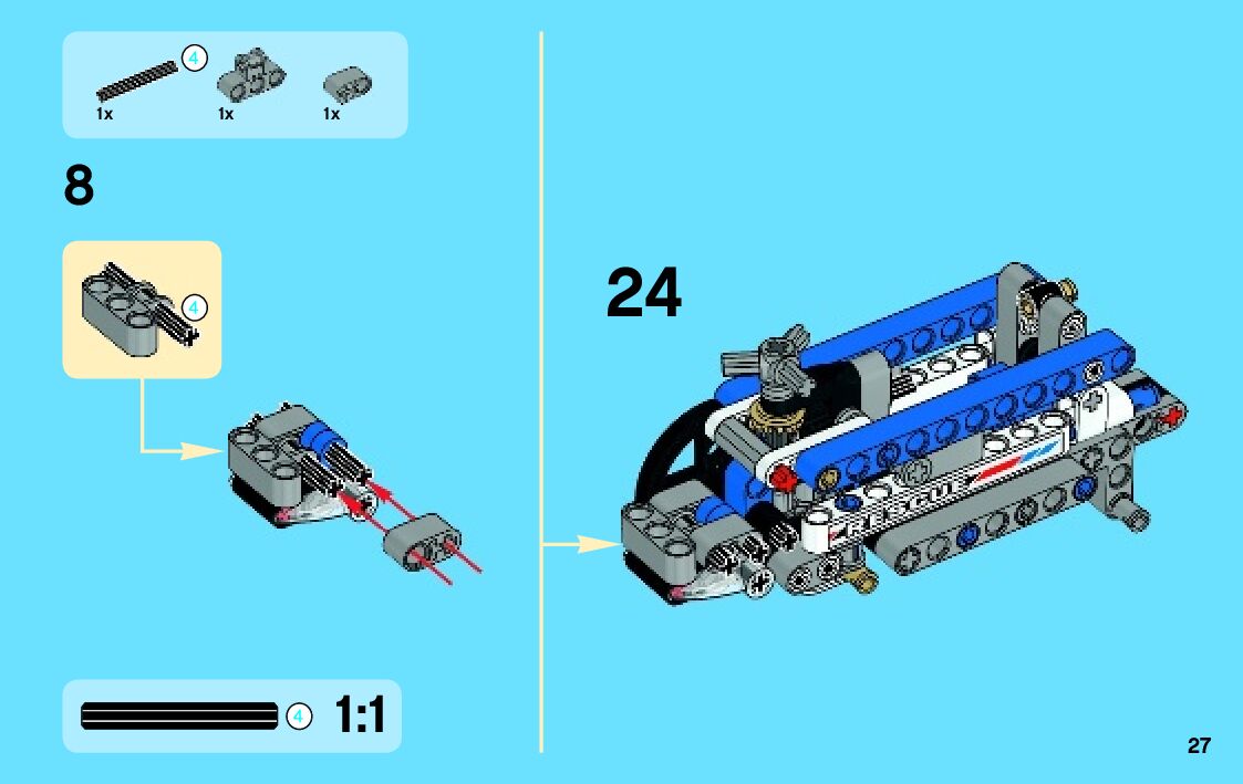 The assembly guide is prepared in a very understandable way for children and adult LEGO enthusiasts. A total of 72 picture galleries are shown, explaining the step-by-step construction stages for 2 different structures.