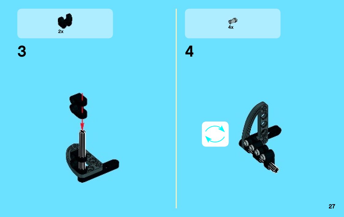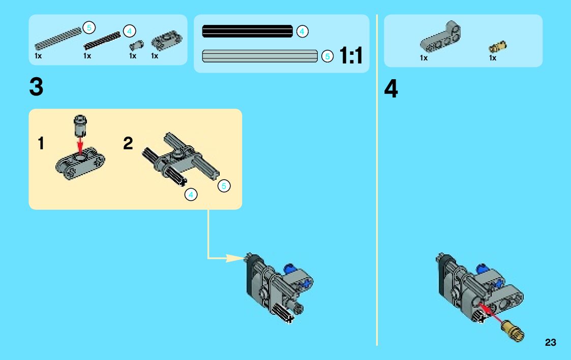 The assembly guide is prepared in a very understandable way for children and adult LEGO enthusiasts. A total of 100 picture galleries are shown, explaining the step-by-step construction stages for 2 different structures.