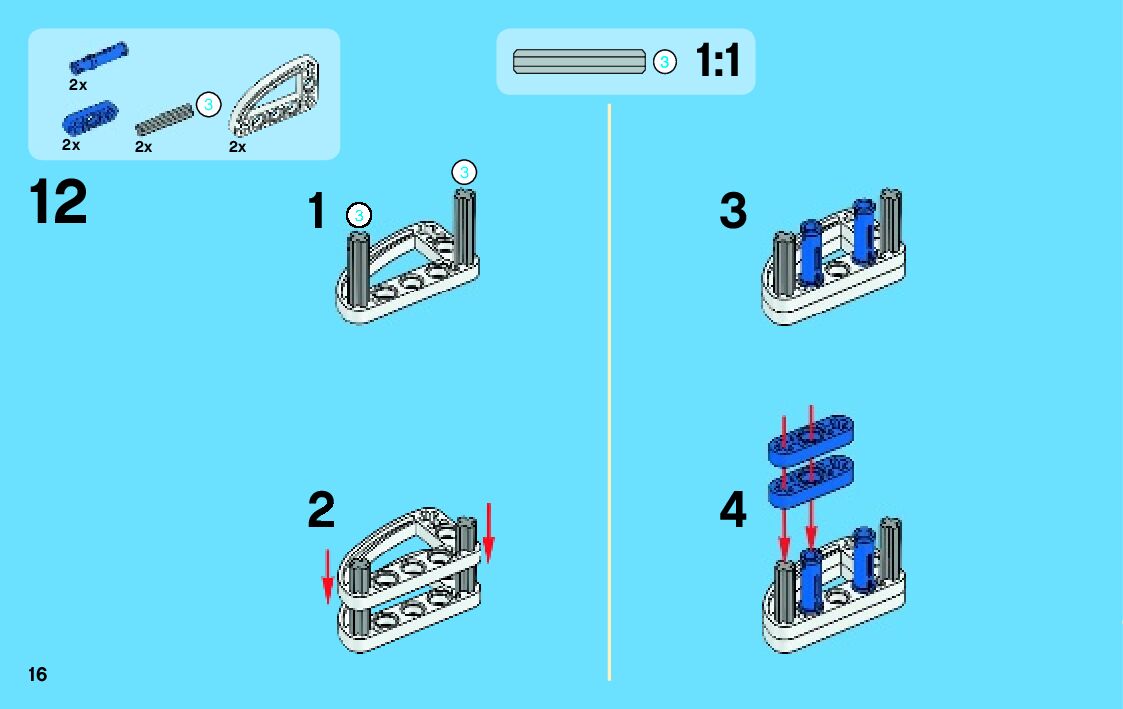 The assembly guide is prepared in a very understandable way for children and adult LEGO enthusiasts. A total of 121 picture galleries are shown, explaining the step-by-step construction stages for 2 different structures.