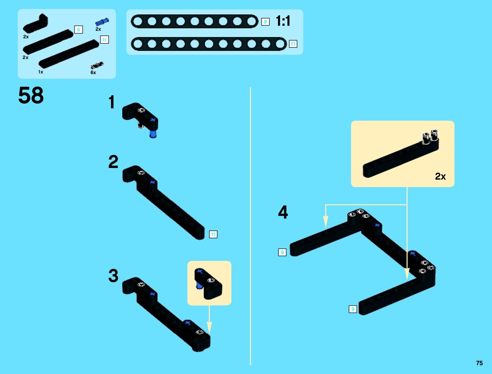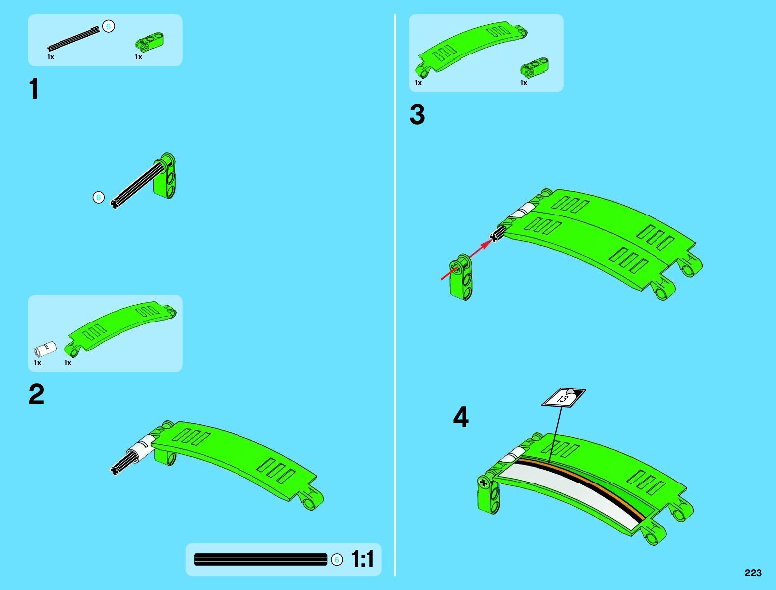 The assembly guide is prepared in a very understandable way for children and adult LEGO enthusiasts. A total of 489 picture galleries are shown, explaining the step-by-step construction stages for 2 different structures.