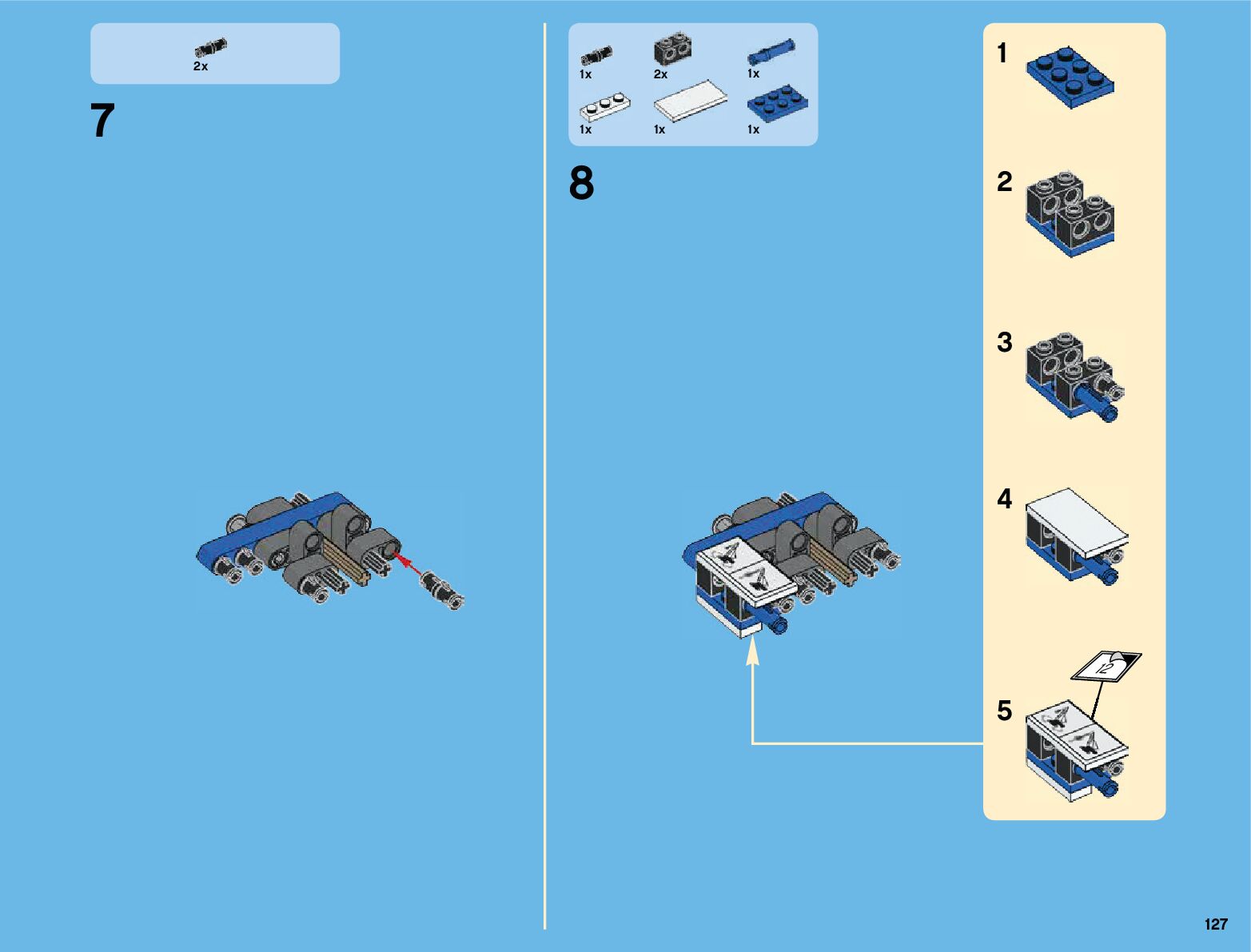 The assembly guide is prepared in a very understandable way for children and adult LEGO enthusiasts. A total of 506 picture galleries are shown, explaining the step-by-step construction stages for 2 different structures.