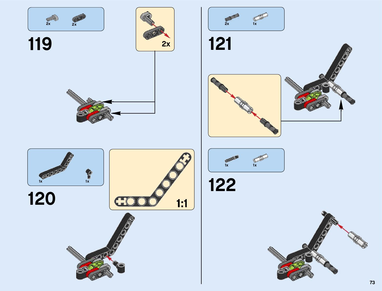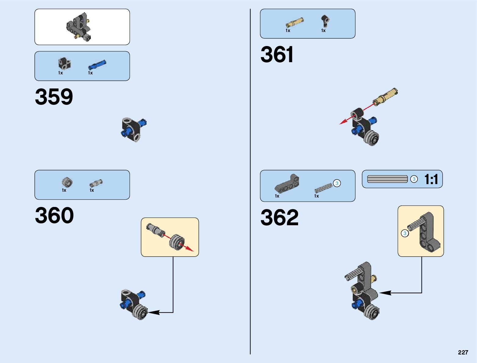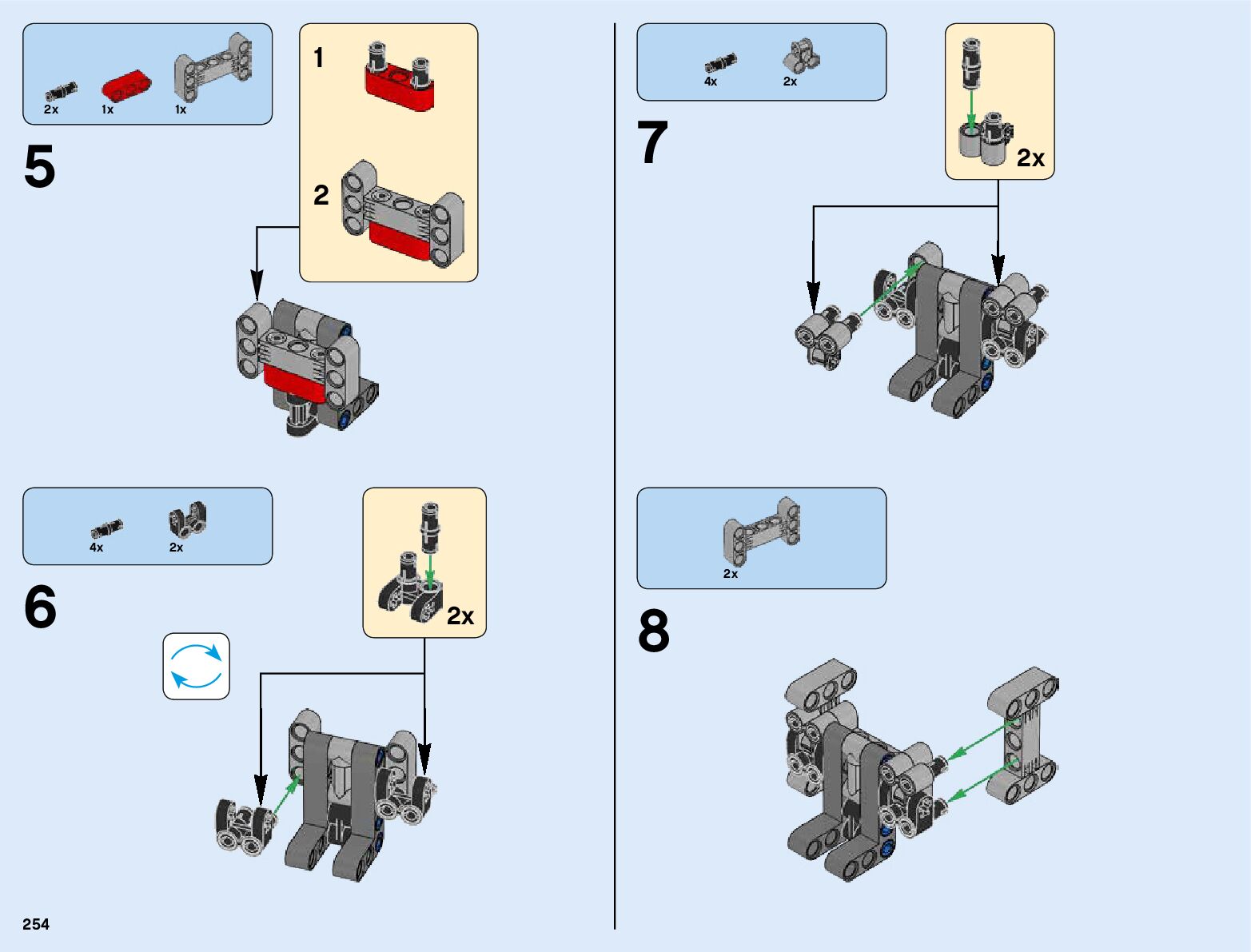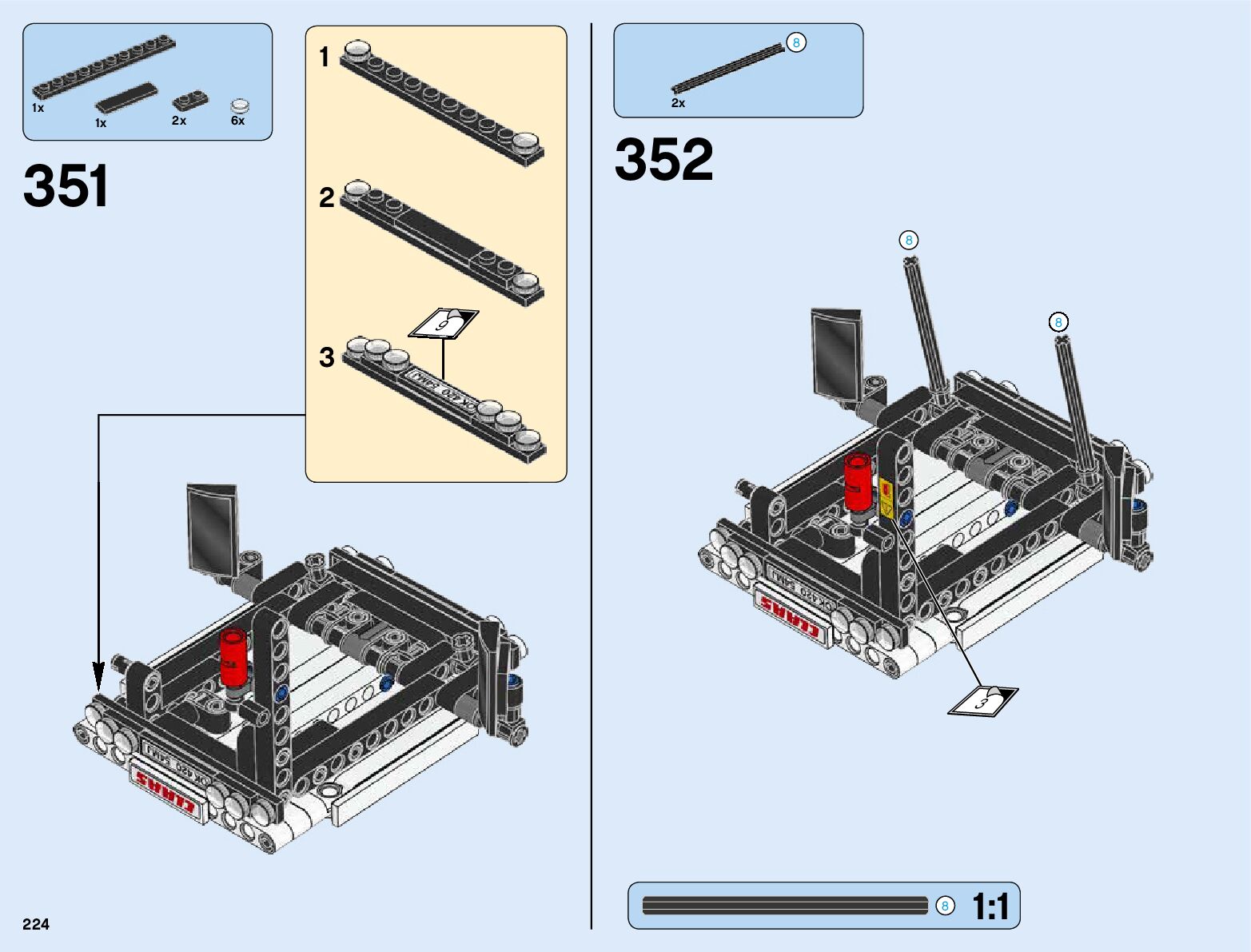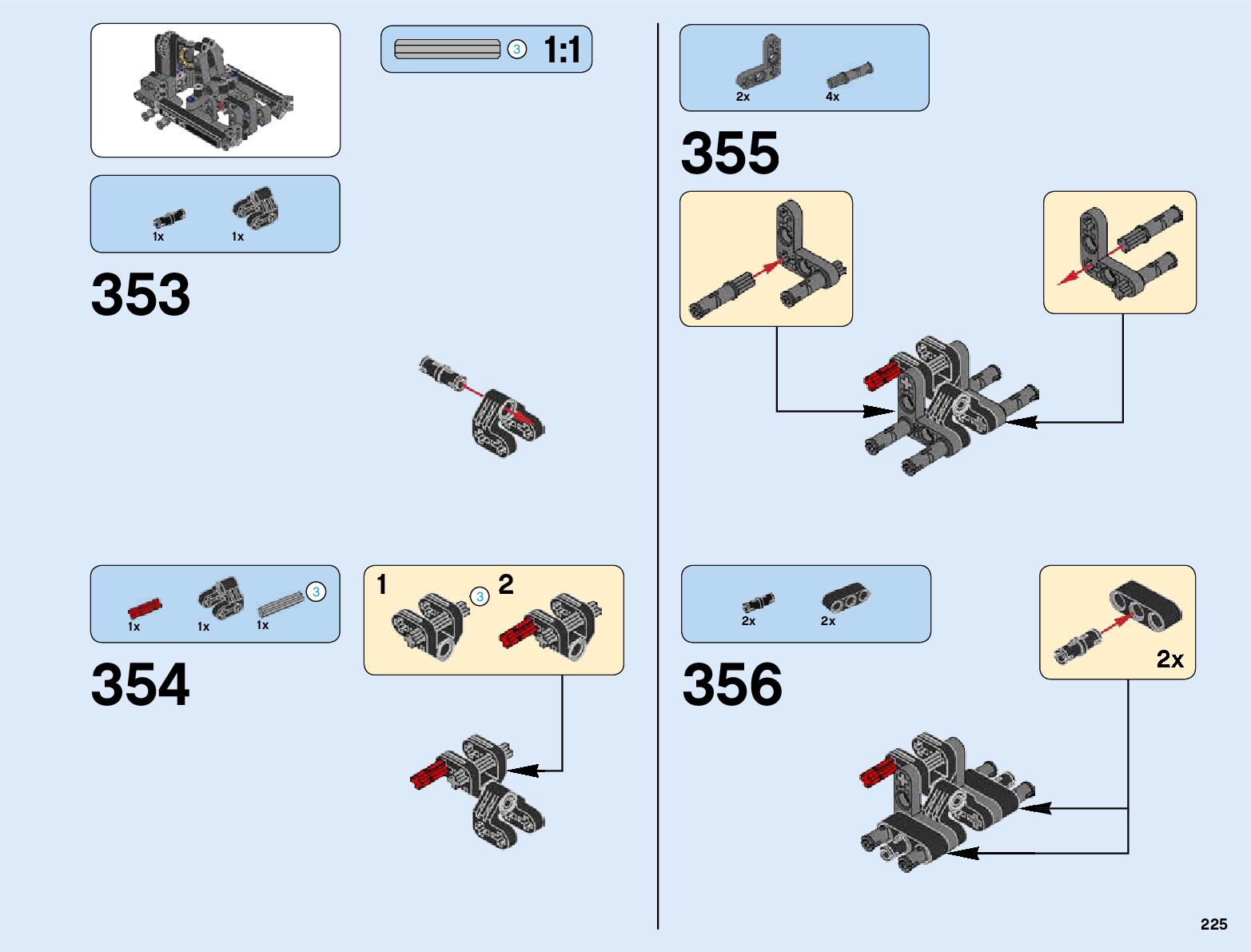 The assembly guide is prepared in a very understandable way for children and adult LEGO enthusiasts. A total of 462 picture galleries are shown, explaining the step-by-step construction stages for 3 different structures.