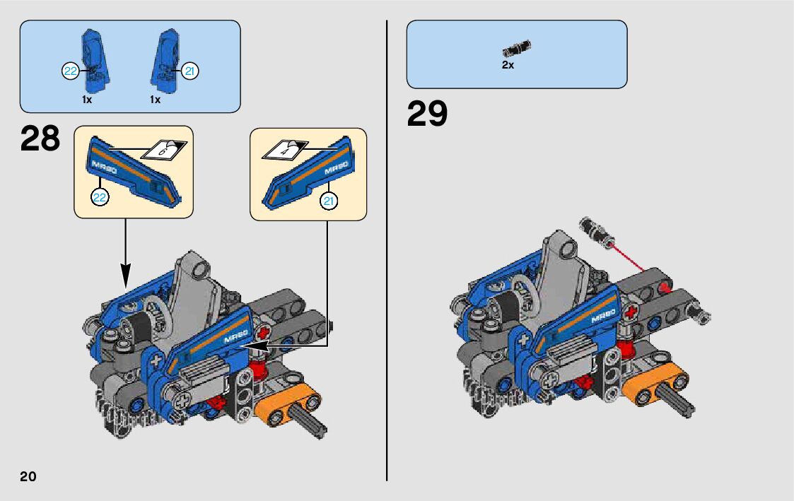 The assembly guide is prepared in a very understandable way for children and adult LEGO enthusiasts. A total of 100 picture galleries are shown, explaining the step-by-step construction stages for 2 different structures.