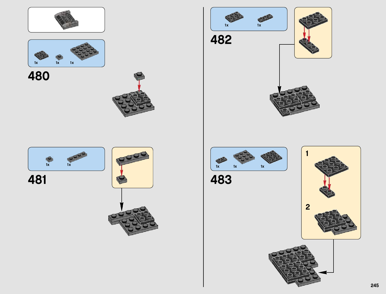 The assembly guide is prepared in a very understandable way for children and adult LEGO enthusiasts. A total of 897 picture galleries are shown, explaining the step-by-step construction stages for 3 different structures.