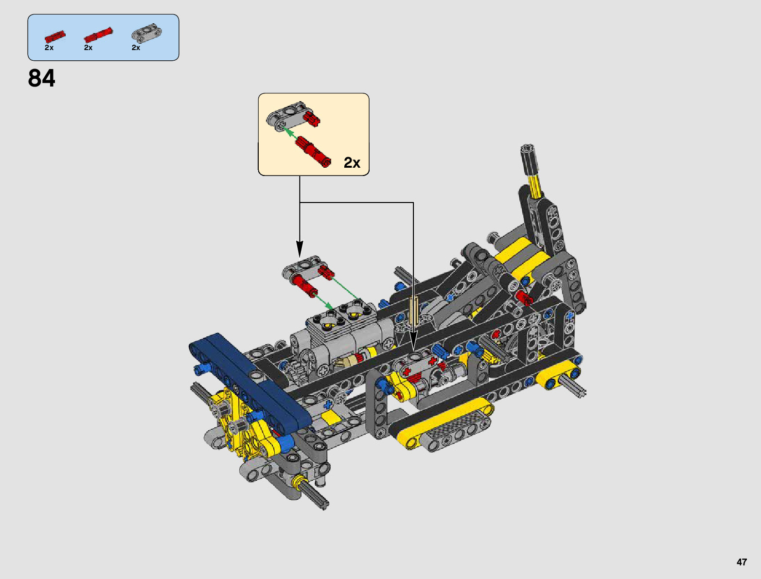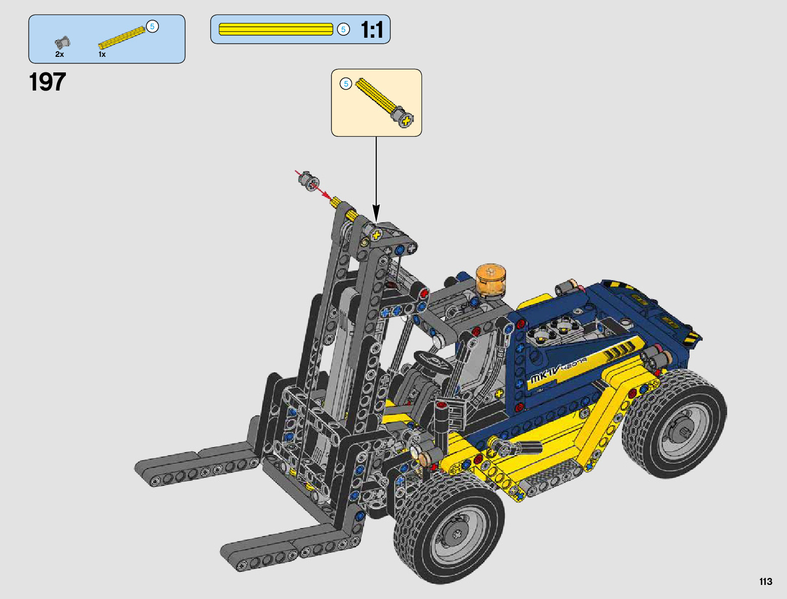 On this page you can find the original construction manual for the LEGO 42079 set. With the assembly manual you can easily learn how to build the 42079 Heavy Duty Forklift step by step. The set was released in 2018.
