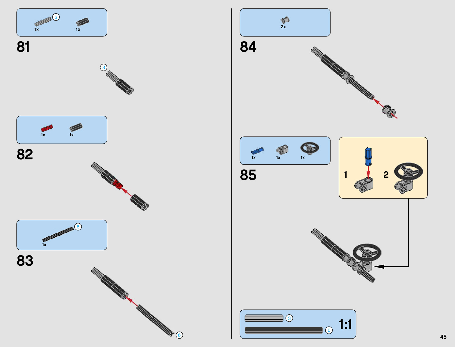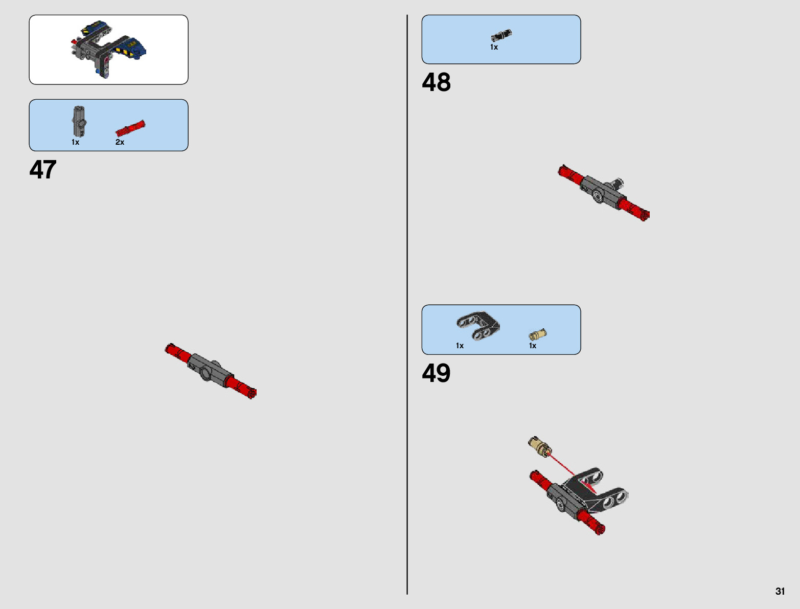 The assembly guide is prepared in a very understandable way for children and adult LEGO enthusiasts. A total of 232 picture galleries are shown, explaining the step-by-step construction stages for 2 different structures.