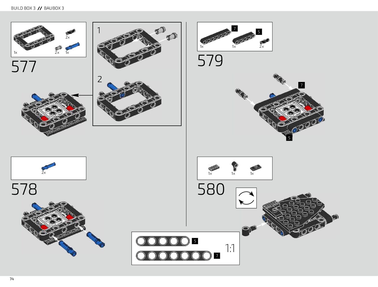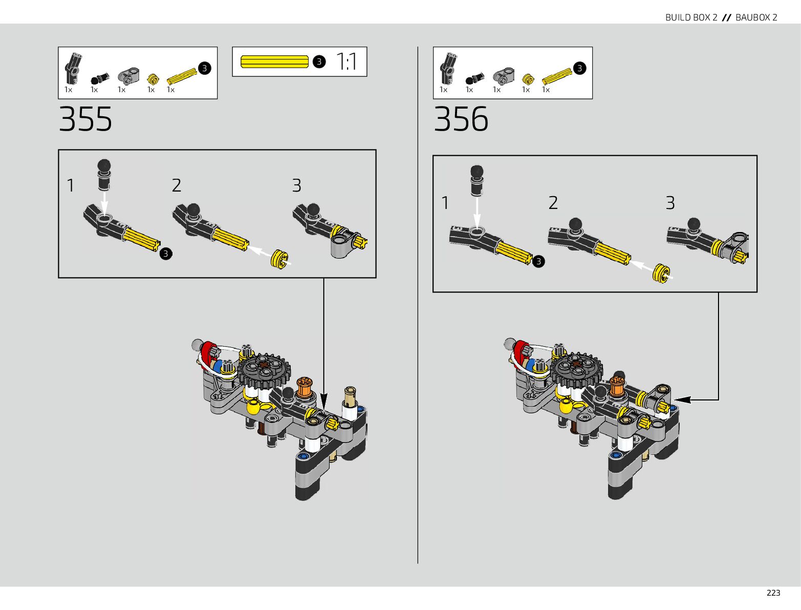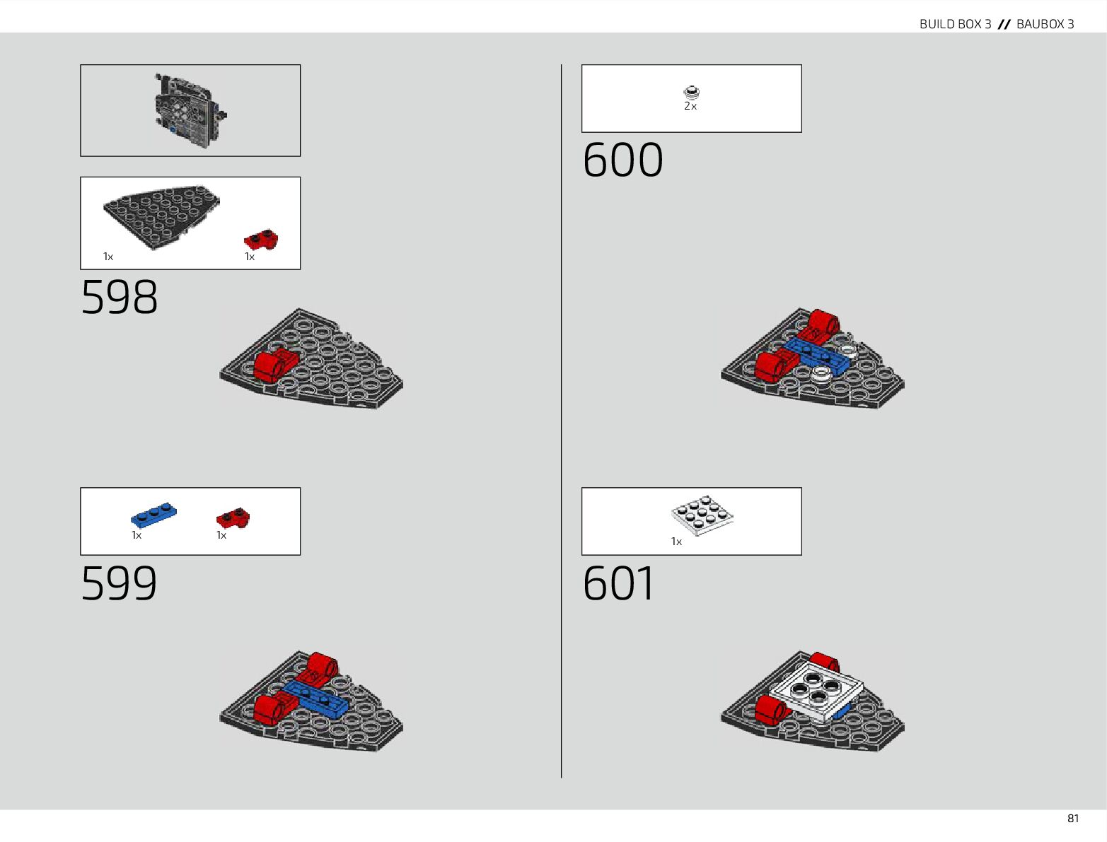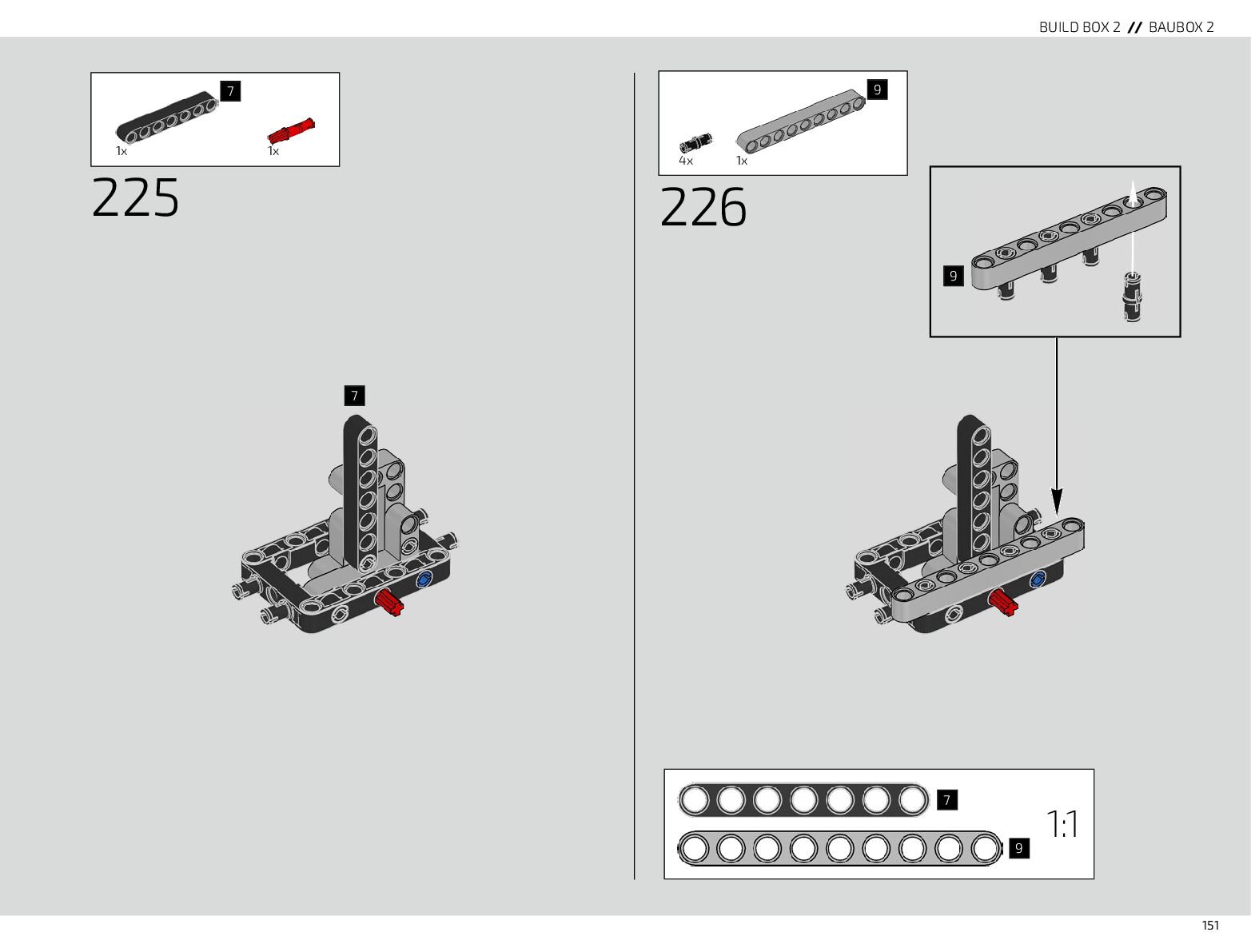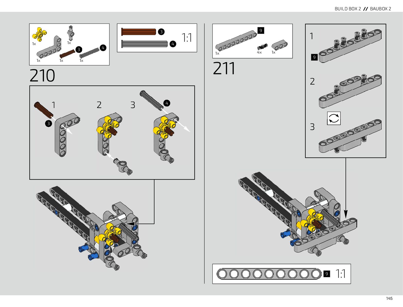 The assembly guide is prepared in a very understandable way for children and adult LEGO enthusiasts. A total of 630 picture galleries are shown, explaining the step-by-step construction stages for 2 different structures.