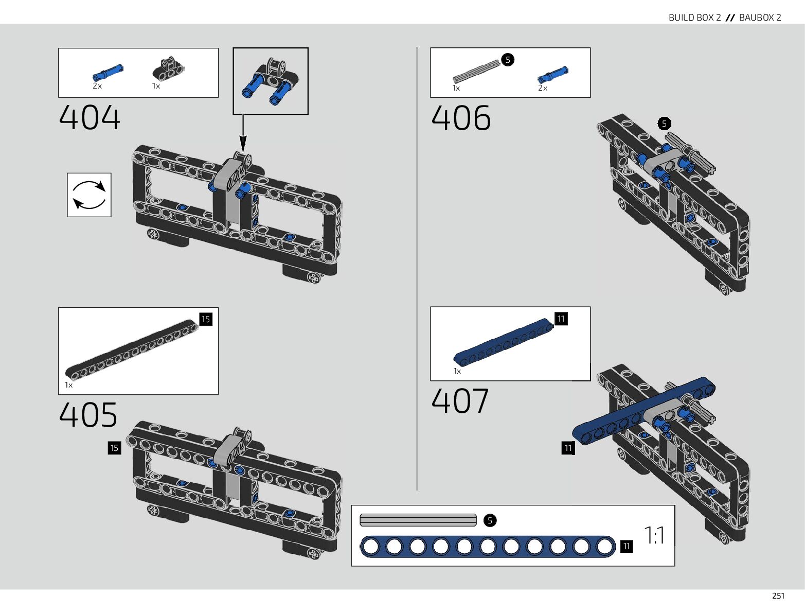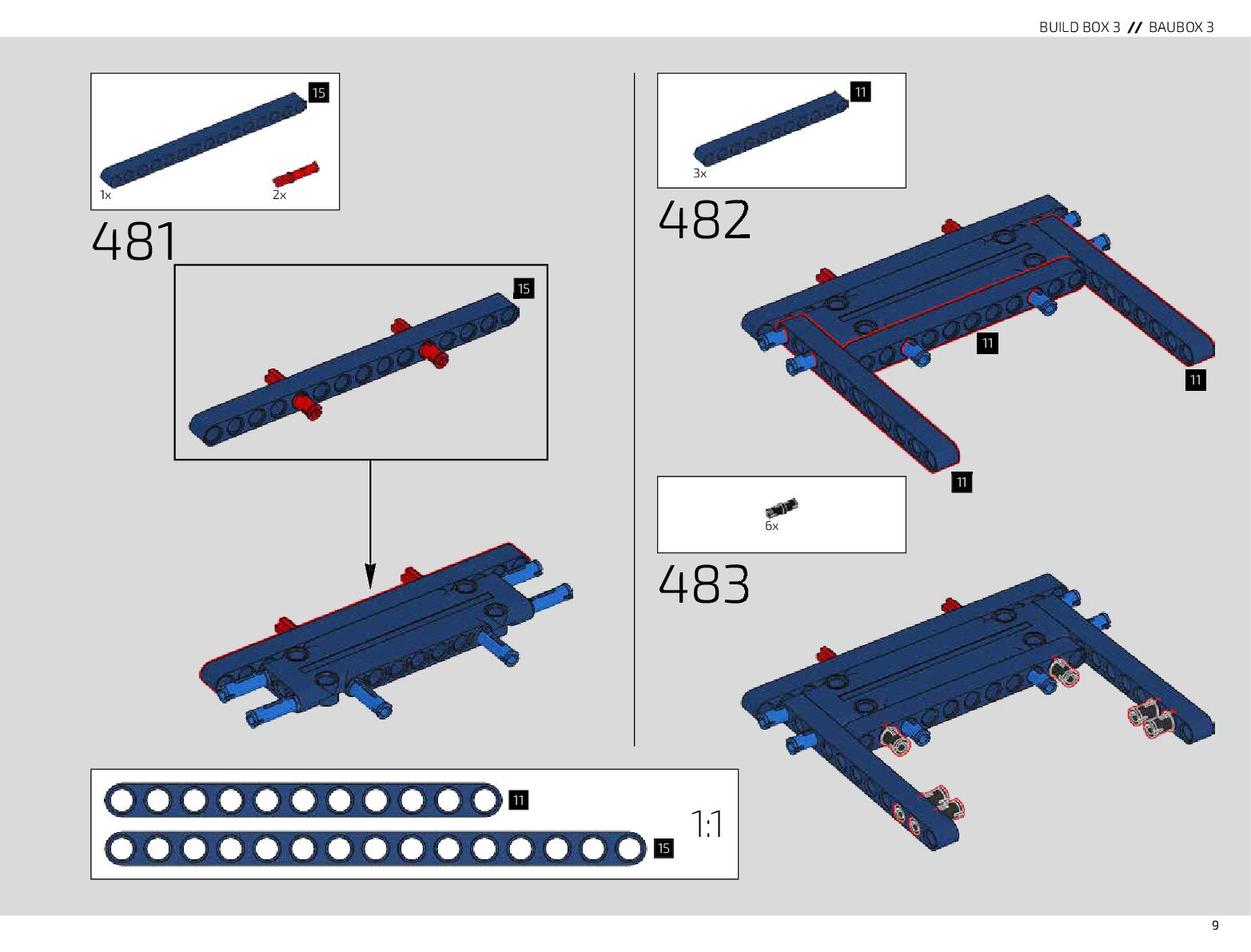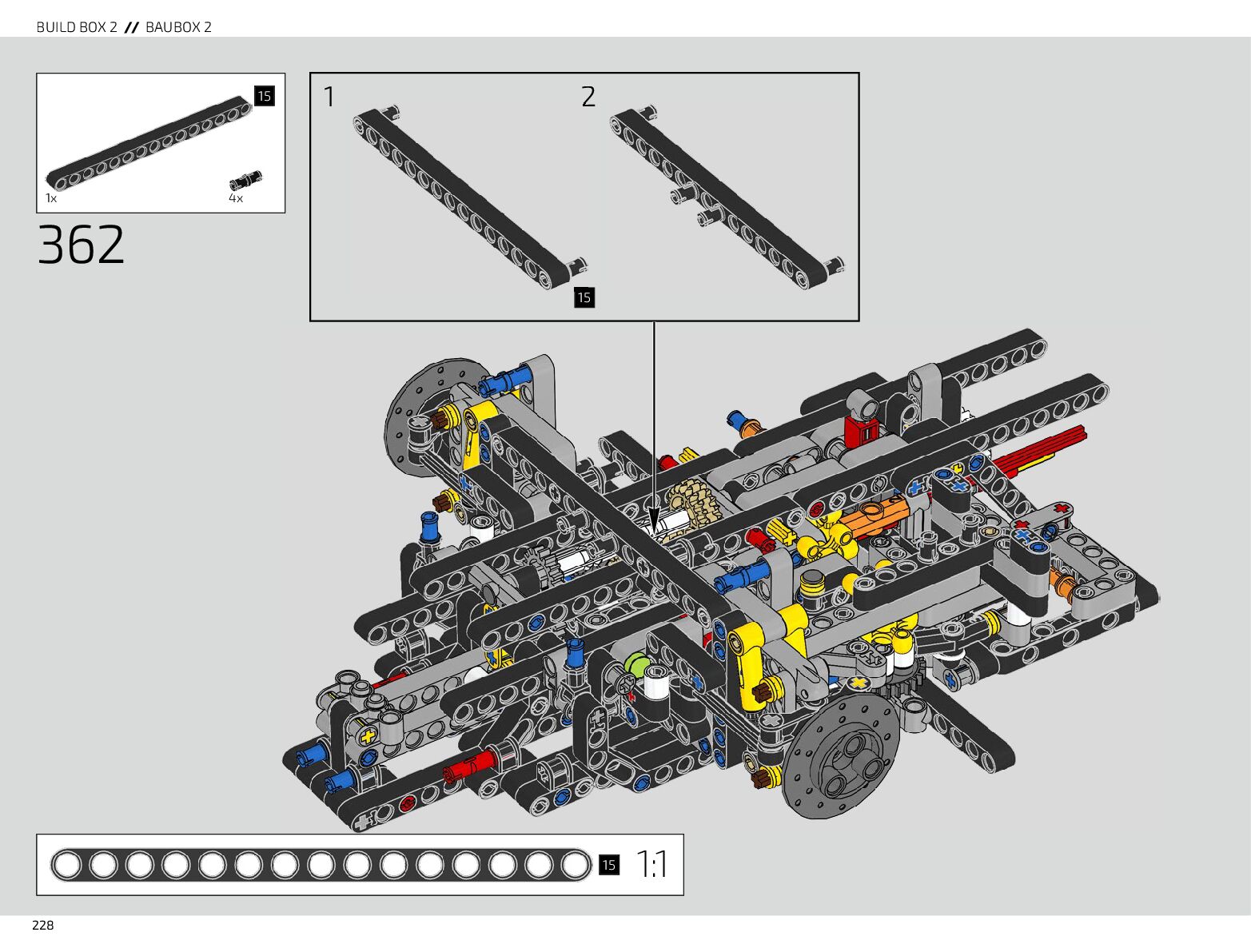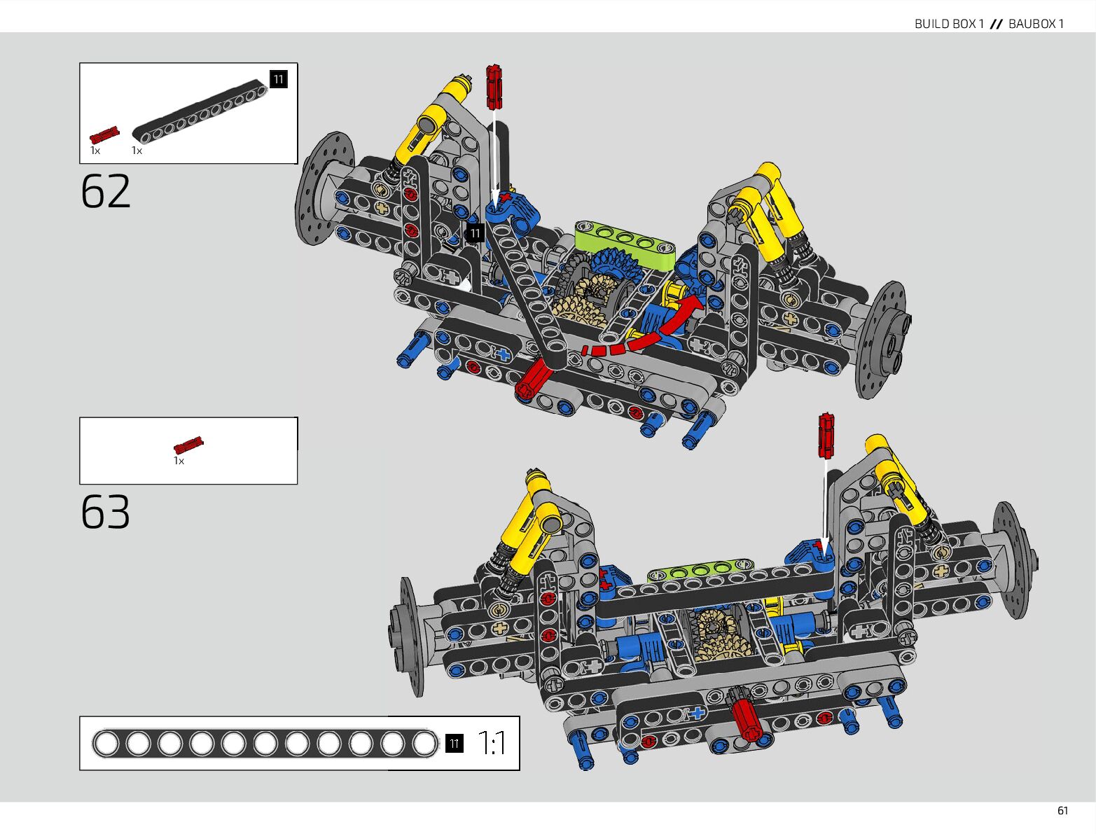 The assembly guide is prepared in a very understandable way for children and adult LEGO enthusiasts. A total of 630 picture galleries are shown, explaining the step-by-step construction stages for 2 different structures.
