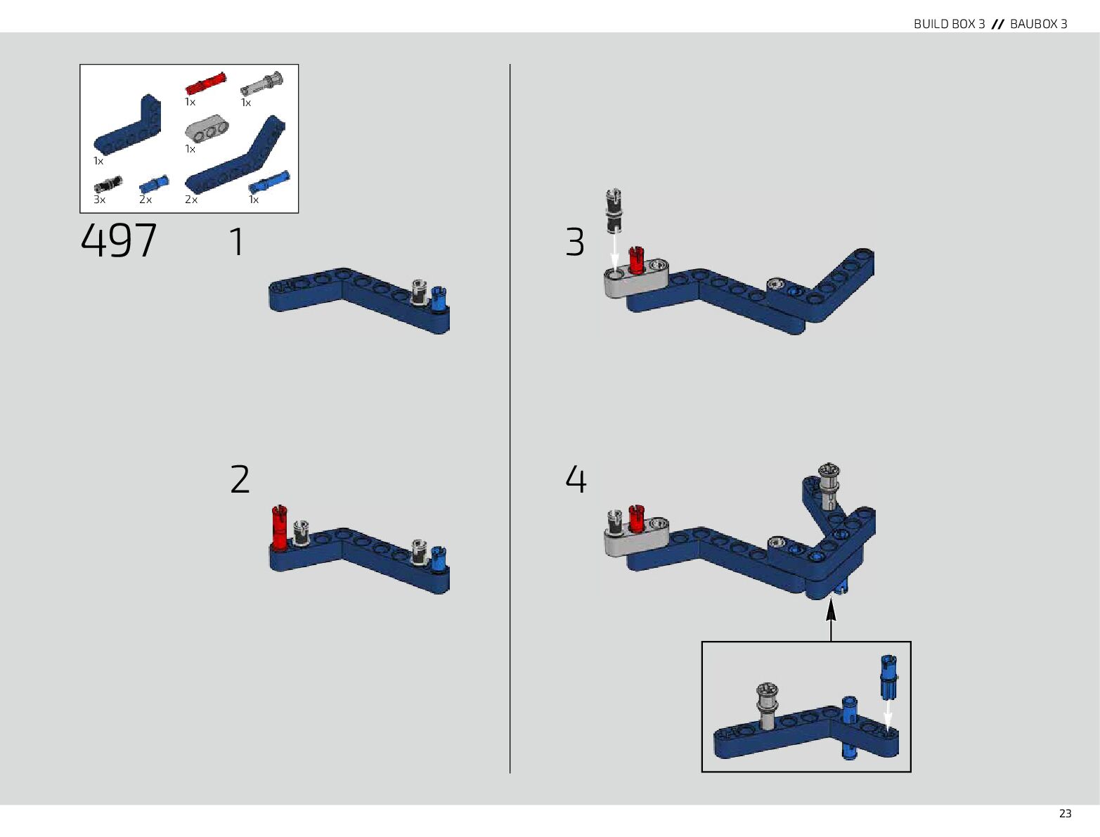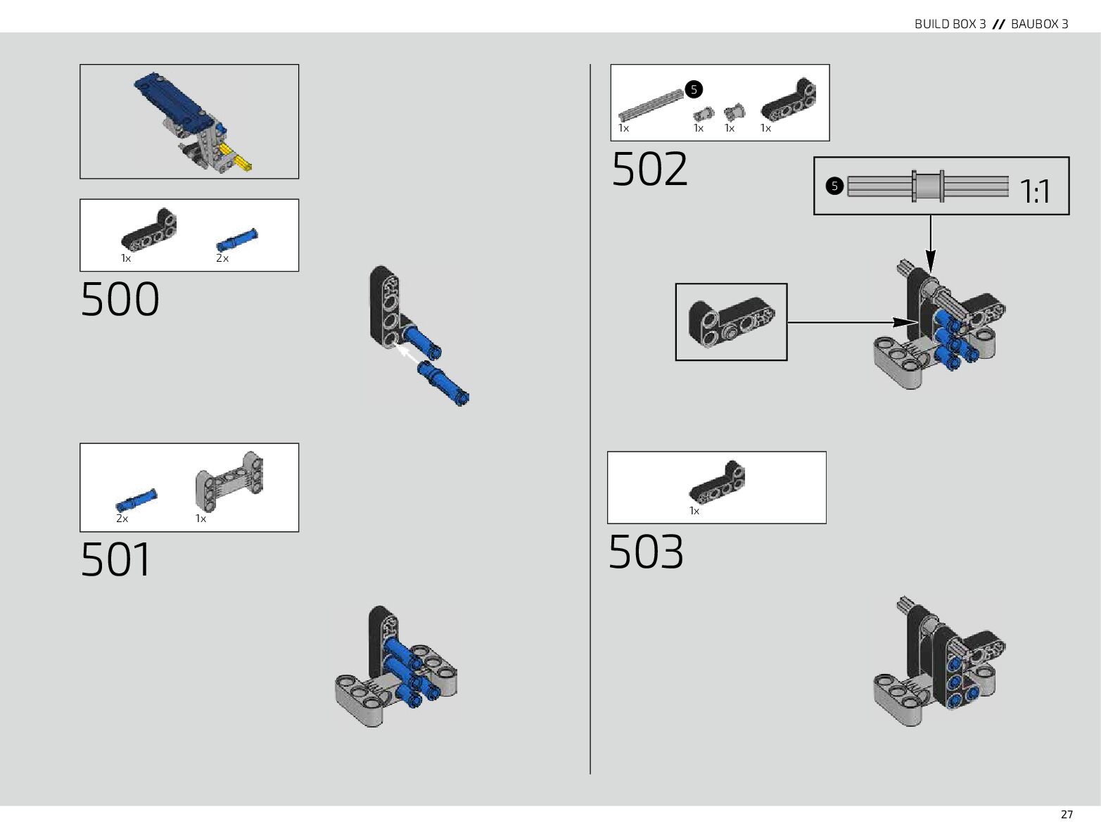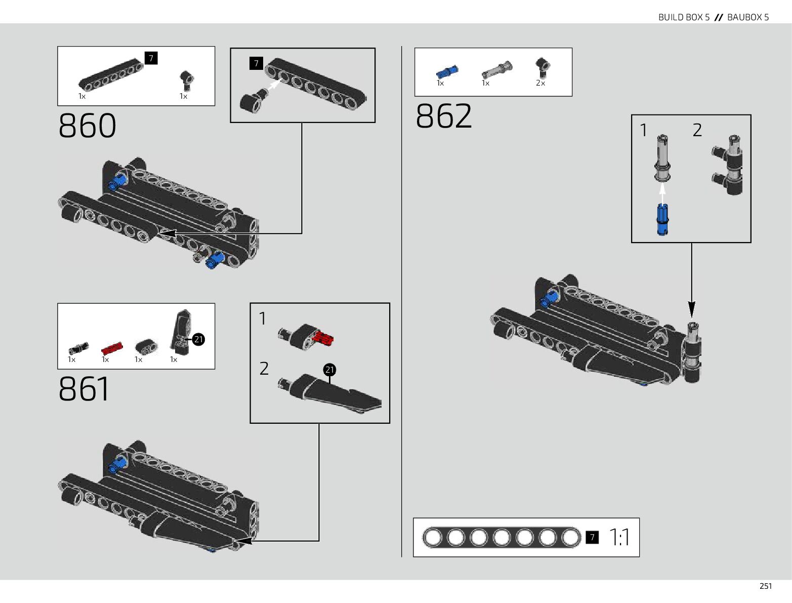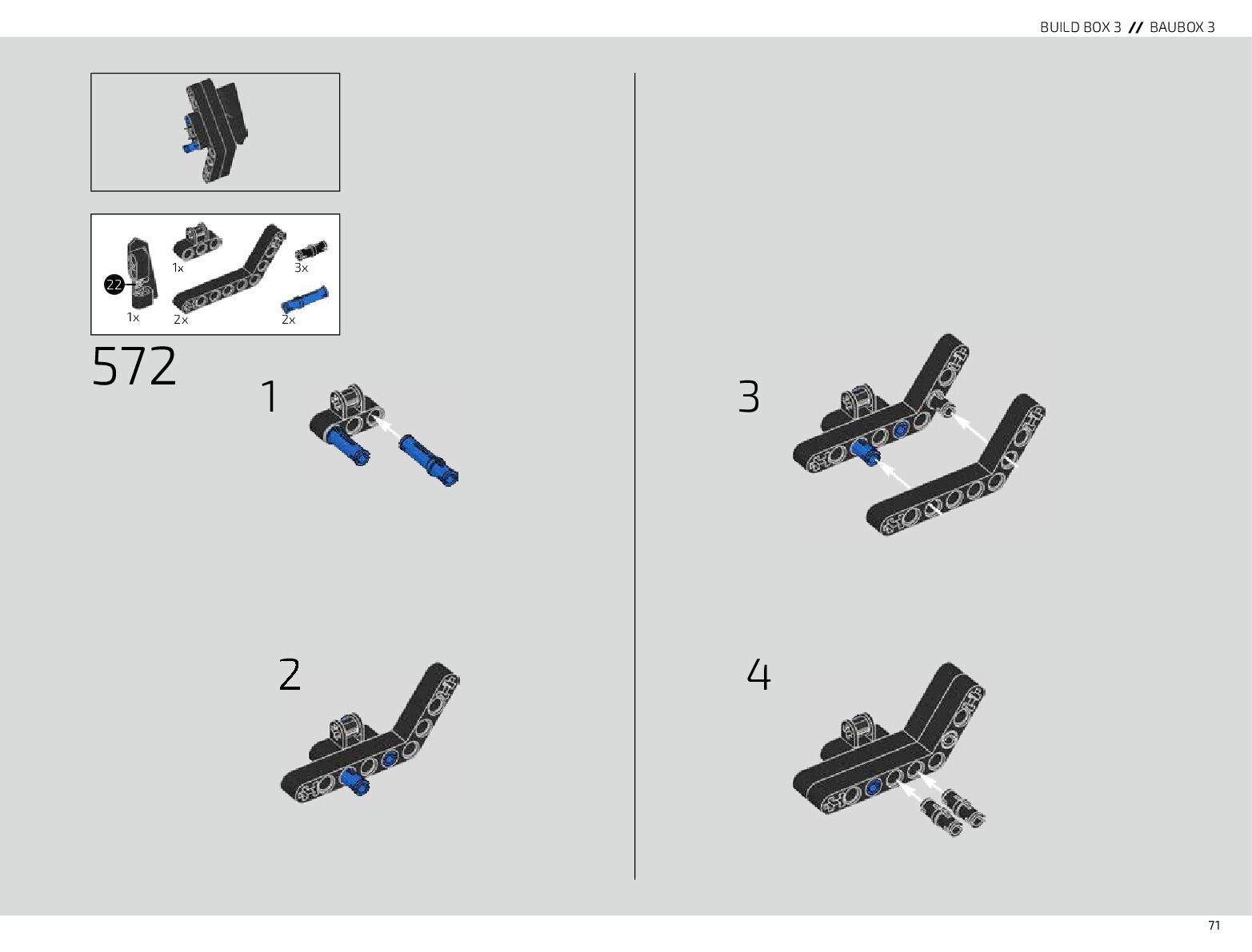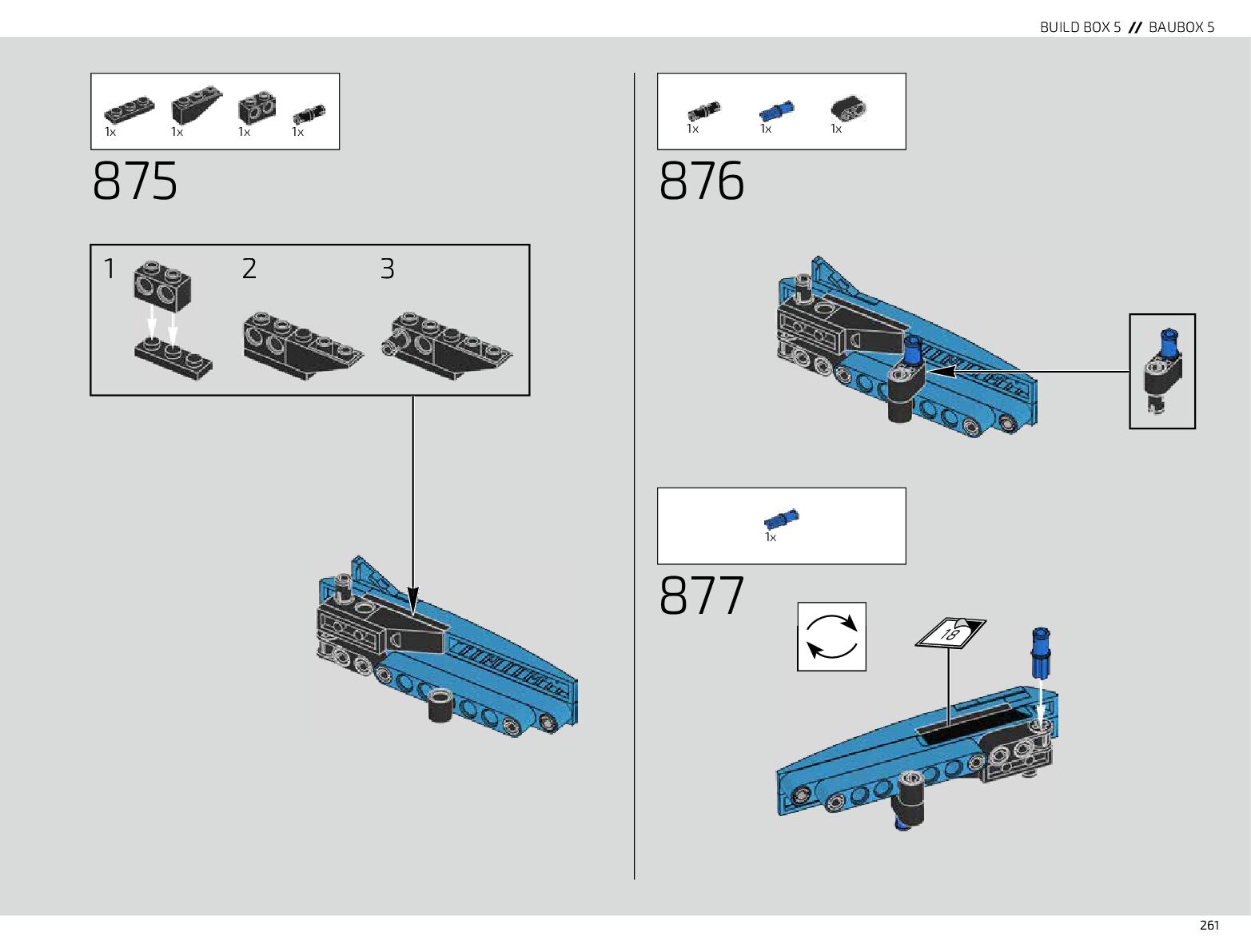 The assembly guide is prepared in a very understandable way for children and adult LEGO enthusiasts. A total of 630 picture galleries are shown, explaining the step-by-step construction stages for 2 different structures.