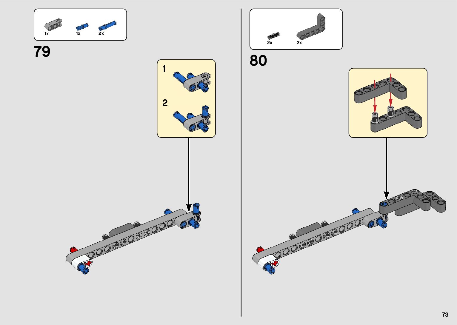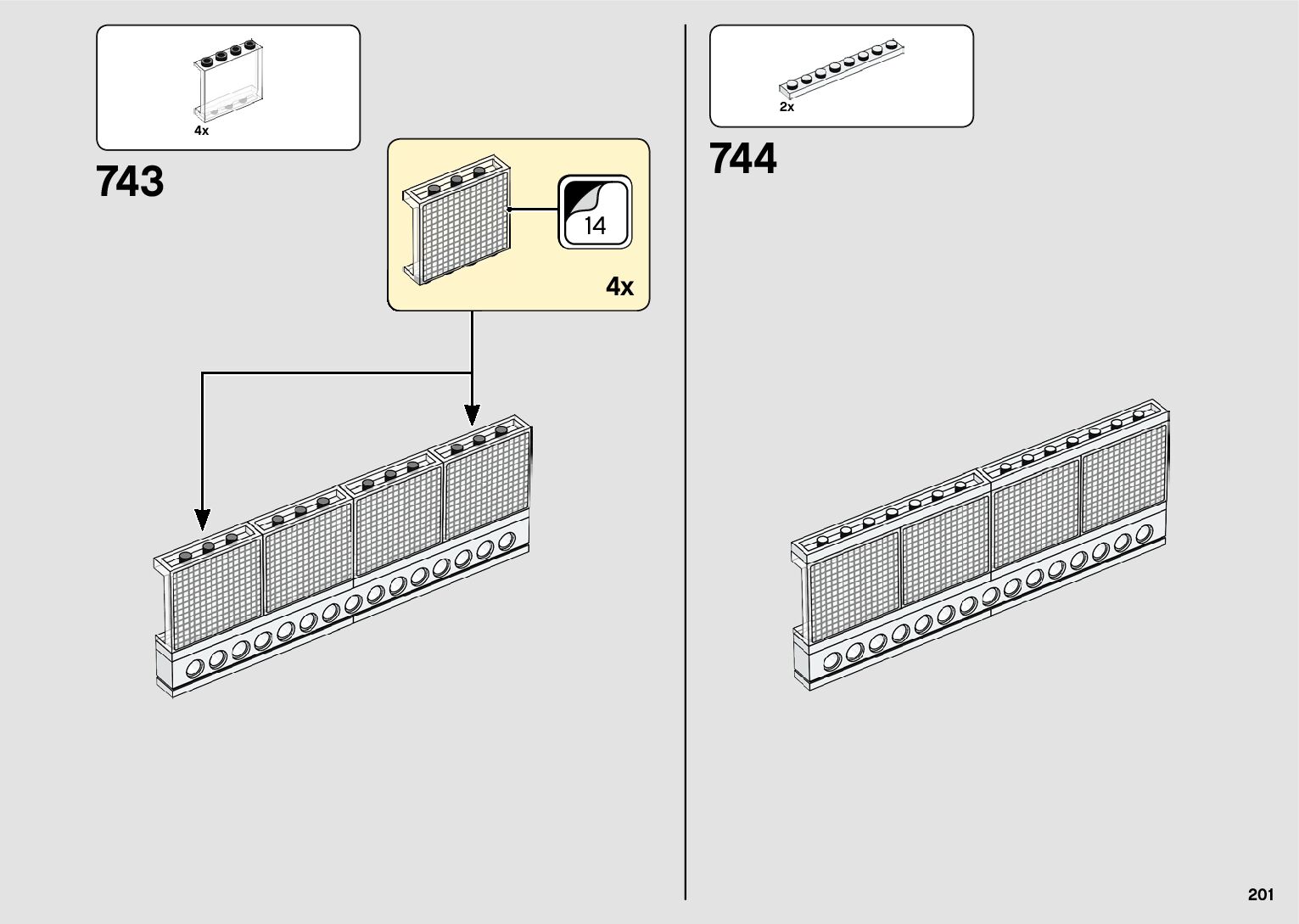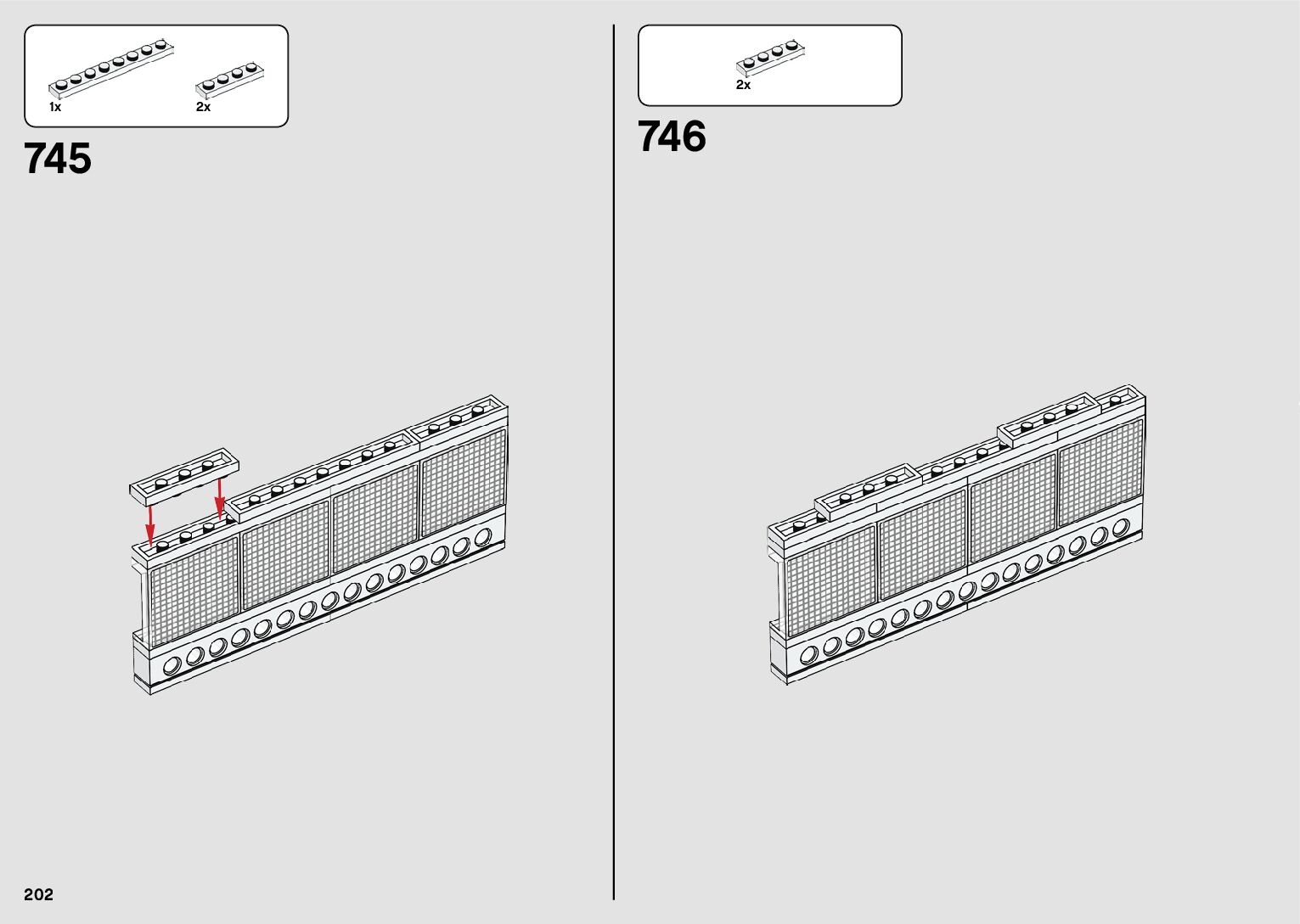 The assembly guide is prepared in a very understandable way for children and adult LEGO enthusiasts. A total of 740 picture galleries are shown, explaining the step-by-step construction stages for 2 different structures.