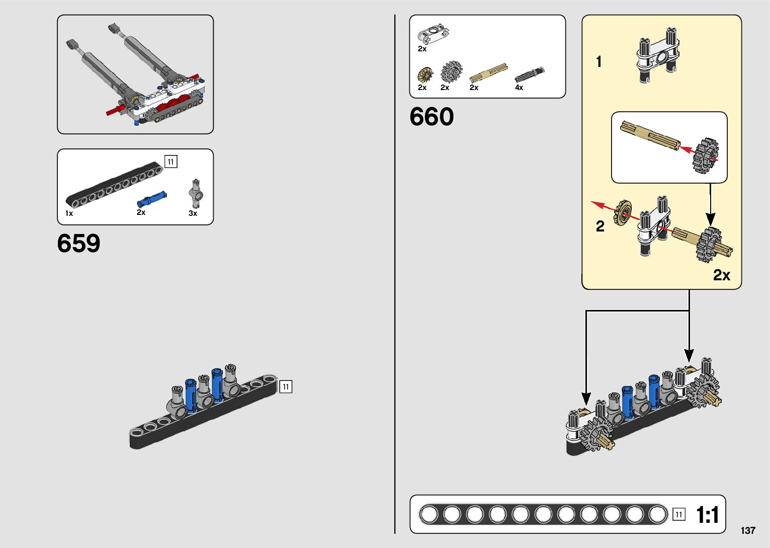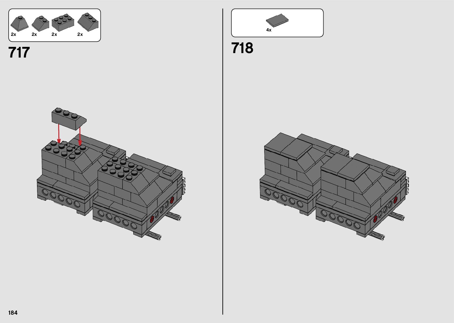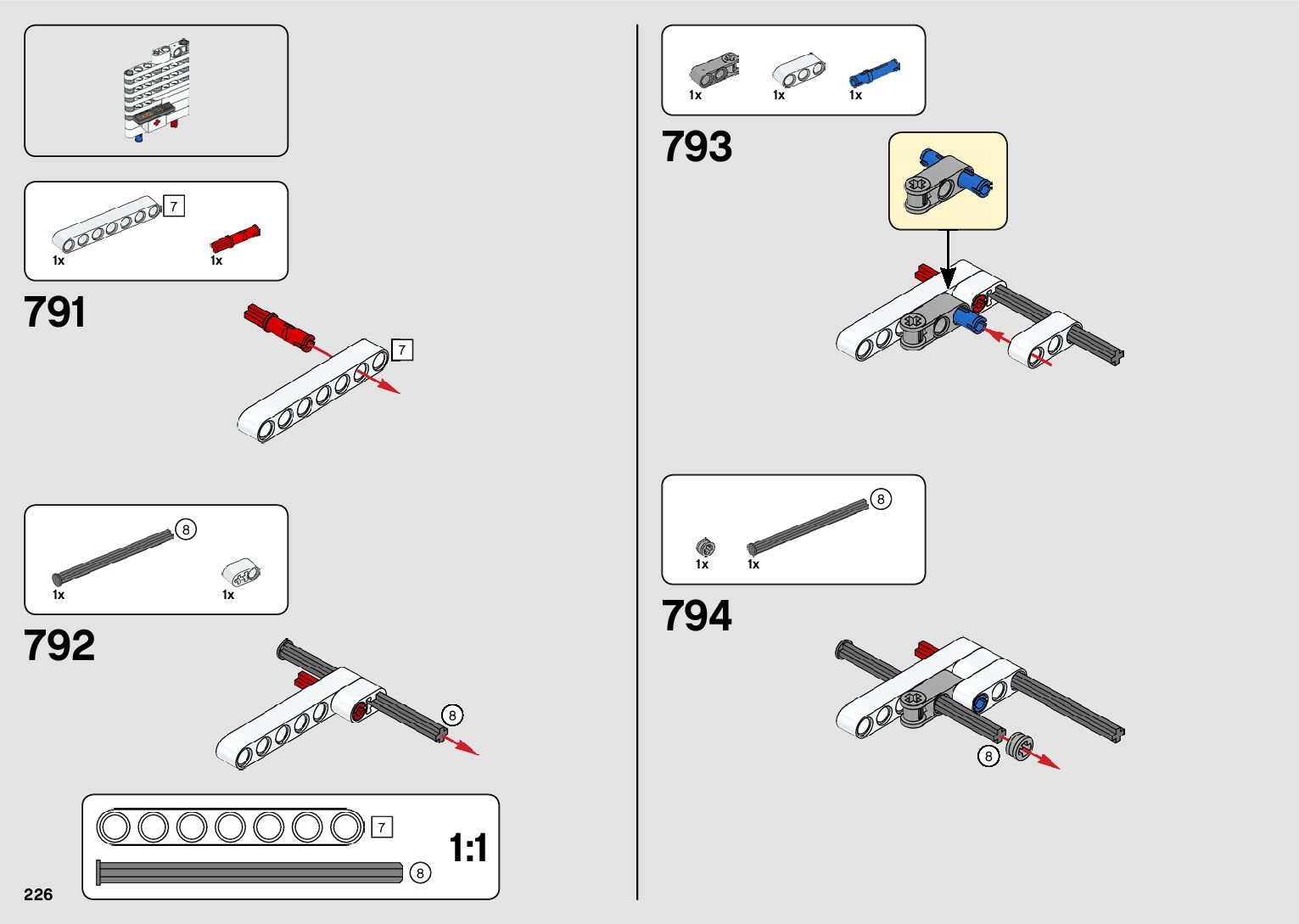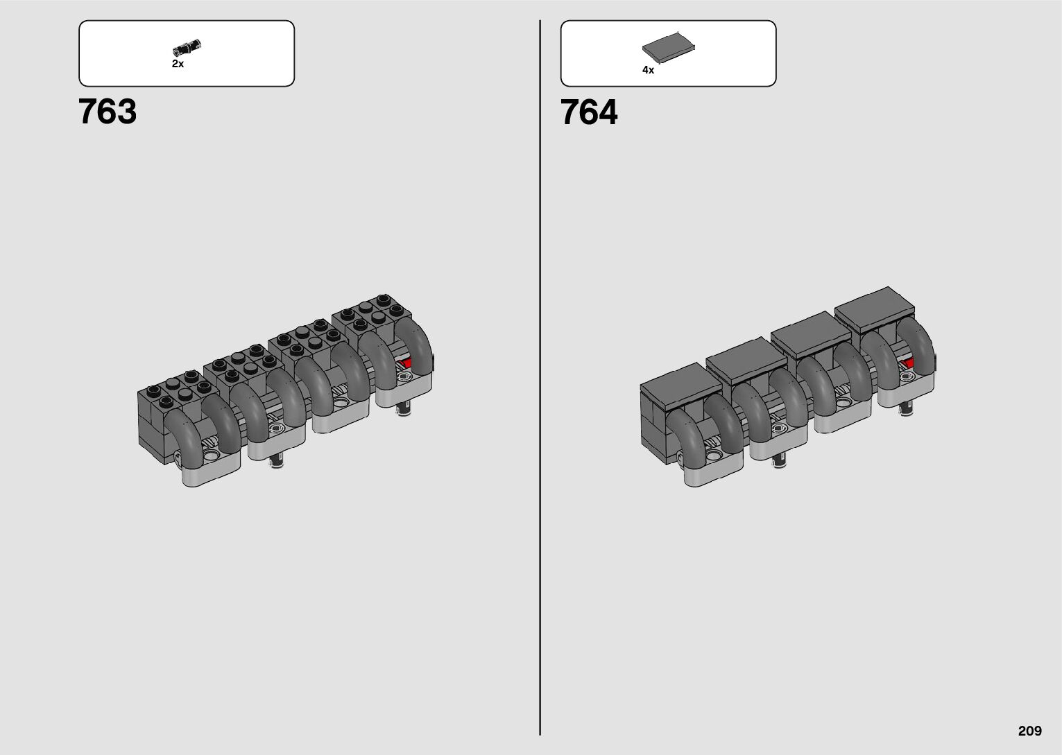 The assembly guide is prepared in a very understandable way for children and adult LEGO enthusiasts. A total of 740 picture galleries are shown, explaining the step-by-step construction stages for 2 different structures.