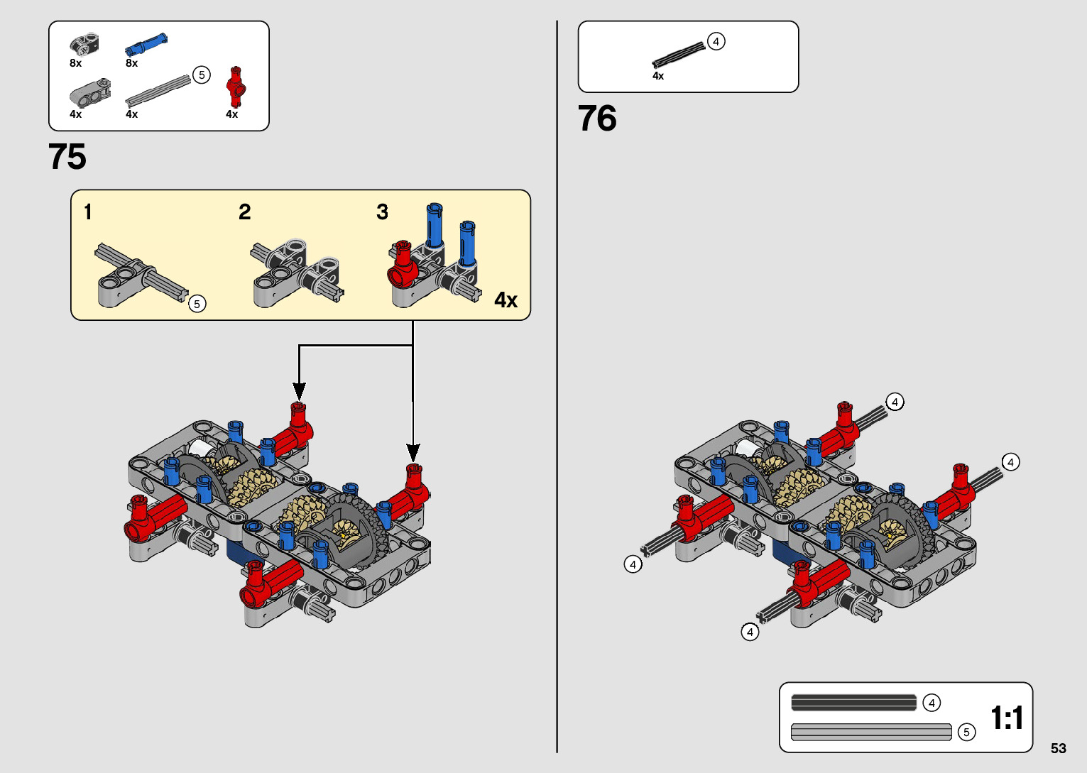 The assembly guide is prepared in a very understandable way for children and adult LEGO enthusiasts. A total of 216 picture galleries are shown, explaining the step-by-step construction stages for 2 different structures.