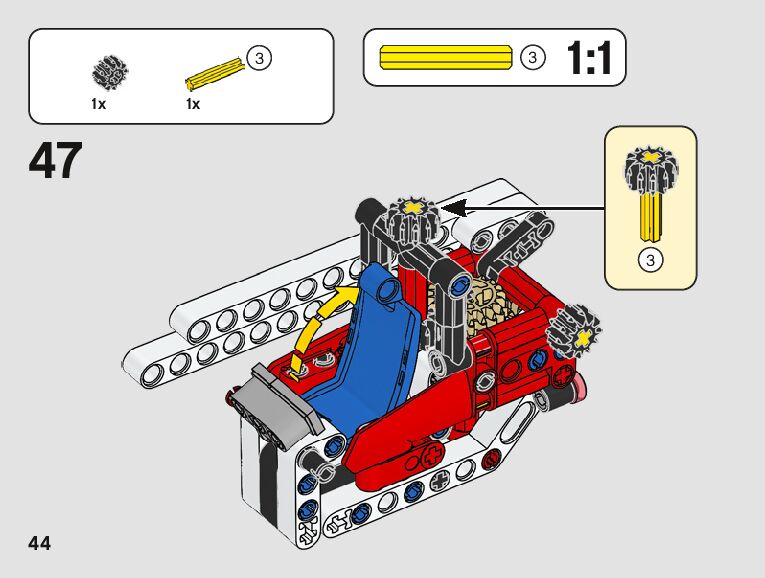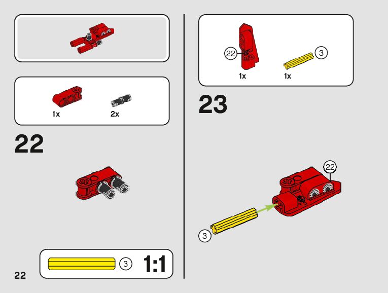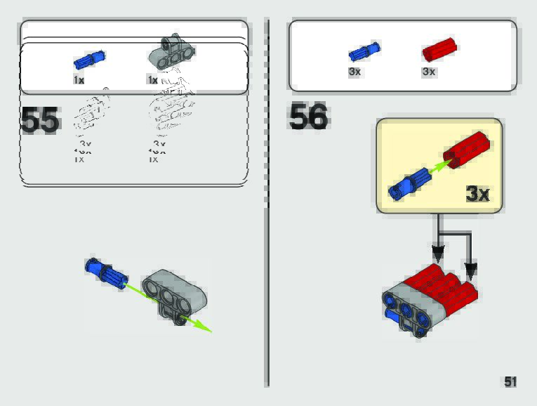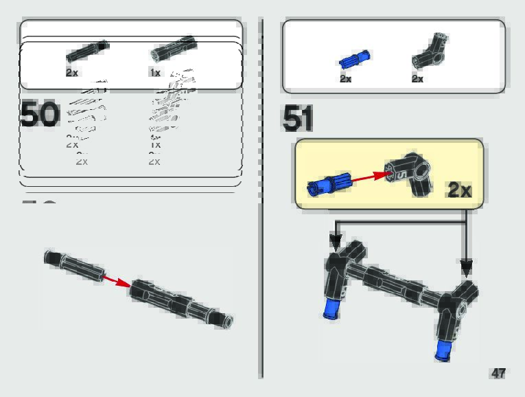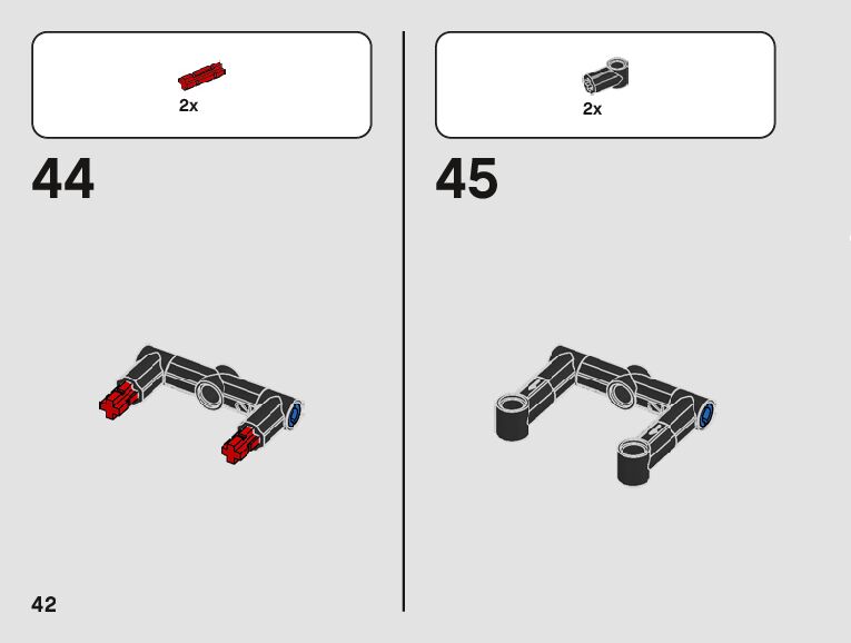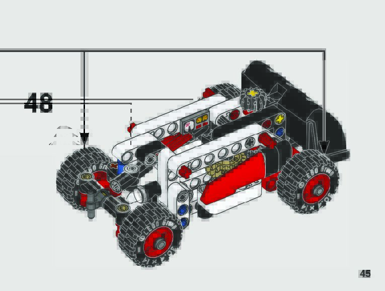 The assembly guide is prepared in a very understandable way for children and adult LEGO enthusiasts. A total of 123 picture galleries are shown, explaining the step-by-step construction stages for 2 different structures.