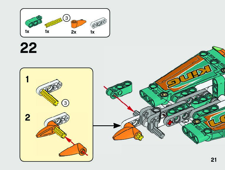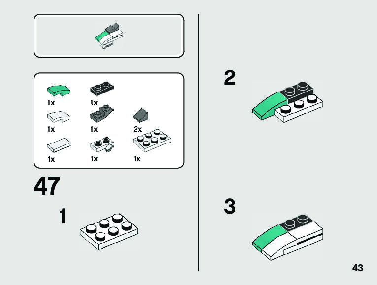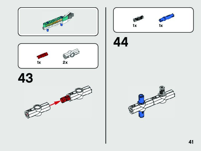 The assembly guide is prepared in a very understandable way for children and adult LEGO enthusiasts. A total of 119 picture galleries are shown, explaining the step-by-step construction stages for 2 different structures.