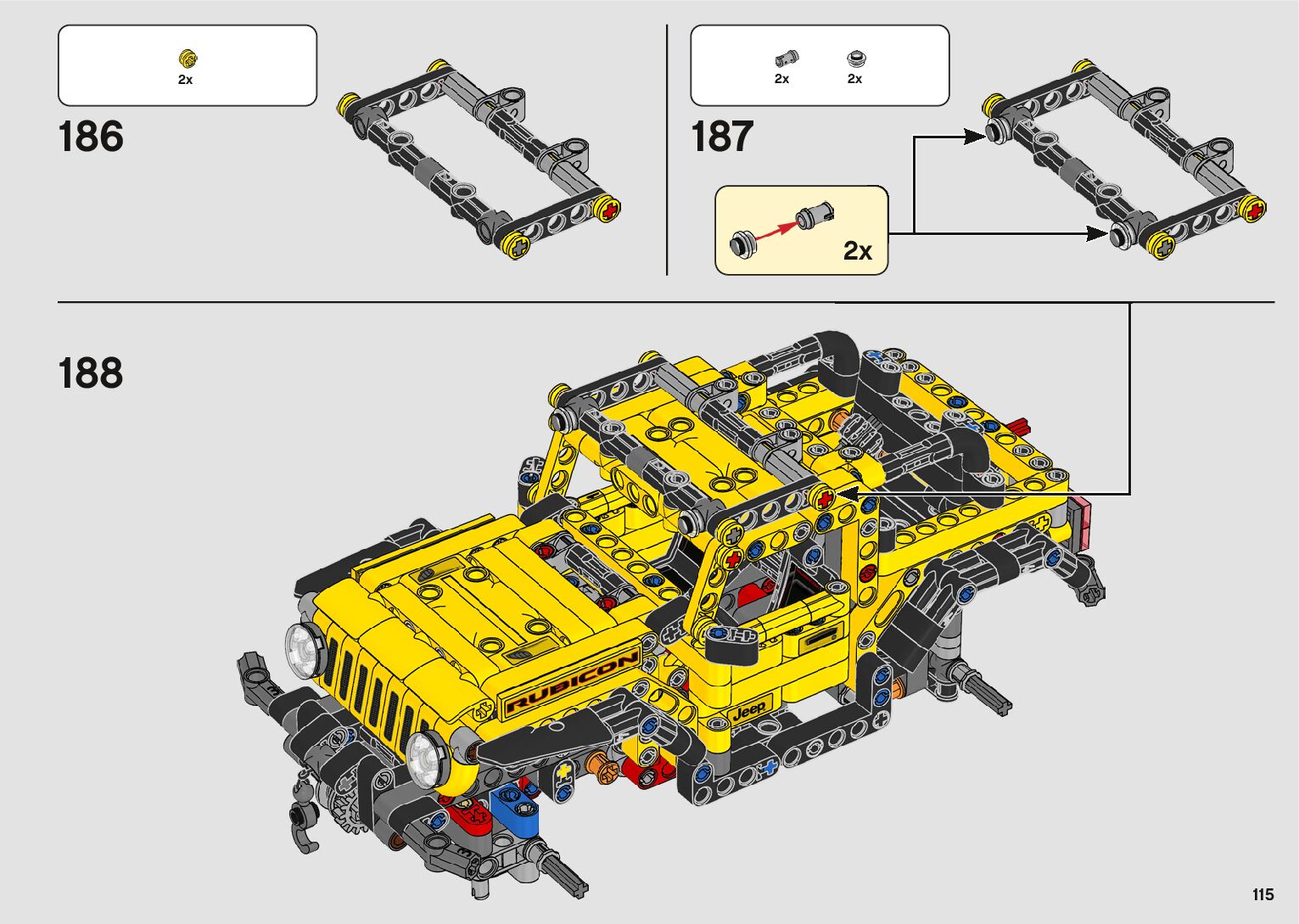 On this page you can find the original construction manual for the LEGO 42122 set. With the assembly manual you can easily learn how to build the 42122 Jeep® Wrangler step by step. The set was released in 2021.