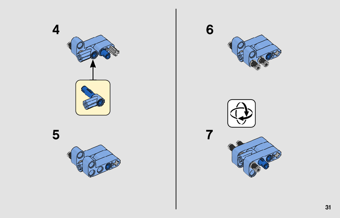 The assembly guide is prepared in a very understandable way for children and adult LEGO enthusiasts. A total of 174 picture galleries are shown, explaining the step-by-step construction stages for 2 different structures.