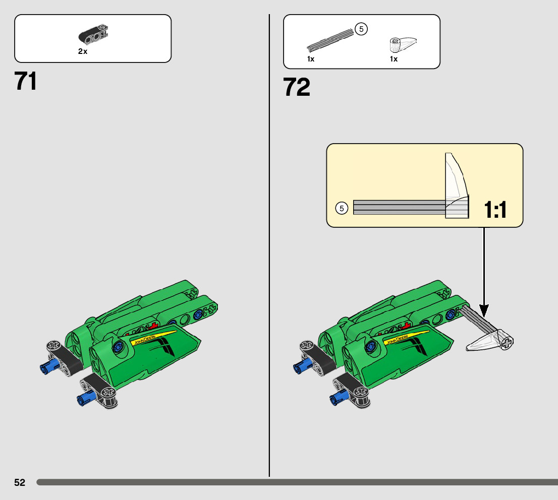 The assembly guide is prepared in a very understandable way for children and adult LEGO enthusiasts. A total of 140 picture galleries are shown, explaining the step-by-step construction stages for 2 different structures.