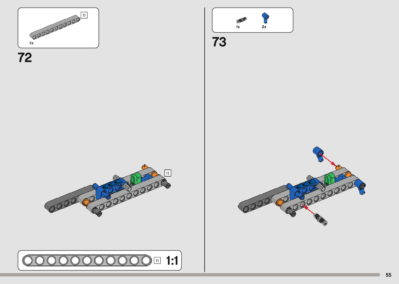 The assembly guide is prepared in a very understandable way for children and adult LEGO enthusiasts. A total of 140 picture galleries are shown, explaining the step-by-step construction stages for 1 different structures.