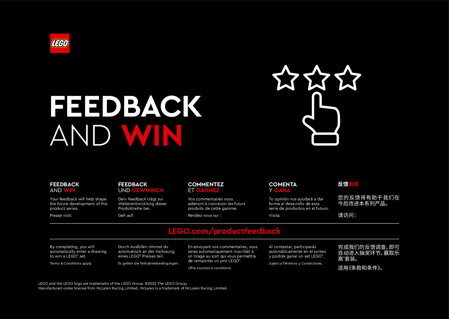 On this page you can find the original construction manual for the LEGO 42141 set. With the assembly manual you can easily learn how to build the 42141 McLaren Formula 1 Race Car step by step. The set was released in 2022.
