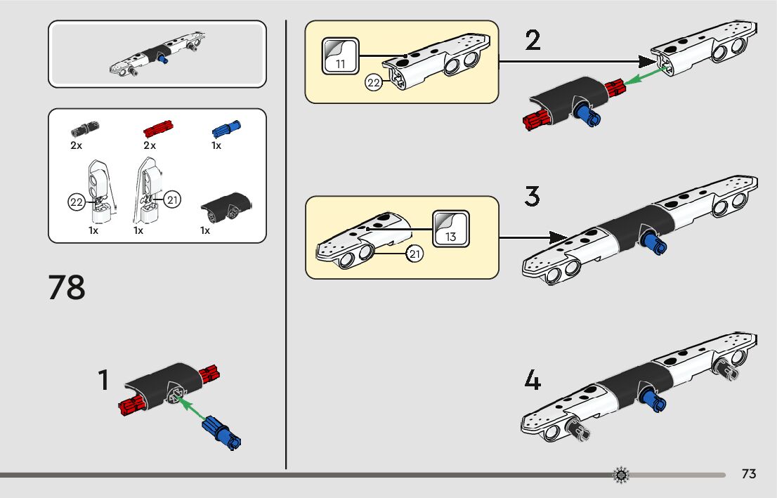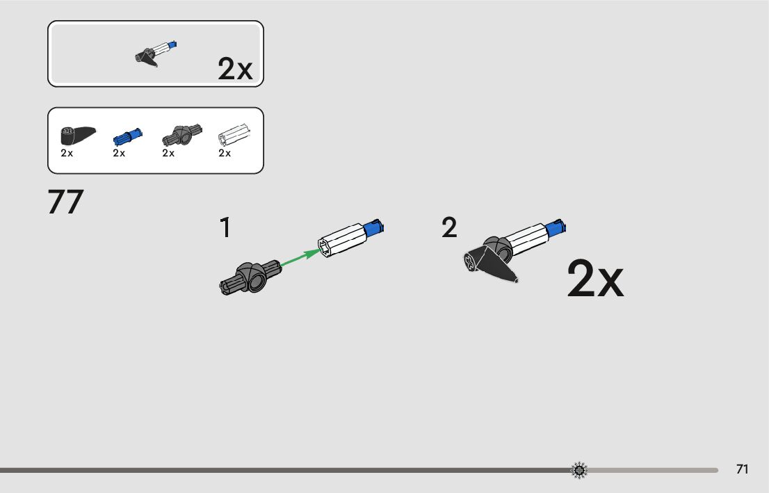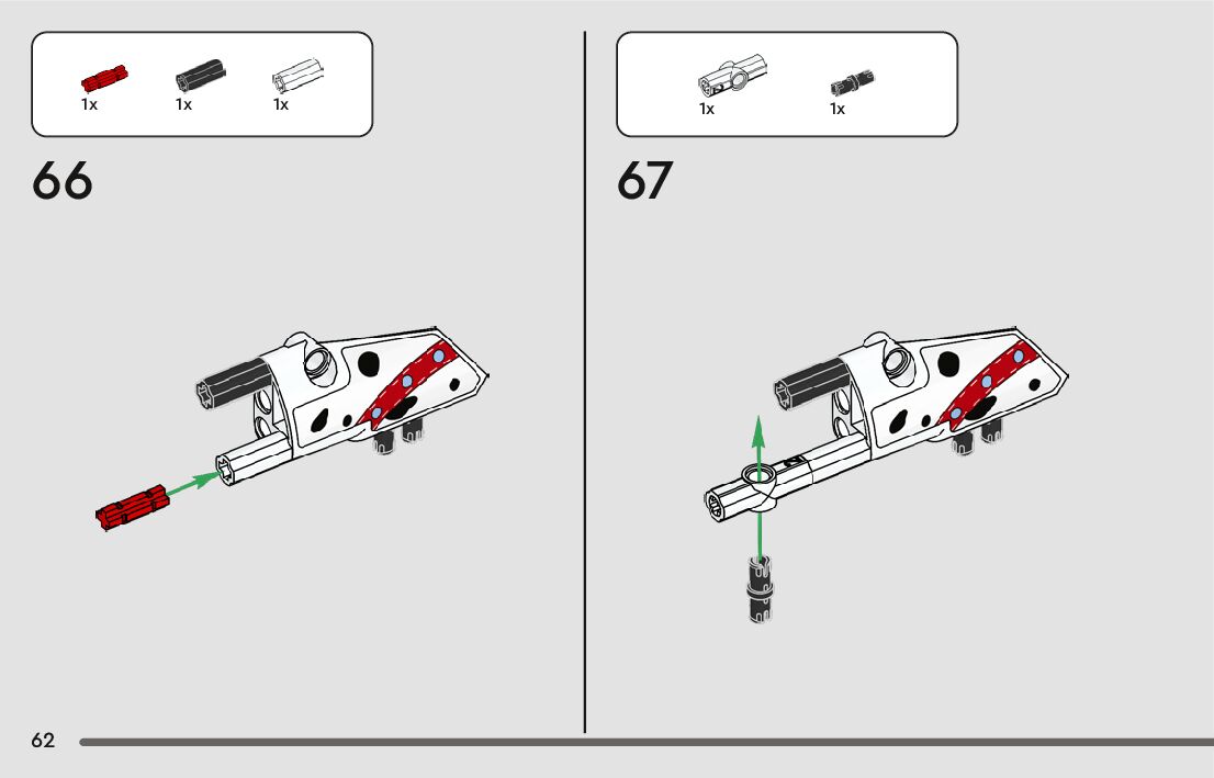 The assembly guide is prepared in a very understandable way for children and adult LEGO enthusiasts. A total of 156 picture galleries are shown, explaining the step-by-step construction stages for 2 different structures.