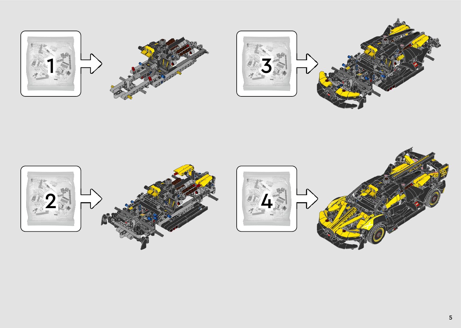On this page you can find the original construction manual for the LEGO 42151 set. With the assembly manual you can easily learn how to build the 42151 Bugatti Bolide step by step. The set was released in 2023.
