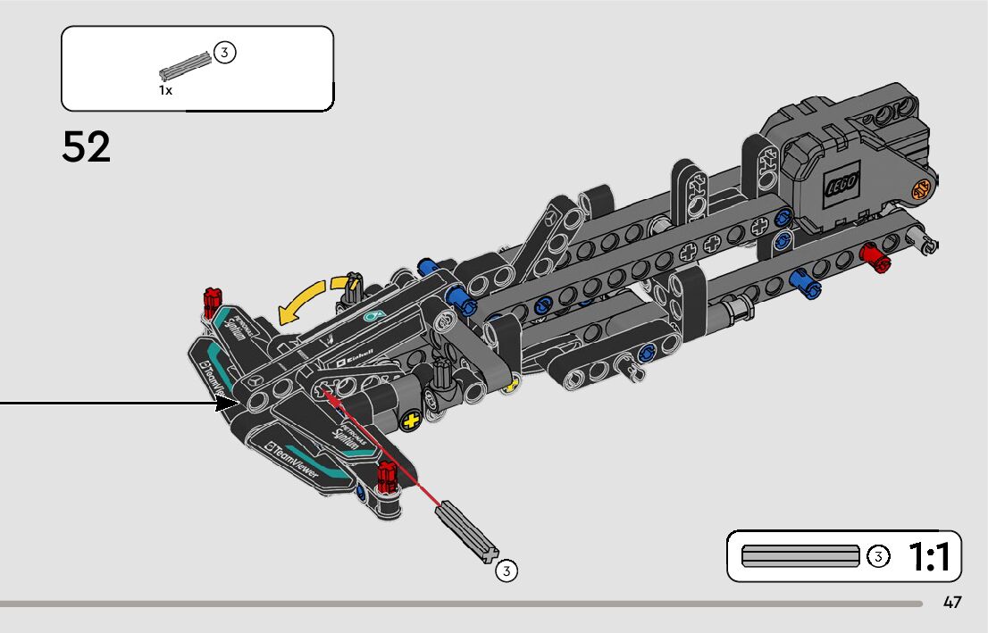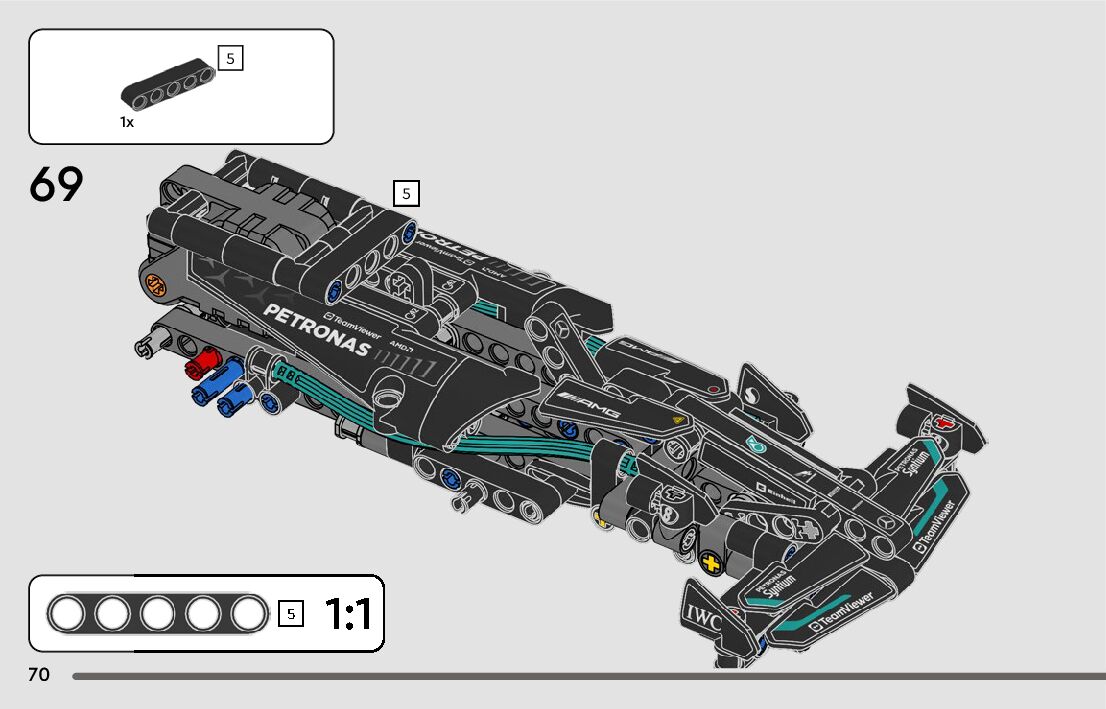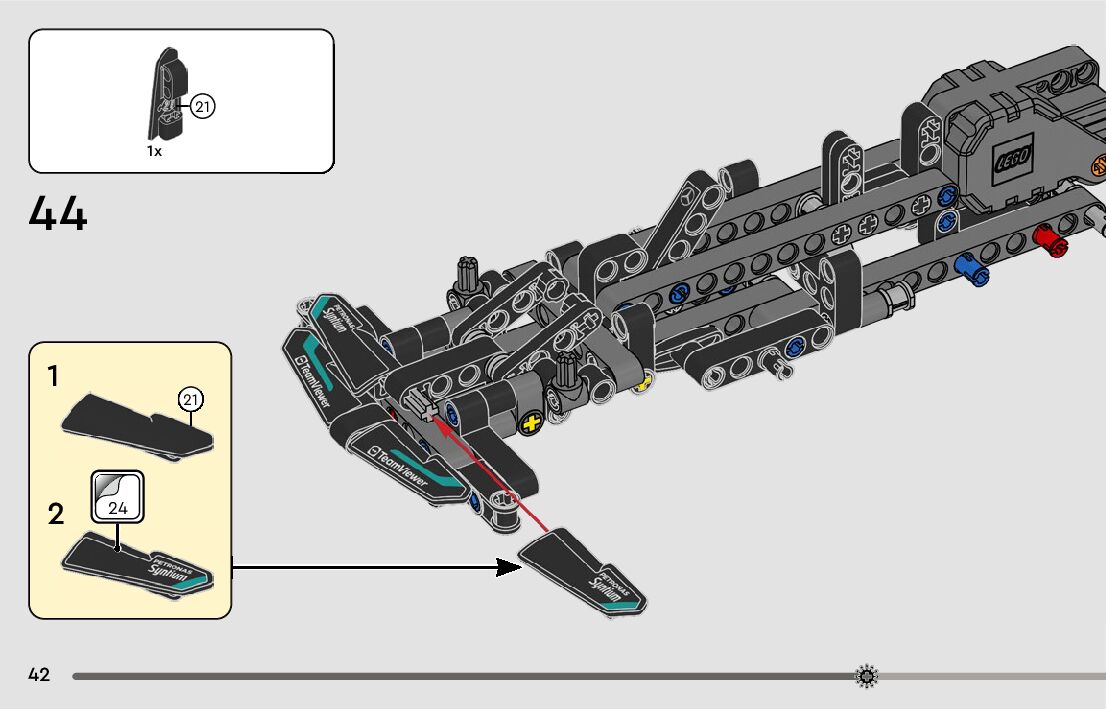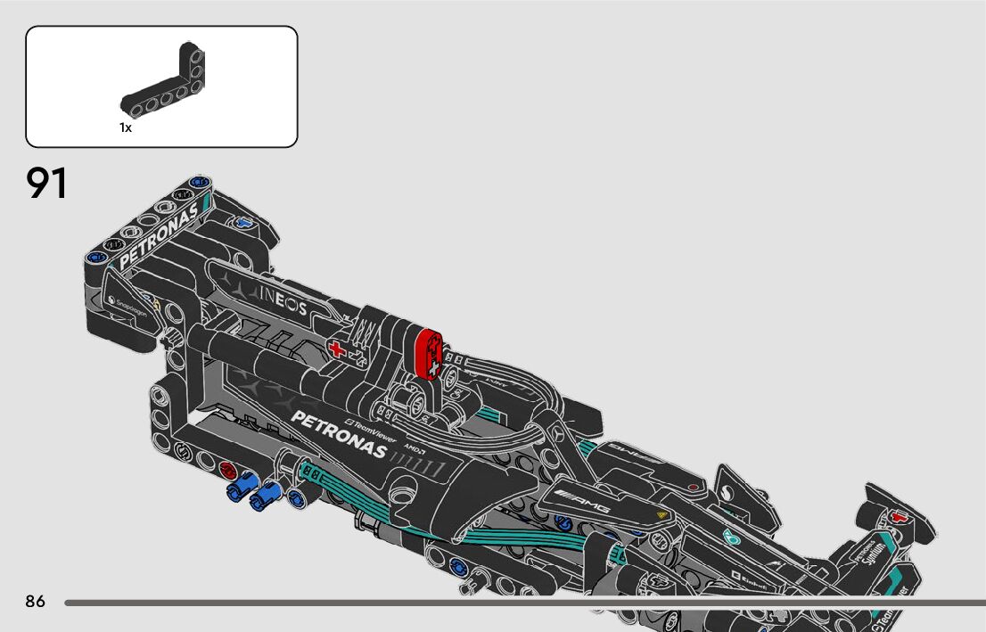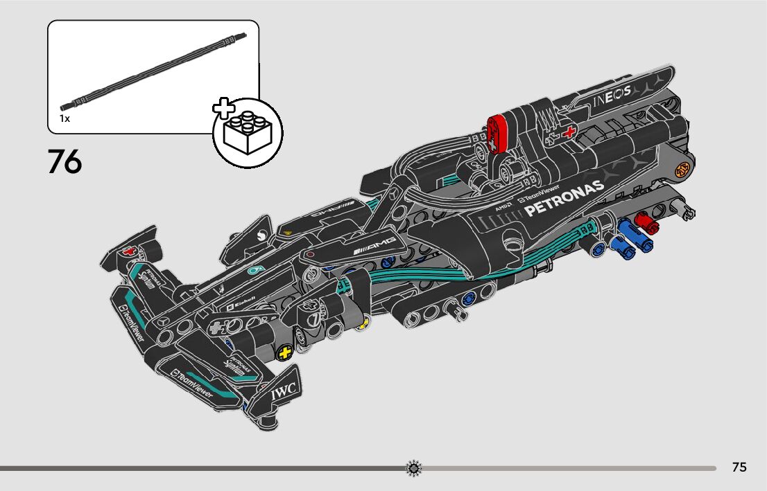 On this page you can find the original construction manual for the LEGO 42165 set. With the assembly manual you can easily learn how to build the 42165 Mercedes-AMG F1 W14 E Performance Pull-Back step by step. The set was released in 2024.