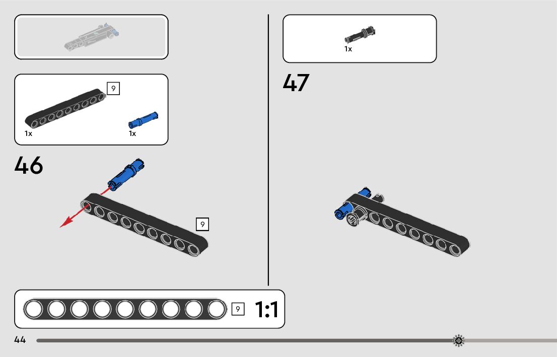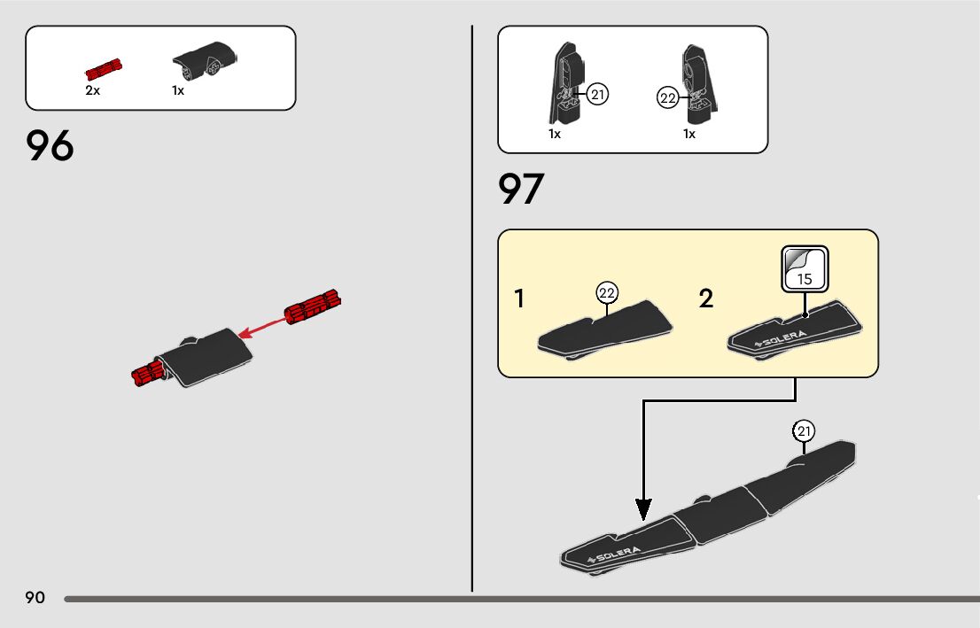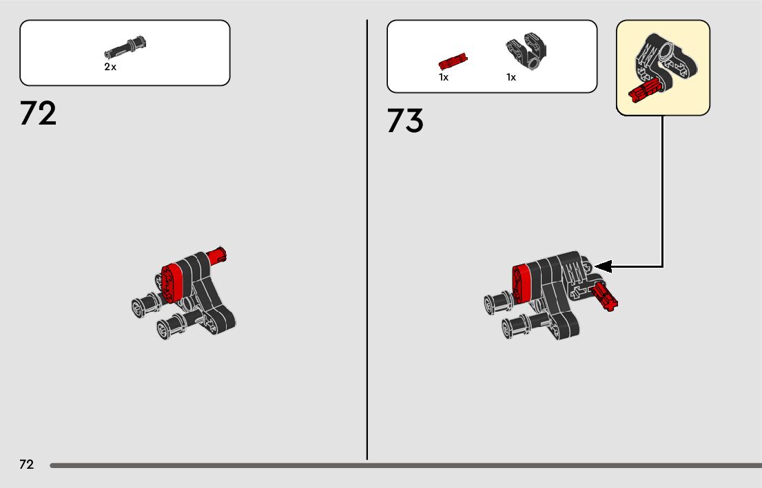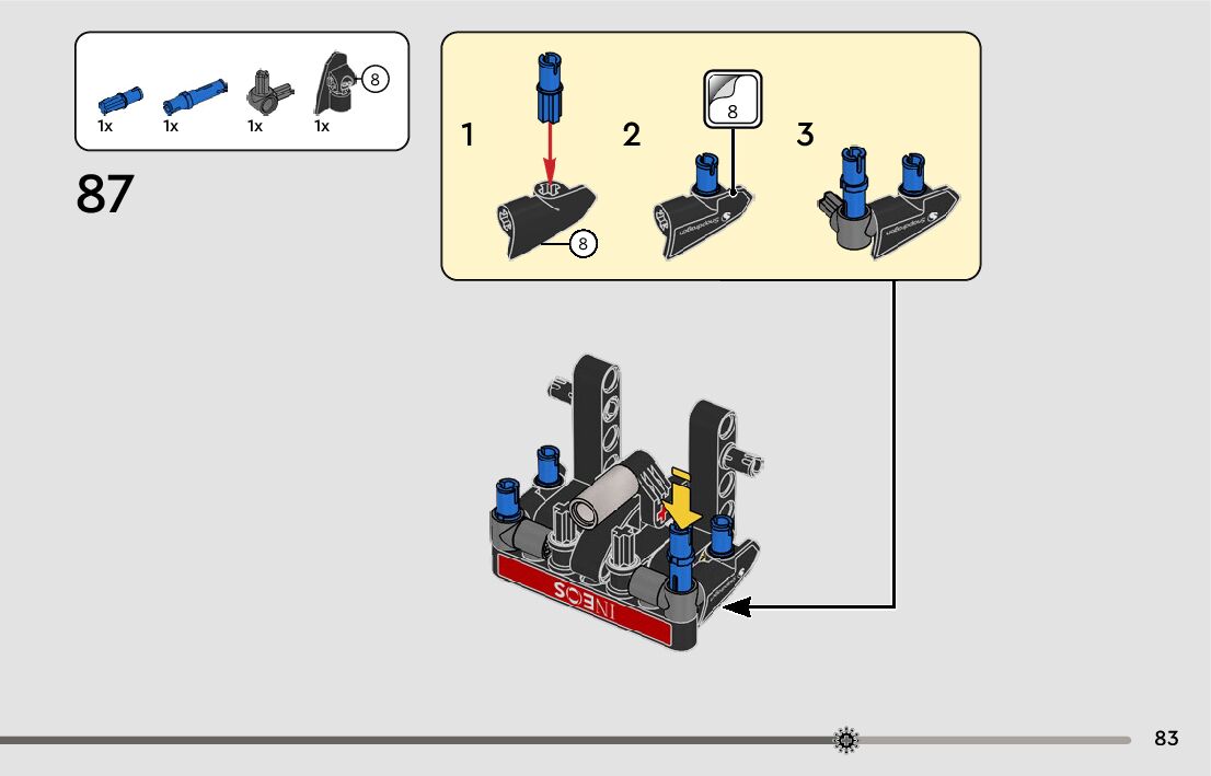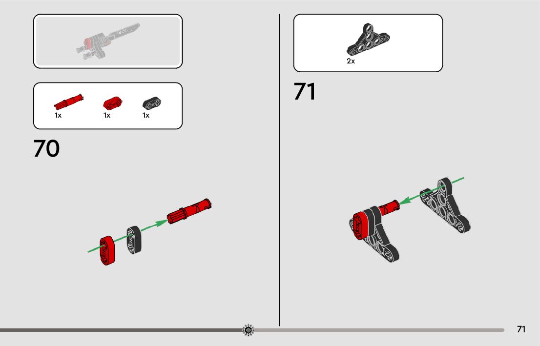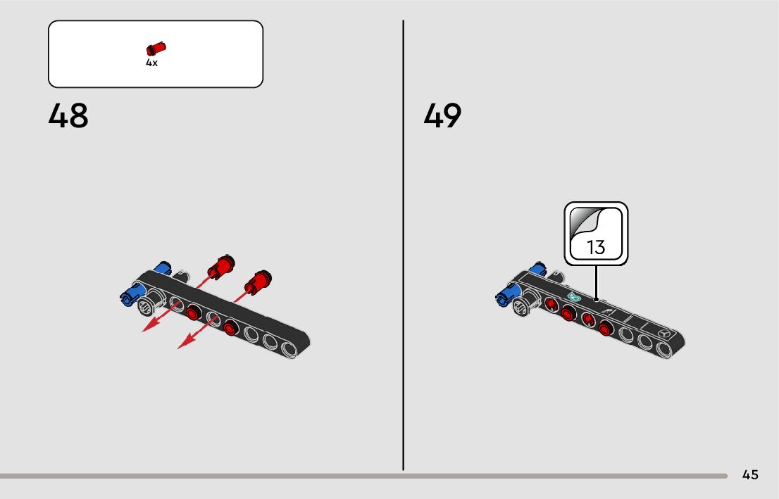 The assembly guide is prepared in a very understandable way for children and adult LEGO enthusiasts. A total of 100 picture galleries are shown, explaining the step-by-step construction stages for 1 different structures.