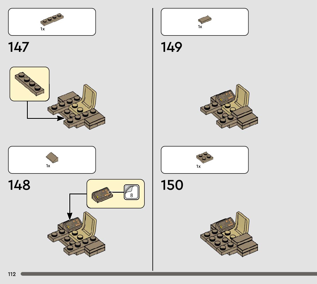 The assembly guide is prepared in a very understandable way for children and adult LEGO enthusiasts. A total of 140 picture galleries are shown, explaining the step-by-step construction stages for 1 different structures.