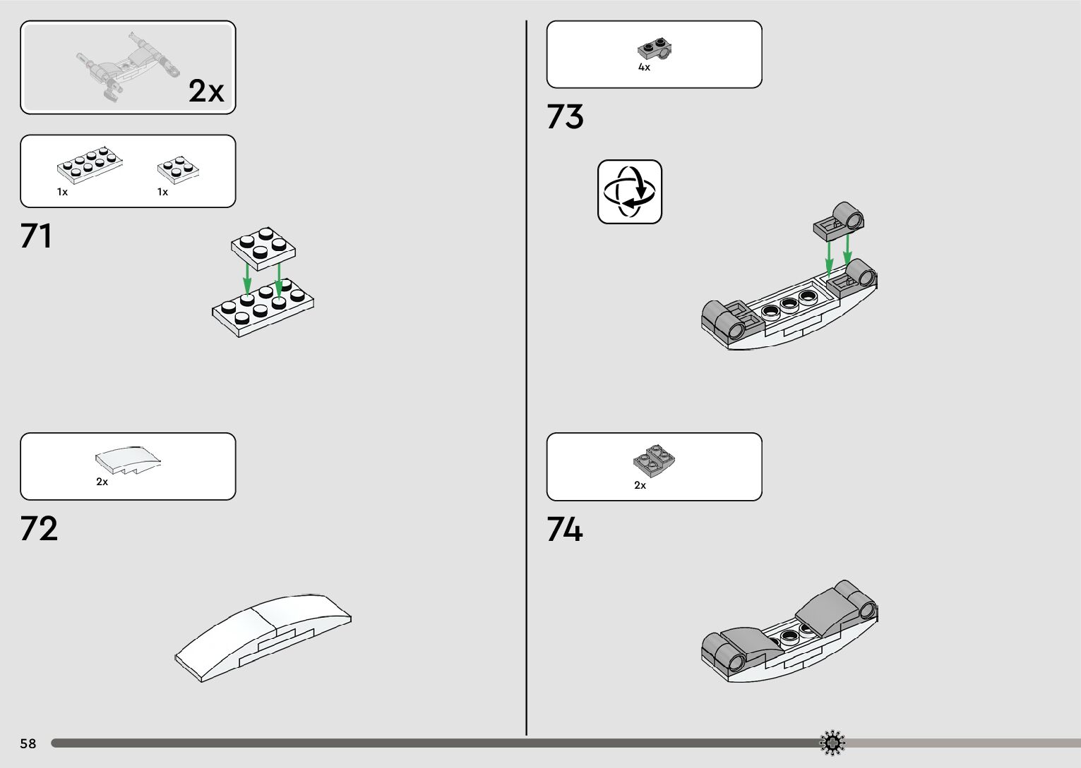 The assembly guide is prepared in a very understandable way for children and adult LEGO enthusiasts. A total of 144 picture galleries are shown, explaining the step-by-step construction stages for 1 different structures.