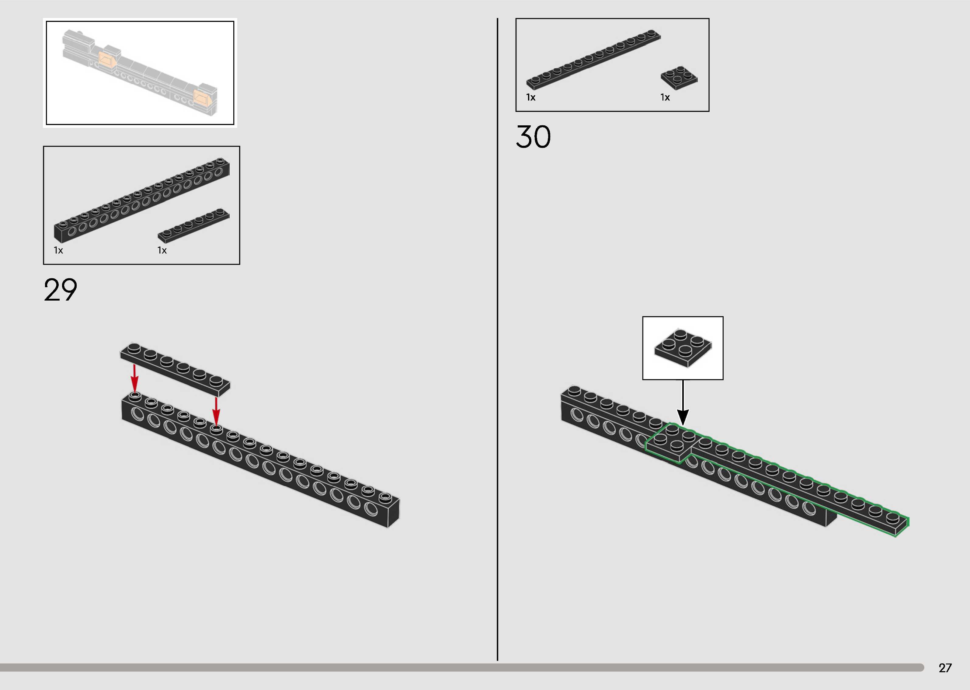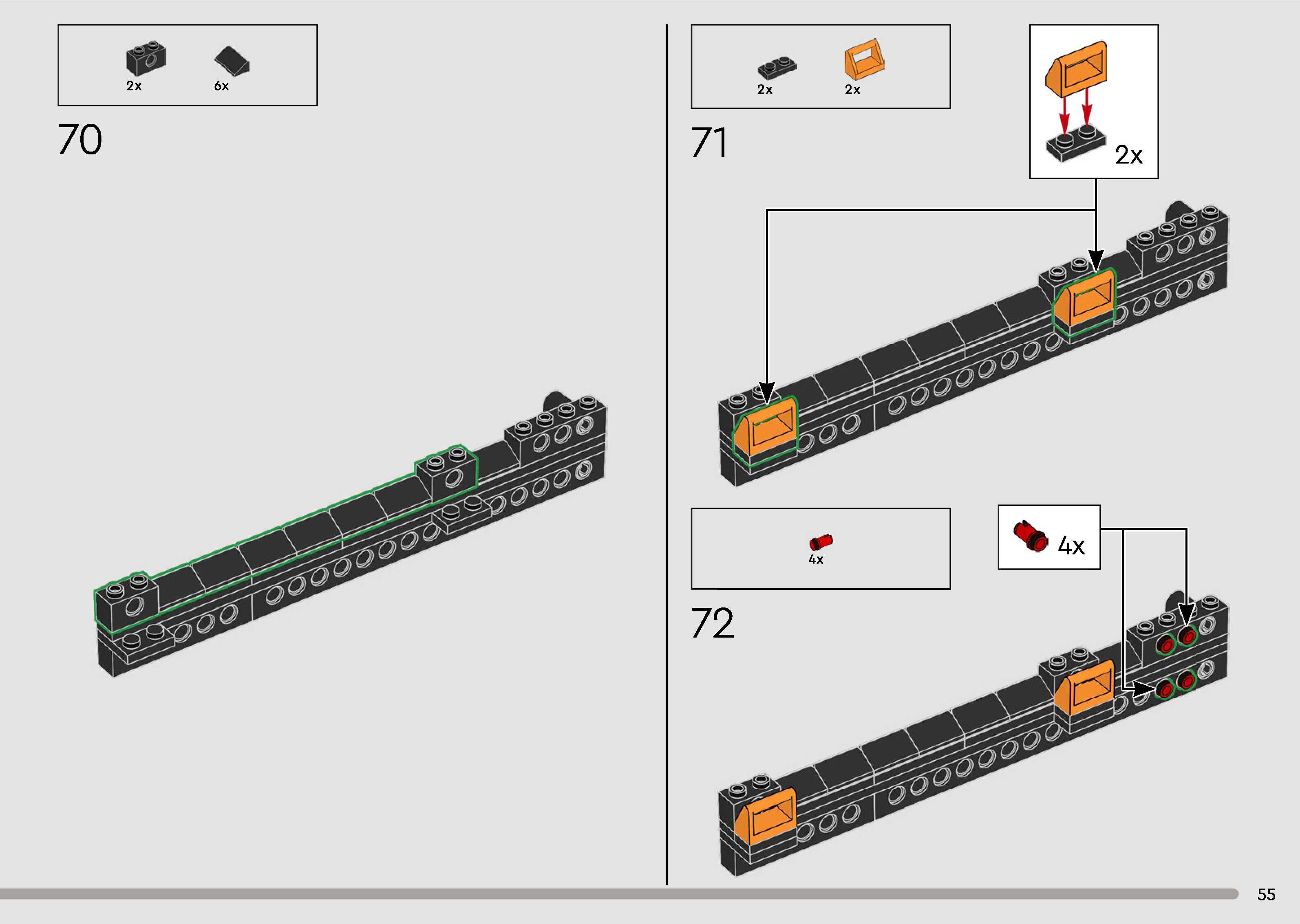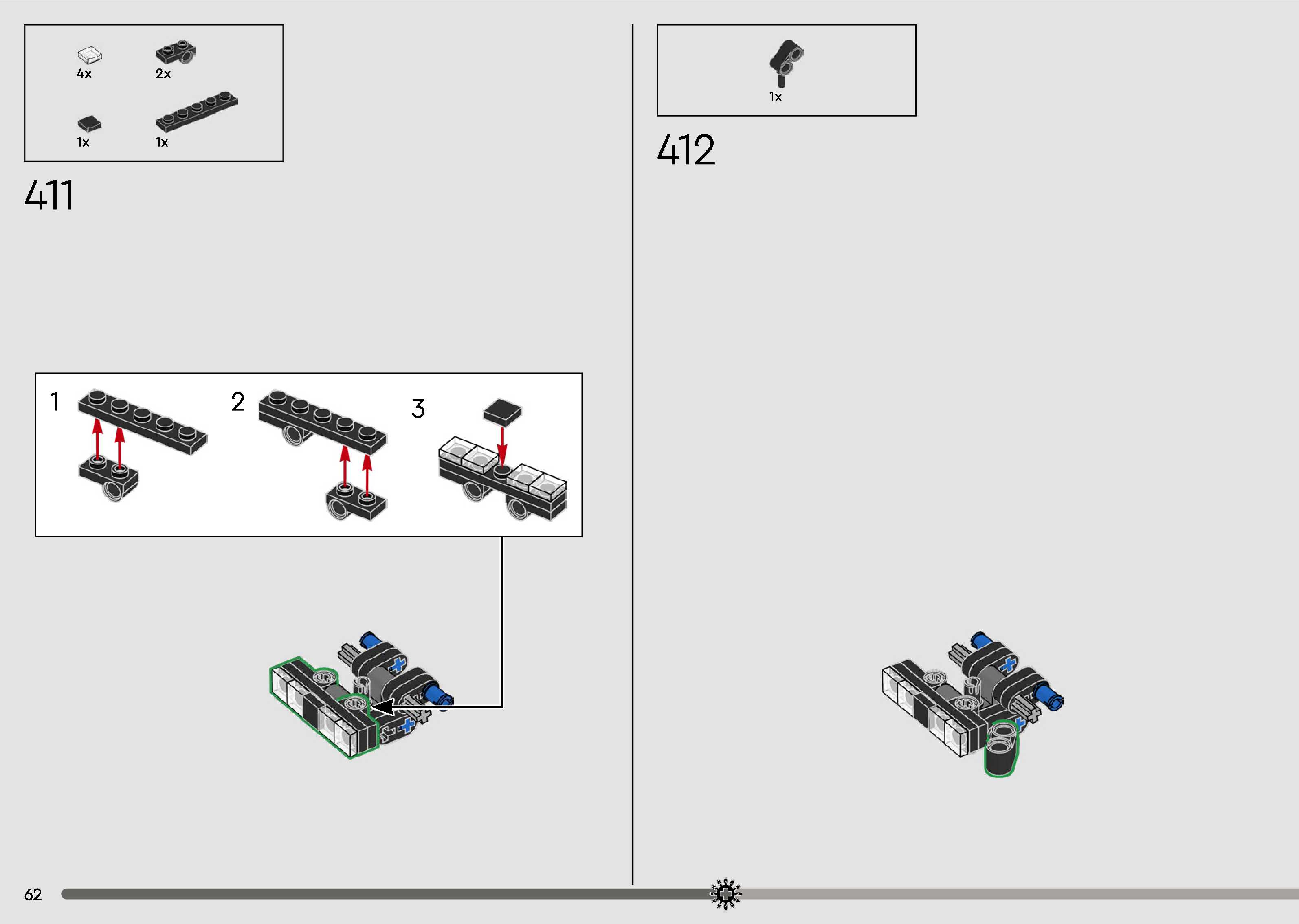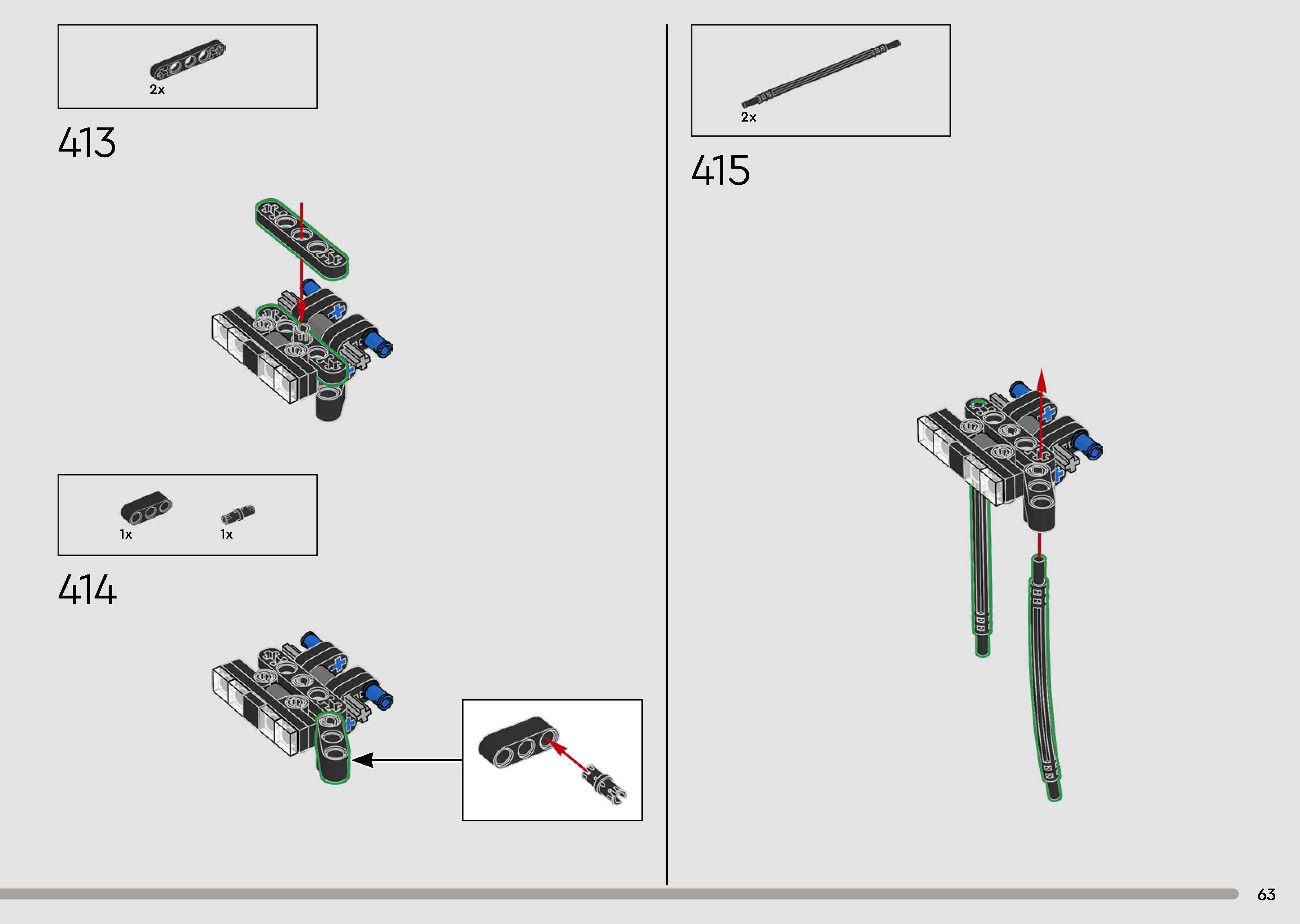 The assembly guide is prepared in a very understandable way for children and adult LEGO enthusiasts. A total of 413 picture galleries are shown, explaining the step-by-step construction stages for 2 different structures.