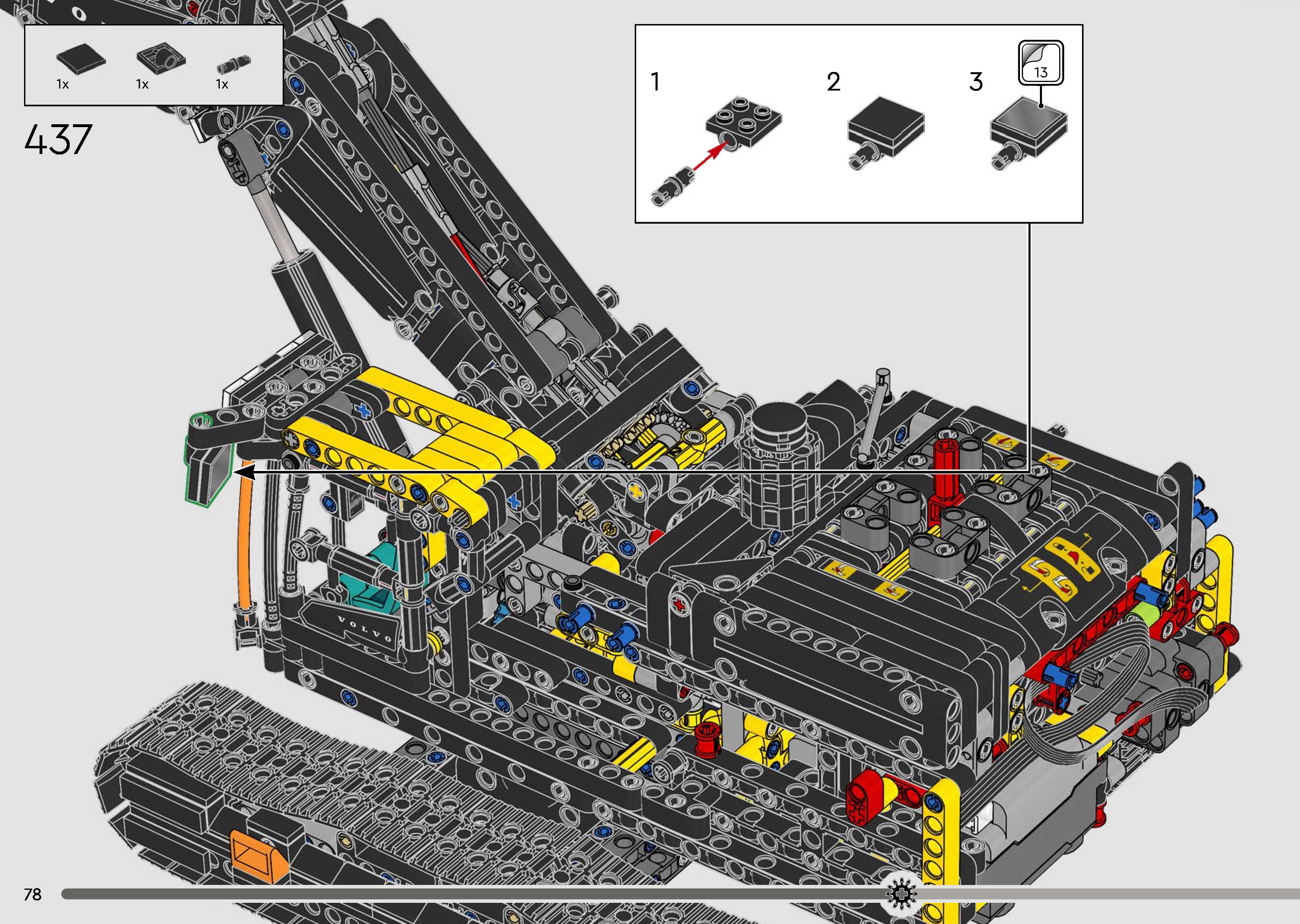 On this page you can find the original construction manual for the LEGO 42215 set. With the assembly manual you can easily learn how to build the Volvo EC500 Hybrid Excavator step by step. The set was released in 2025.