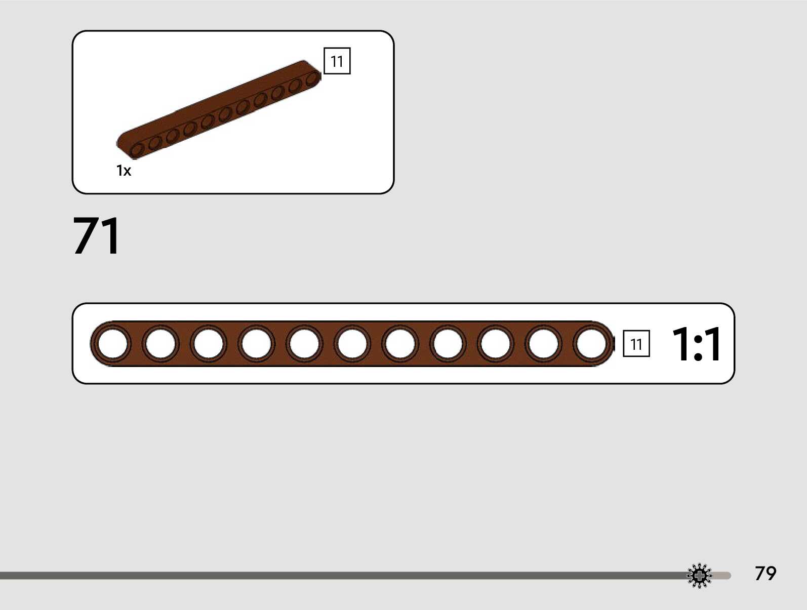 The assembly guide is prepared in a very understandable way for children and adult LEGO enthusiasts. A total of 84 picture galleries are shown, explaining the step-by-step construction stages for 1 different structures.