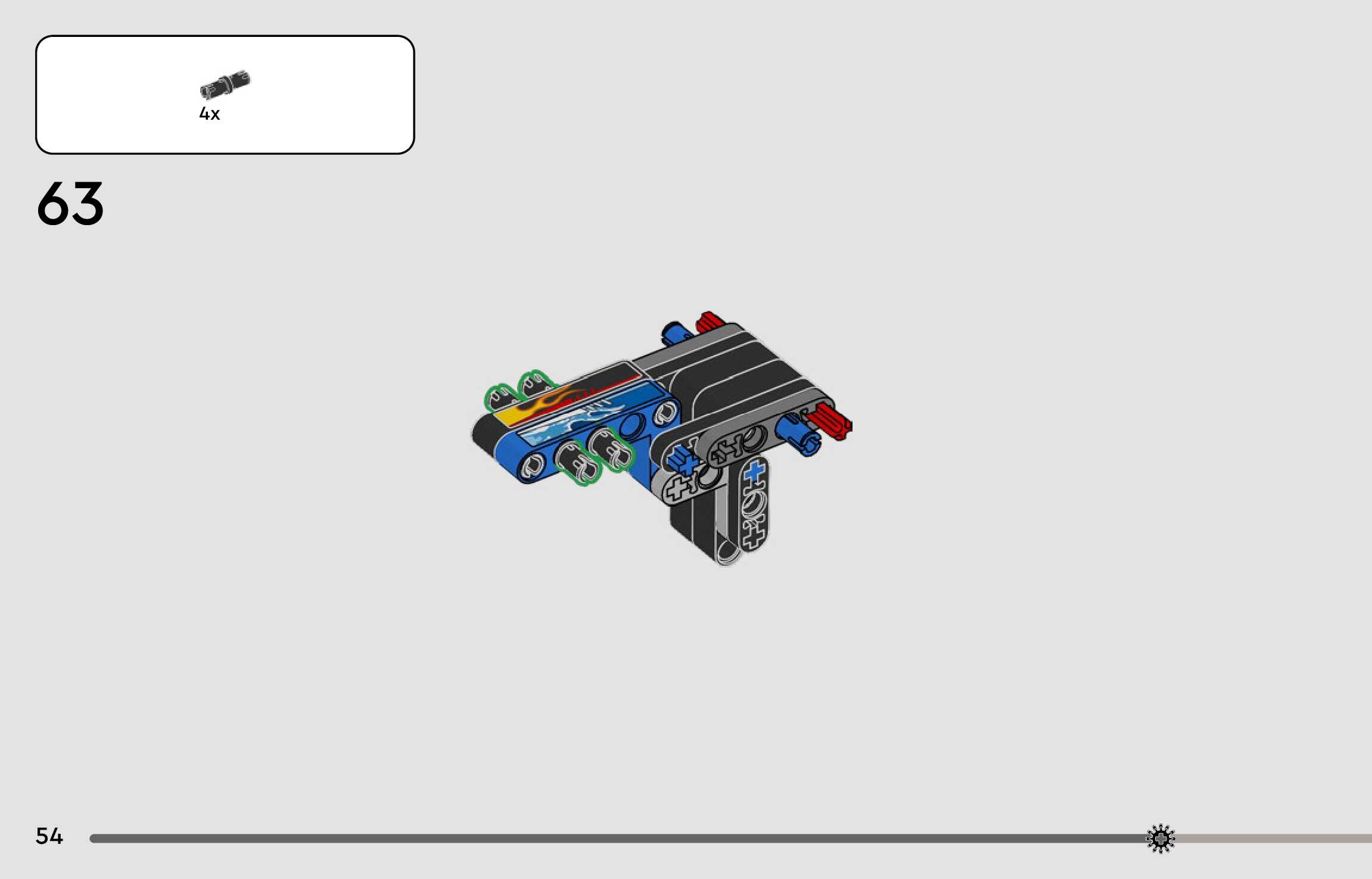 The assembly guide is prepared in a very understandable way for children and adult LEGO enthusiasts. A total of 120 picture galleries are shown, explaining the step-by-step construction stages for 1 different structures.